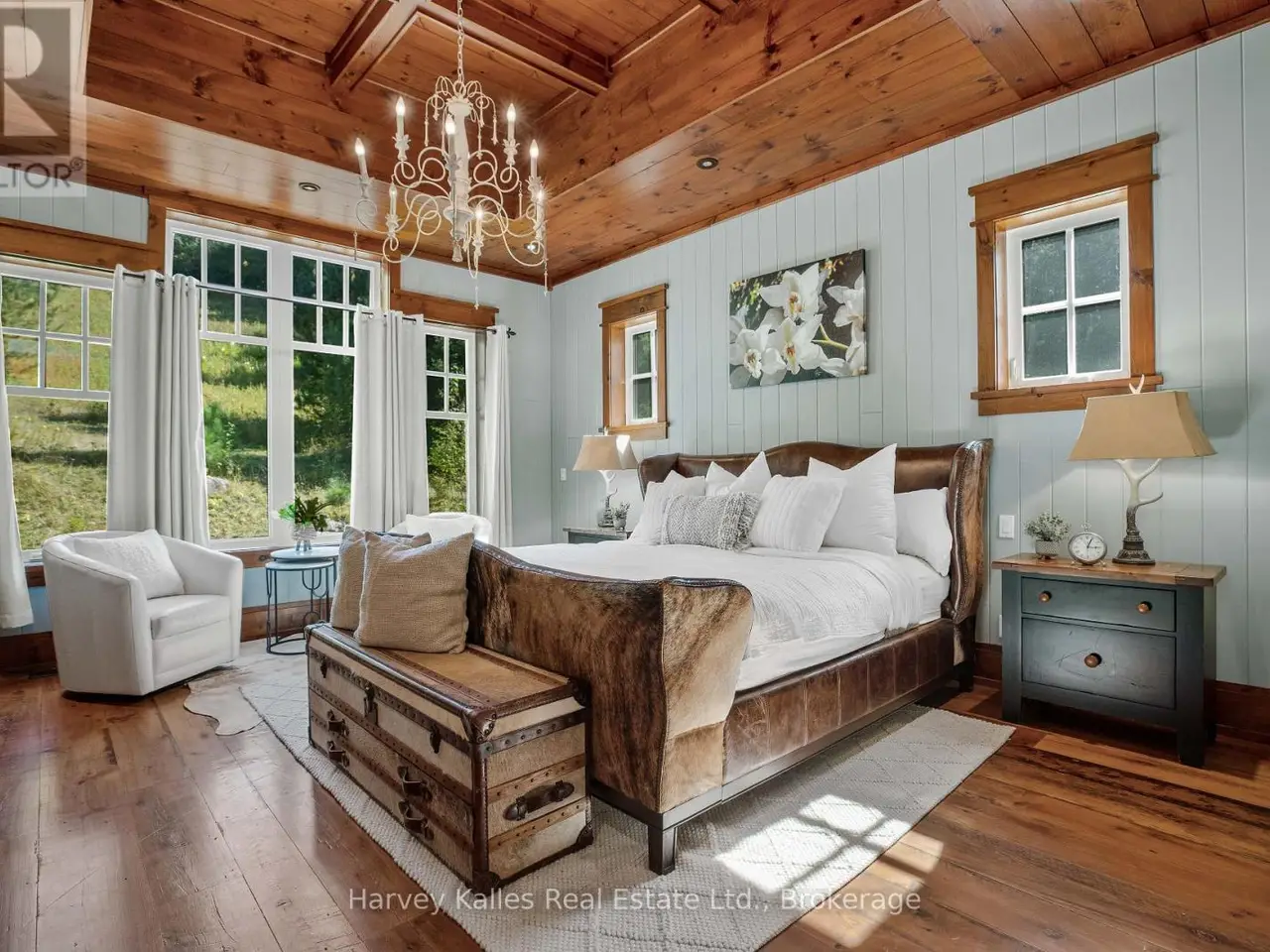 Meticulously planned, designed and crafted, this 7000+sqft home or recreational retreat is surrounded by more than 35 acres of unique landscapes and is just minutes to a beach and boat launch on Peninsula Lake. The sprawling residence was built to maintain efficiency with ICF construction and in-floor heating, as well, every element in this custom-build was carefully selected from only quality products. This home offers extensive modern comforts and fine finishes from high-end kitchen appliances, Emtek hardware, Perrin & Rowe faucets to the reclaimed hemlock floors, Toto toilets, & oversized fireplaces. Upon arrival, it's evident that the designer thoroughly considered the floor plan to provide the ultimate in function, convenience, and luxury. The main floor is flooded with natural light with floor-to-ceiling windows, offers a desirable open-concept layout and hosts the stunning primary bedroom. You will fall in love with the lavish primary suite featuring a 5pc ensuite with steam shower, heated floors and a soaker tub with panoramic views. The walk-in closet provides enough space for your attire, shoes & accessories. For your family or guests, the 2nd level offers a dedicated space for relaxation, with each of the three tastefully decorated bedrooms enhanced by ensuite privileges. The sizeable recreation room on the lower level is ideal for table games or hosting gatherings, and the separate guest wing is well suited for your guests with a private 3pc bath. For ease, the 3-car attached garage allows effortless entry to the home, and the finished space above creates a perfect in-law suite or a bonus space for growing families. Formerly known & operated as Tally Ho Winter Park, this incredible property has been cherished and holds fond memories for those who enjoyed spending winters here or learned to ski on the once-maintained hills. With so much outdoor space to enjoy, owners & guests are privy to a lifestyle of endless exploration and entertainment. (id:6370)