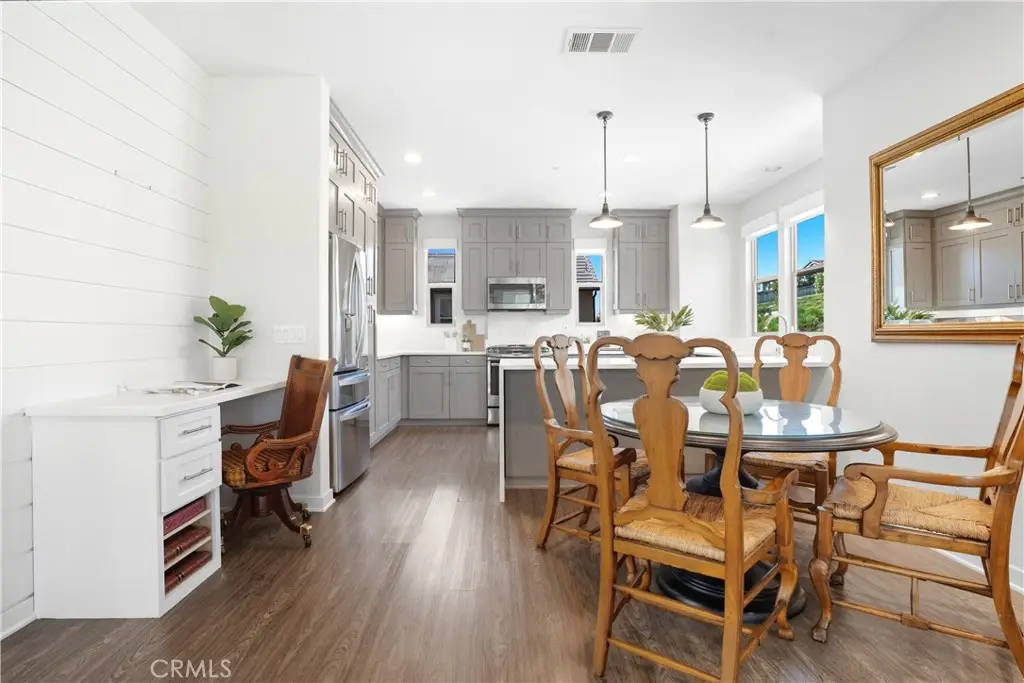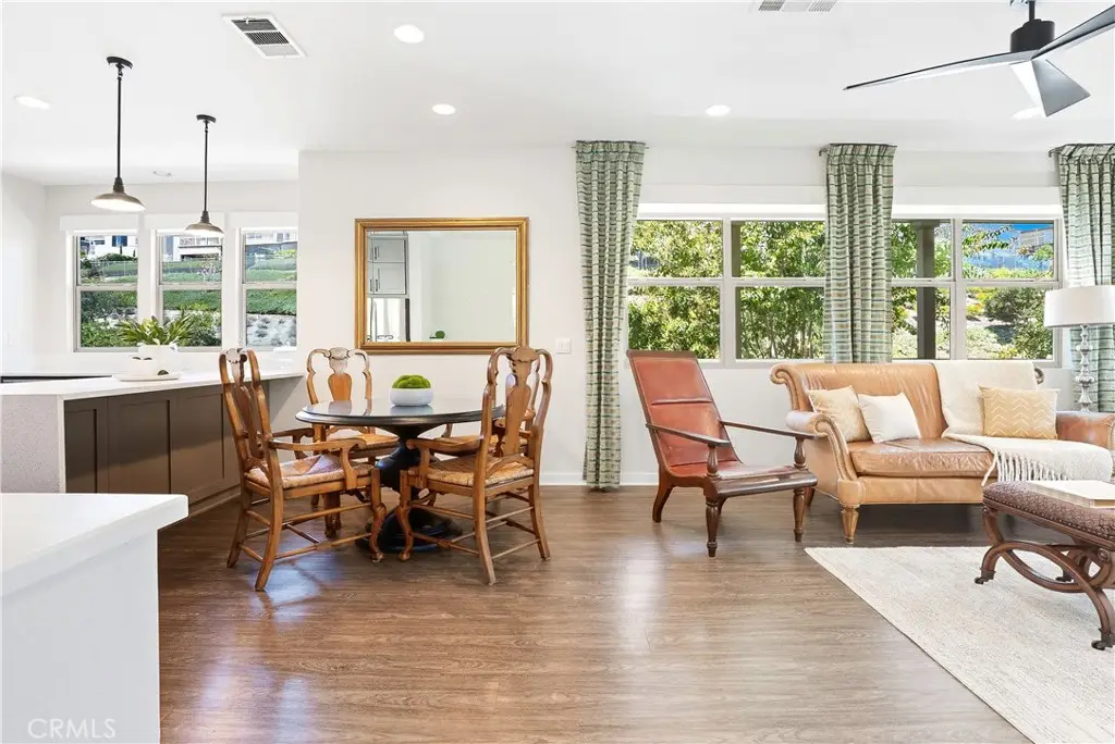 Nestled within the highly sought-after Trellis neighborhood of Esencia, this beautifully upgraded home showcases the community's largest floor plan, offering three spacious bedrooms plus a versatile office that can easily be converted into a fourth bedroom. Trellis is celebrated for its charming collection of modern farmhouses, perfectly capturing the essence of contemporary South Orange County living. From the moment you arrive, you're welcomed by a picturesque white picket fence, lush landscaping, and a generous wraparound front porch that sets the tone for the warmth and style found inside. The first level features a thoughtfully designed guest bedroom and a full bathroom, creating an ideal space for visitors or multi-generational living. Upstairs, the expansive second floor embraces an open-concept great room design, where the kitchen, dining, and family room flow seamlessly together. The kitchen has been modernly appointed with quartz countertops, gray cabinetry, stainless steel appliances, a designer backsplash, and durable faux-wood flooring. A custom shiplap wall and Restoration Hardware ceiling fan add stylish character, while the wraparound balcony extends the living space outdoors, providing the perfect setting for entertaining or enjoying the coastal breeze. The primary suite offers a peaceful retreat with a spacious walk-in closet and a luxurious en-suite bathroom featuring dual sinks, a romantic soaking tub, and a walk-in shower. An additional secondary bedroom and bathroom, along with a convenient laundry area, complete this level. The crown jewel of the home is the expansive rooftop deck, an entertainer's dream with plenty of room for gatherings, relaxation, and taking in breathtaking panoramic views. Blending modern upgrades with timeless farmhouse charm, this residence is a rare opportunity to own one of Trellis' most desirable homes. Exclusive to Rancho Mission Viejo residents are all amenities in the Villages of Sendero, Esencia, Rienda and future Villages. There are community amenities for all from breath-taking resort-style pools and spas, Esencia school K-8, community farms, fitness centers, guest house, putting green, bocce ball courts, tennis and pickle ball courts, playgrounds, coffee shop, fire pits, an arcade and so much more!