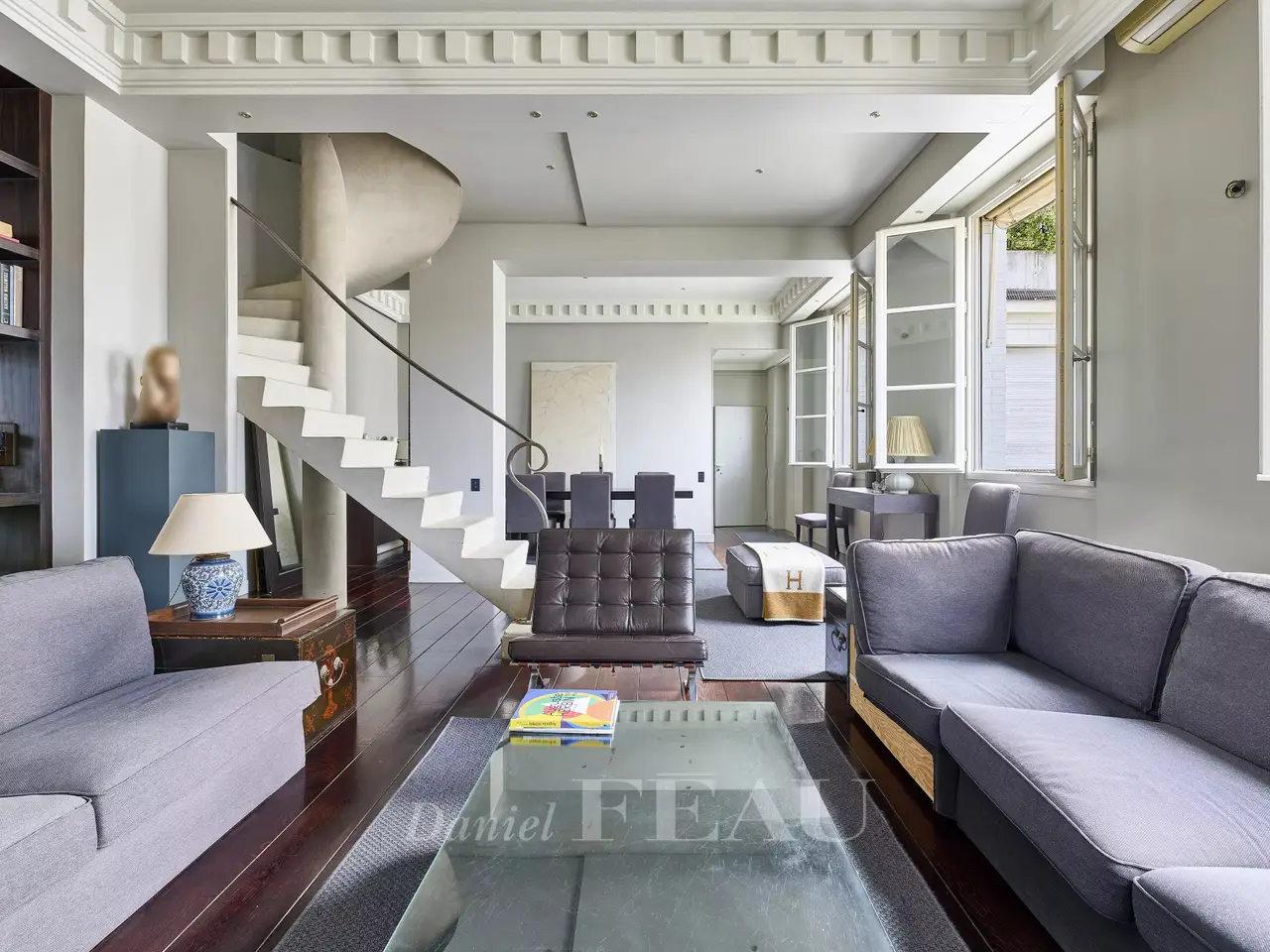 Avenue Foch. This peaceful duplex apartment on the 4th floor of a prestigious period building with luxurious common areas has been renovated throughout by a renowned interior decorator and is as new. It includes a living/reception room and dining room bathed in sunshine and enjoying an open view, and an equipped kitchen. Upstairs are a master suite with a bathroom and dressing room opening onto a wide balcony, and a second suite with a shower room. With a cellar. A superb pied a terre just a stone’s throw from Place de l’Etoile.