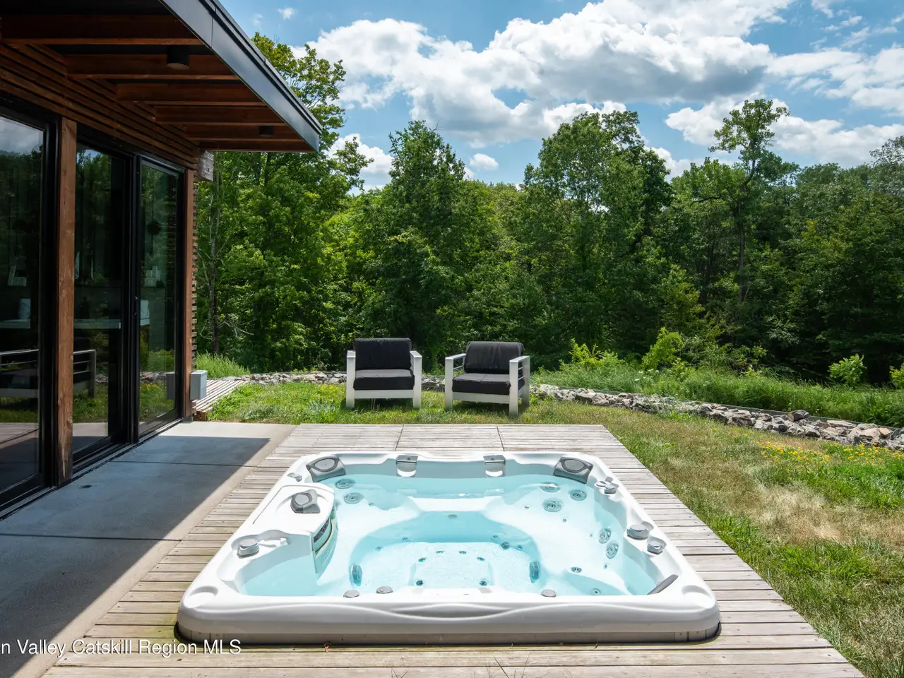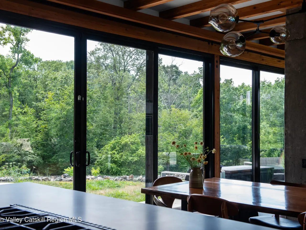 462 Mt Merino / Modernist Glass House in the Hudson River Valley. Beautifully sited on 25 private acres along desirable Mount Merino Road one of the most coveted streets in Columbia County with its sweeping Catskill Mountain views is this NYC architect-designed glass house which offers a rare connection to nature. Inspired by 1960s Hollywood Hills Case Study homes, the residence dissolves boundaries between interior and exterior living. Reached by a long private drive, the home features floor-to-ceiling glass walls that frame mountain vistas and fill spaces with natural light. The great room combines a state-of-the-art kitchen with a modernist living space centered around a striking two-sided fireplace, while two spacious ensuite bedrooms offer private retreats with expansive views. The seamless connection between house and pool creates uninterrupted indoor-outdoor flow. This stunning property presents an exceptional opportunity to create a family compound as the existing glass house serves beautifully as a central anchor, ready to complement a larger family dwelling on the 25-acre canvas. The property currently serves as a luxury vacation rental but is turn-key for full-time or part-time living. Located minutes from Hudson's Warren Street and Amtrak station, 462 Mount Merino combines secluded mountain living with convenient access to galleries, dining, and direct Manhattan connections.