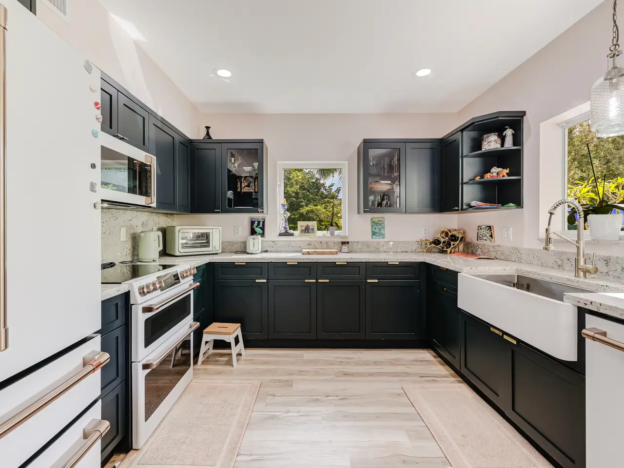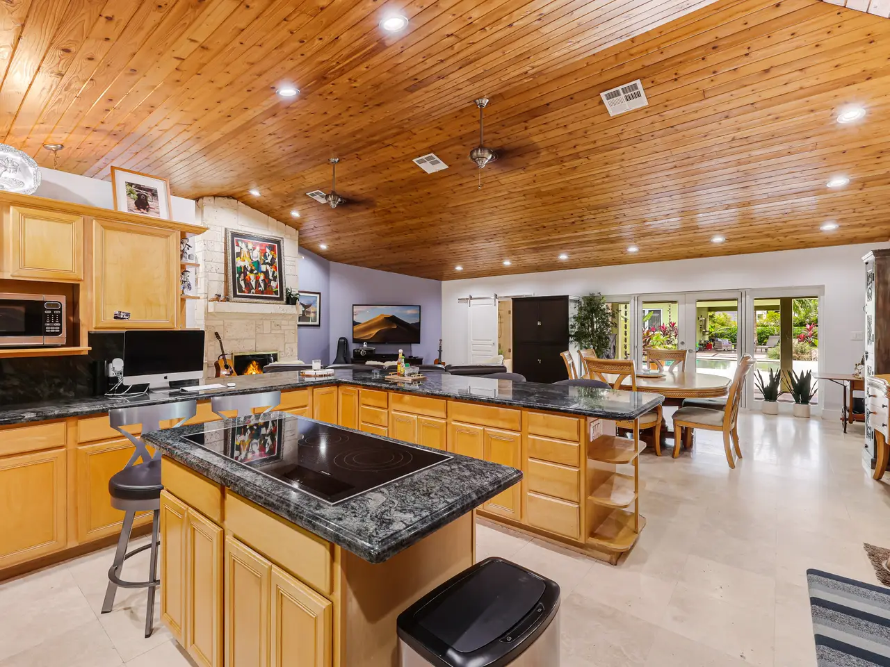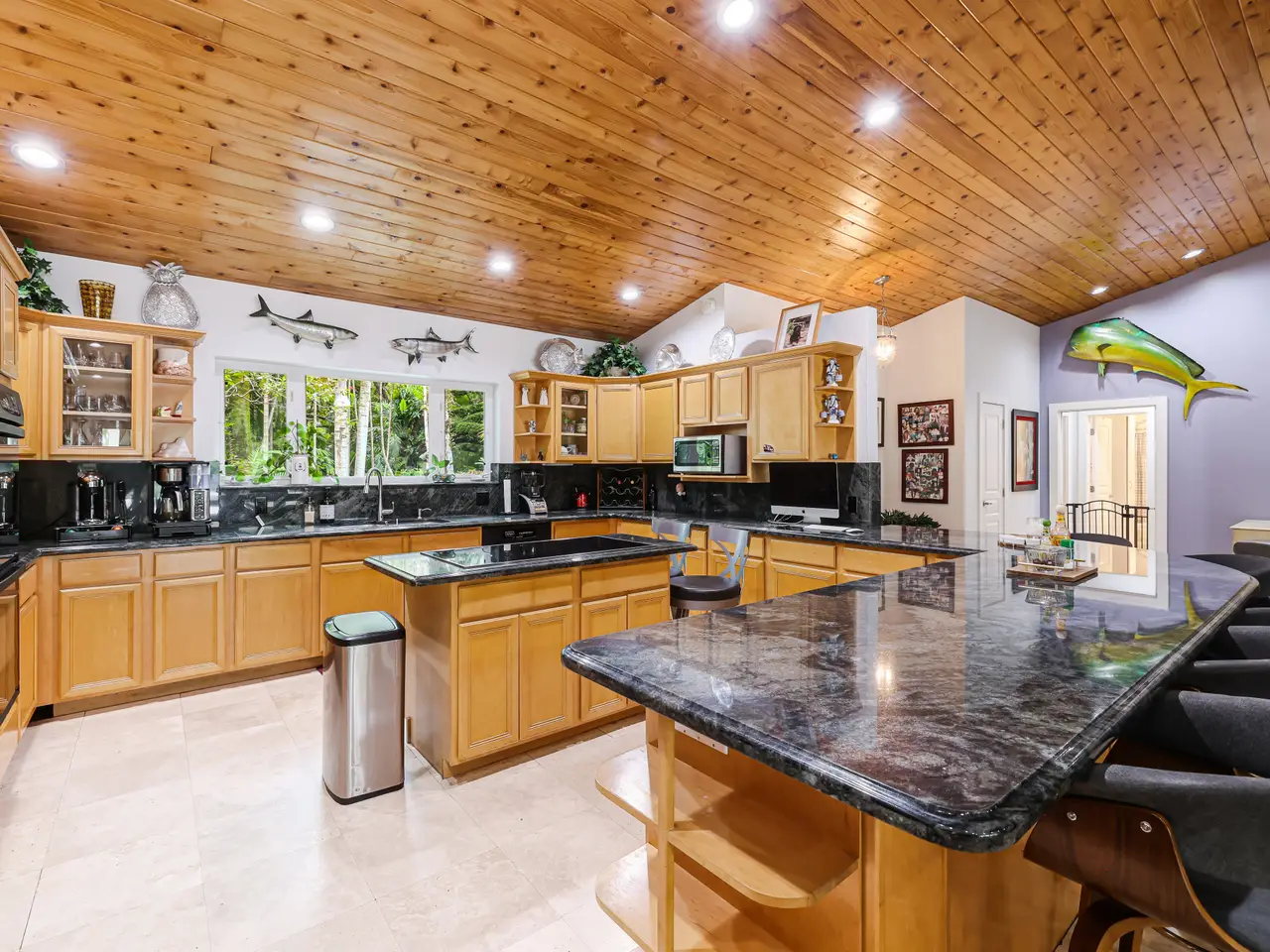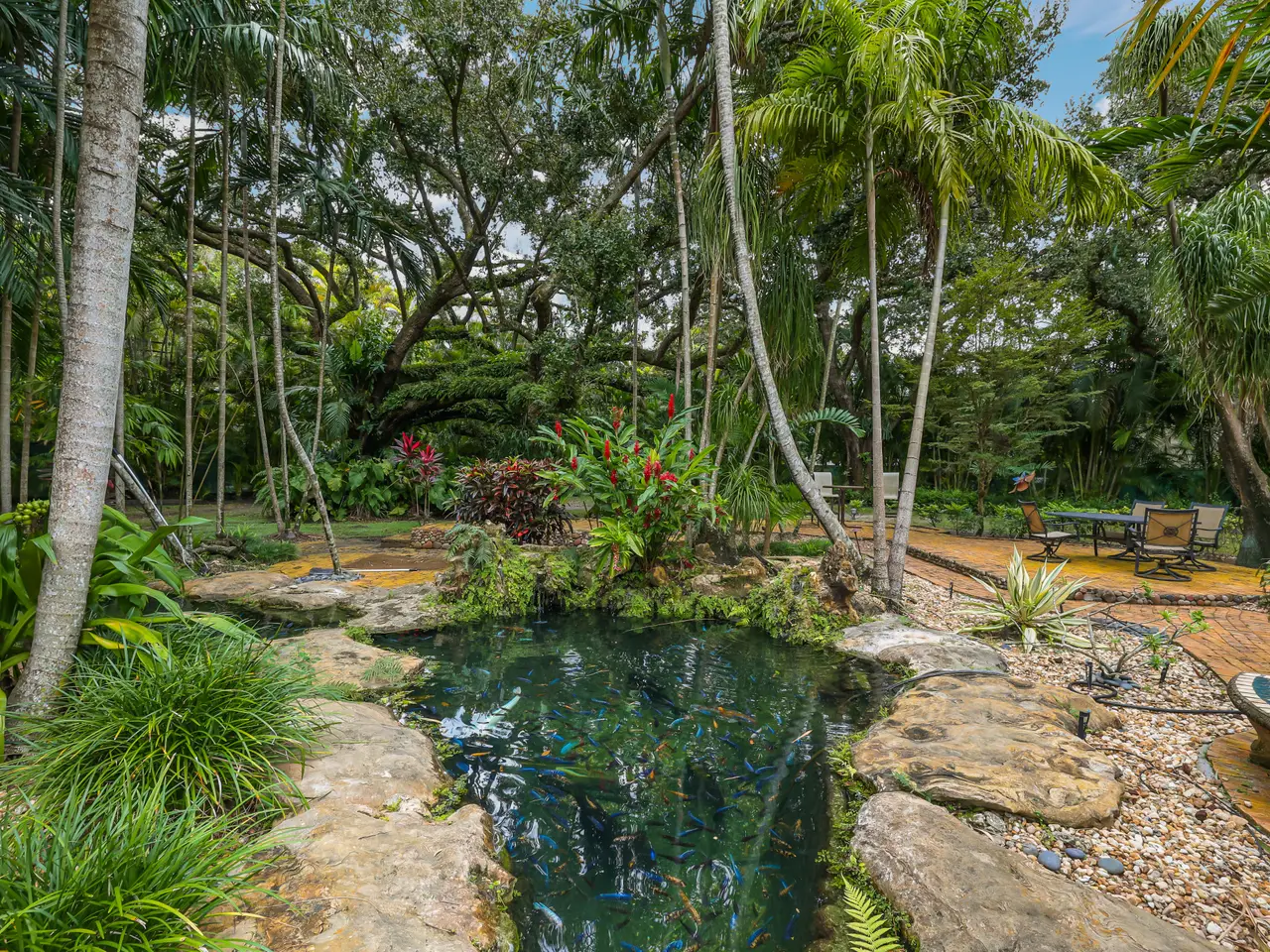 Step into our paradise home, where nature and tranquility await. Surrounded by 100-year-old oak trees and adorned with beautiful outdoor landscape lighting. Picture yourself roasting marshmallows and sharing stories around the fire pit, while the enchanting glow of the yard illuminates your evening. In the summer, bask in the serenity from one of the raised decks and gaze at the tranquil pond. Immerse yourself in the peace and beauty as you feed the Koi and cichlids. The yard is a tapestry of exotic, mature landscape specimens that transport you to the heart of Hawaii. From the moment you enter through the gate, you'll sense the warmth of Aloha. Every detail of this home and its grounds has been carefully crafted with love.The main house was renovated in 2019, and guest house built in 2021