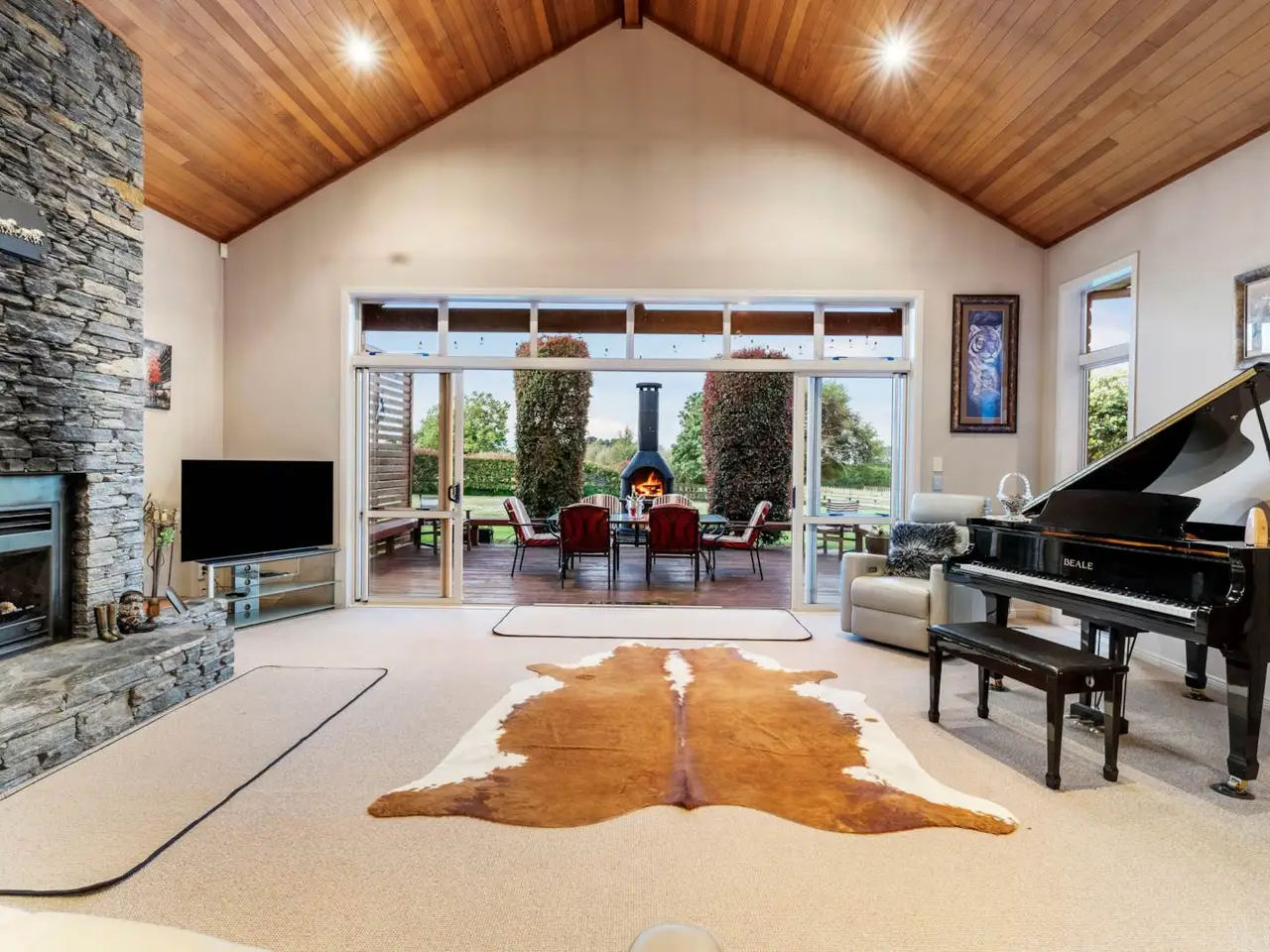 Expansive timber decks with outdoor fire