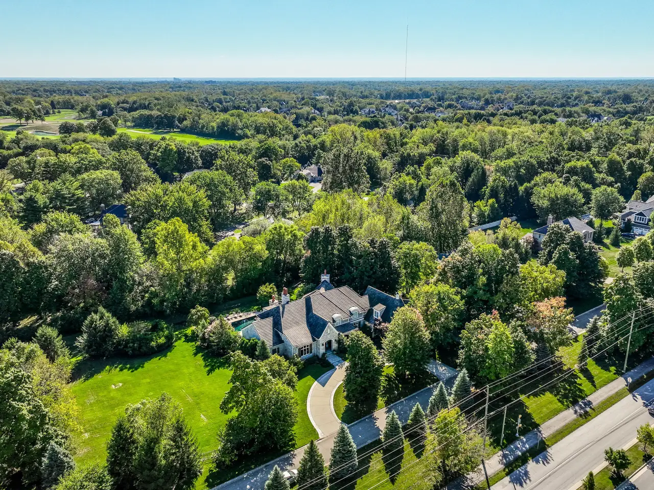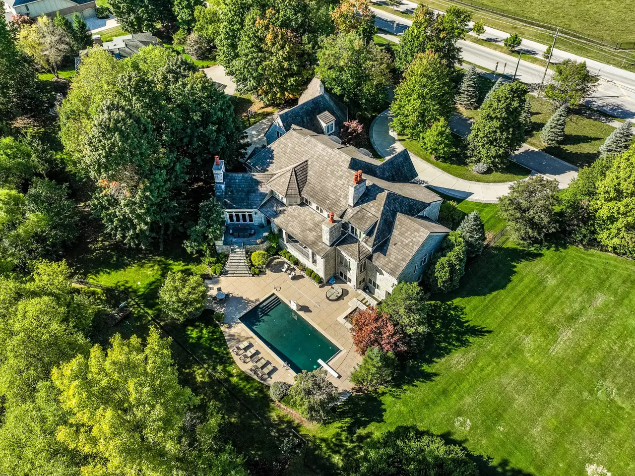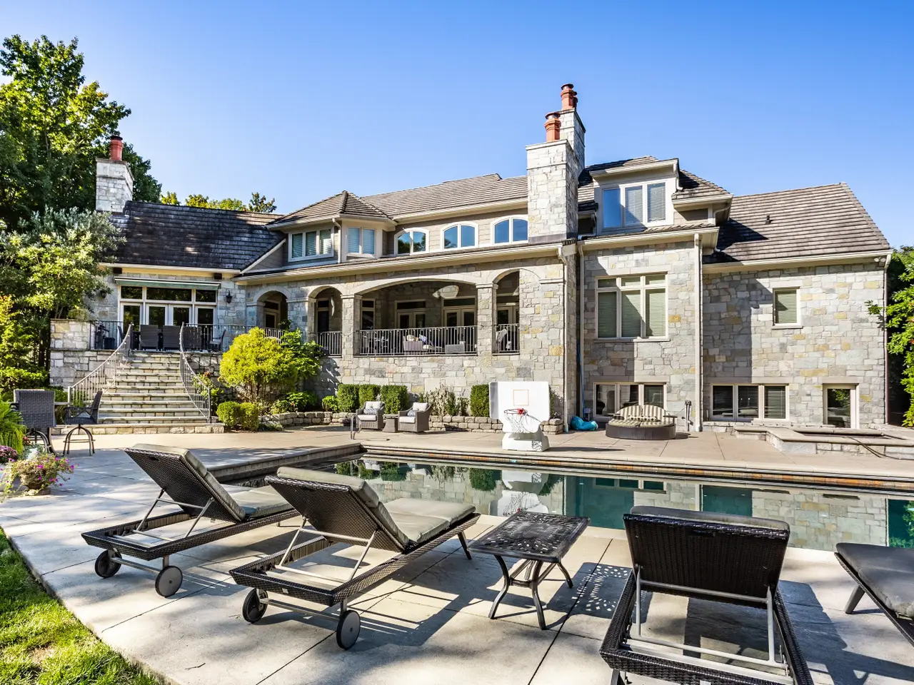 Beautifully situated on a private, lush, 2-acre fenced lot, this stunning estate offers an unparalleled lifestyle. Outdoor living is a true retreat with a 40x20 gunite pool, hot tub, and expansive veranda with fireplace and grilling center, perfect for entertaining or relaxing in privacy. Yard has ample room for tennis court or pickleball court! Inside, guests are greeted by a soaring great room with 20-foot ceiling and a stone fireplace flanked by built-ins. The world-class chef's kitchen is a true centerpiece, featuring Wolf and Sub-Zero appliances, a pizza oven, a Miele coffee center, and an office nook conveniently tucked away behind the kitchen. The adjoining family room showcases an exposed truss ceiling and beautiful stone fireplace, as well as direct access to the outdoor living spaces. The main-floor primary suite is an elegant retreat with a spa-inspired bathroom and veranda access, creating a luxurious and serene sanctuary. Upstairs hosts five spacious bedrooms with four beautifully remodeled bathrooms. The walk-out lower level is an entertainer's paradise offering every amenity imaginable including a theatre area, 24x20 built-in bar with beverage cooler and beer tap, billiard area, wine cellar, double-sided fireplace, exercise room, and home office. Completing this impressive residence is a generous 4-car garage with raised ceiling for half-court basketball.