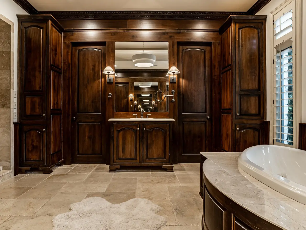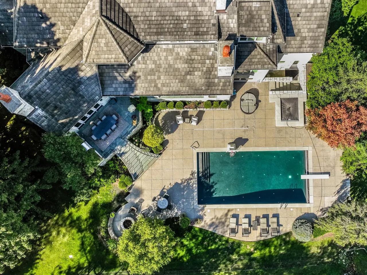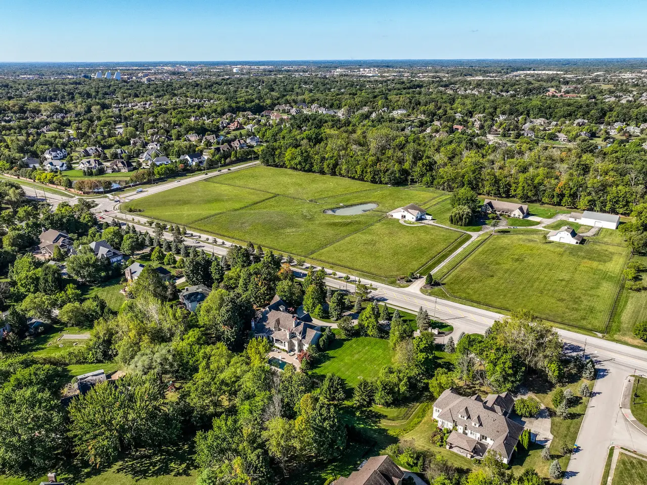 Beautifully situated on a private, lush, 2-acre fenced lot, this stunning estate offers an unparalleled lifestyle. Outdoor living is a true retreat with a 40x20 gunite pool, hot tub, and expansive veranda with fireplace and grilling center, perfect for entertaining or relaxing in privacy. Yard has ample room for tennis court or pickleball court! Inside, guests are greeted by a soaring great room with 20-foot ceiling and a stone fireplace flanked by built-ins. The world-class chef's kitchen is a true centerpiece, featuring Wolf and Sub-Zero appliances, a pizza oven, a Miele coffee center, and an office nook conveniently tucked away behind the kitchen. The adjoining family room showcases an exposed truss ceiling and beautiful stone fireplace, as well as direct access to the outdoor living spaces. The main-floor primary suite is an elegant retreat with a spa-inspired bathroom and veranda access, creating a luxurious and serene sanctuary. Upstairs hosts five spacious bedrooms with four beautifully remodeled bathrooms. The walk-out lower level is an entertainer's paradise offering every amenity imaginable including a theatre area, 24x20 built-in bar with beverage cooler and beer tap, billiard area, wine cellar, double-sided fireplace, exercise room, and home office. Completing this impressive residence is a generous 4-car garage with raised ceiling for half-court basketball.