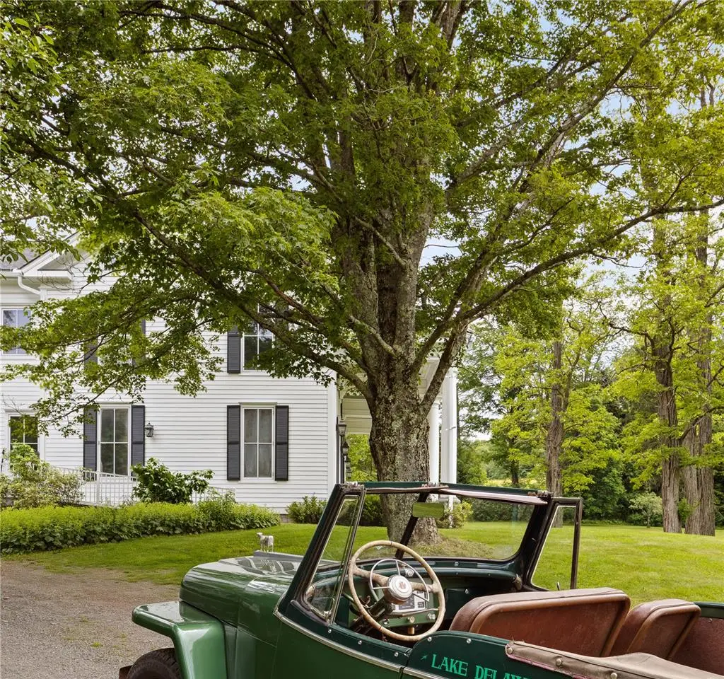 Presiding over a glorious 68 acre lake in the Catskill Mountains, Lake Delaware Farm offers a rare opportunity to acquire a piece of true American legacy, continuously in use by the same notable family since the 18th century. The Lake House allows a glimpse into the lifestyle of one of our nation's most notable, founding aristocratic families. In 1686, the English crown granted 160,000 acres to Robert Livingston. Livingston Manor and the family seat of Clermont, made up much of what is now Dutchess and Columbia counties along the Hudson River. The family thrived there for centuries. With the Hardenbergh patent of 1708 Queen Anne bestowed 2,000,000 acres in the Catskill Mountains on seven loyal subjects. By 1740 the Livingstons of Clermont had acquired one fifth of the Hardenberg Patent which was distributed to the children of Robert Livingston The Judge. Gertrude Livingston received 20,000 acres the year she wed Morgan Lewis, who served in Washington's army during the Revolution and was Governor of New York. He was dear friends with the likes of Lafayette, Alexander Hamilton and General Washington, whom his brother in law Chancellor Robert Livingston swore in as President. The centerpiece of Gertrude's acreage was the magnificent Lake Delaware, where she and Lewis built the original Lake House circa1787. The landscape of this 1600+ acre parcel is exquisite, with rolling hills, meadows, old growth forests and open vistas. The valley is elevated far above sea level providing a refreshingly cool climate. One approaches The Lake House via a long winding driveway lined with fine, historic rock walls interrupted by delicate iron gates. The Lewises styled their home on classical architecture. The entry portico of the home, with its four massive Doric columns, runs the entire length of the front facade. Inside the center hall is an unusual carved spiral stair, with two sun filled 18th Century parlors on either side. From the center hall rooms spill out into later 19th Century additions with handsome details throughout- fine paneling and ceiling tracery in the dining room, marble fireplace mantels, and intricate inlaid floors. There are 8 bedrooms in total, all boasting baths en-suite, plus a bunk room on the attic floor with its own bath with double showers and sinks. Additionally there is a large eat-in kitchen, grand back stair with arched side openings, family room, butler's pantry, mud room, laundry room and bar on the ground floor as well as an elevator. The home has the warm feel of a grand country inn- impressive in its scale yet comfortable by contemporary standards. One can feel the presence of generations of distinguished family members- the signers of the Declaration of Independence, the decorated military men, the Senators, Justices, and Gilded Age barons that have called this place home over the centuries. As impressive as the house is, it's the Lake itself that casts a spell on all who visit. Fresh, bracing and crystal clear, the lake invites one to dive in or take your pick of vessels in the historic boat house and row to your hearts content. On the grounds stands the ruins of elaborate formal gardens designed by renowned landscape architect Fletcher Steele with extraordinary views over the valley. Romantic structural elements and a lovely statue of a seated Diana, beckoning you to imagine the gardens in their original splendor. Surrounded by charming towns, farms and awe inspiring natural landscape, the property at its peak encompassed thousands of acres, with a mansion, working farms, stables, and even a private chapel, evoking the romance of an English manor. The estate holds the secrets of the history of the Hudson Valley, New York State and the Revolution that gave birth to the Constitution of the United States. Rich in history and character, Lake Delaware remains a captivating echo of aristocratic rural life, ideal for a bucolic compound or a once in a ten generation investment opportunity.