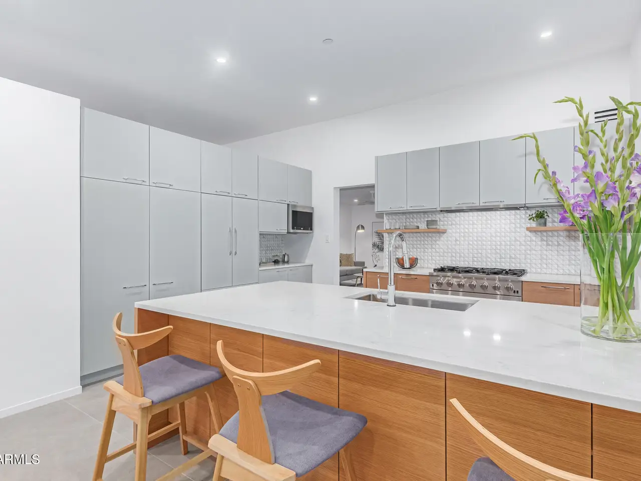 Experience modern luxury in this newly constructed contemporary masterpiece located near Old Town Scottsdale. Custom designed with high-end finishes throughout, this home offers the ultimate in sophisticated living. The heart of the home is a chef's dream kitchen featuring Fisher and Paykel appliances, perfect for culinary enthusiasts and entertainers alike. Upstairs, the primary suite exudes comfort and elegance, while an entertaining loft boasts stunning mountain views and opens onto a second-story deck through expansive glass doors. On the first floor, a second en suite guest room provides privacy and comfort for visitors. The backyard is a sanctuary with a Thermador swim spa, ideal for relaxation and fitness. Located on residential frontage Rd, NOT 64th St proper.