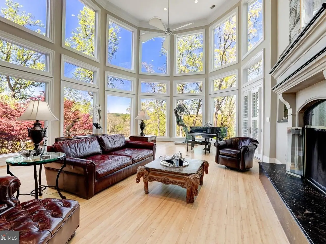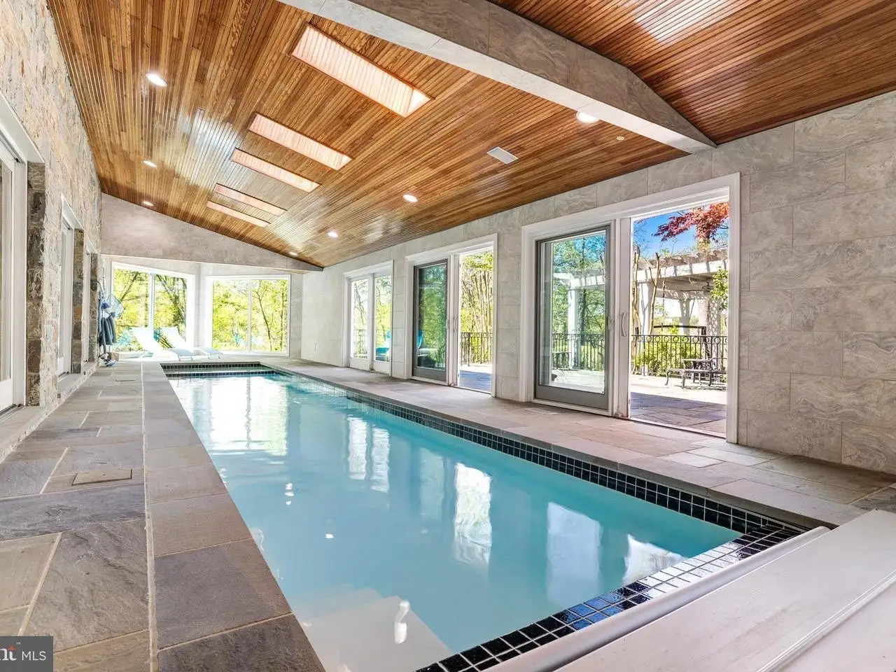 Commanding an incomparable vantage point above the Potomac River, this extraordinary stone estate by BOWA defines timeless sophistication and total privacy on more than three gated acres in McLean's most coveted enclave, moments from Washington, D.C. Beyond its stately approach and manicured grounds, the residence reveals over 16,000 square feet of refined interiors designed for both grand entertaining and serene daily living. A two-story great room with floor-to-ceiling windows frames sweeping river views, while French doors open to an expansive terrace that captures the tranquil beauty of the surroundings. The gourmet kitchen is a showpiece with professional-grade appliances, granite surfaces, a walk-in pantry with Sub-Zero refrigerator, and a hidden bar. The main level also offers dual offices, two powder rooms, elevator access, and a full laundry with pet bath-all under soaring ceilings that enhance light and volume. The main-level owner's suite is a private sanctuary with windows on three sides, dual dressing rooms, and a marble spa bath with jetted tub, steam shower, and private balcony overlooking the river. Upstairs, three guest suites each feature walk-in closets and elegant baths, two with French doors to balconies. The lower level is a destination in itself-featuring a lounge with stone fireplace, billiards area, wet bar, wine cellar, fitness room, and a stunning indoor pool with skylights and glass doors opening to extensive stone patios. Additional amenities include a private in-law or staff suite with full kitchen, a salon, guest suite, and generous storage. Outside, terraced gardens, pergolas, water features, and a gazebo with full outdoor kitchen create a breathtaking resort-style setting. With five-car garage parking, geothermal systems, and whole-house generator, this distinguished estate offers rare scale, craftsmanship, and uninterrupted Potomac River views.