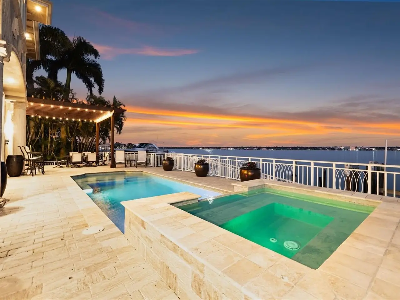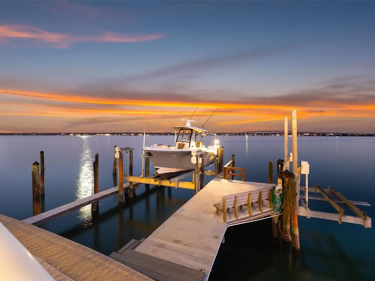 Commandingly positioned at the end of a quiet cul-de-sac in Belleair Beach, this waterfront estate captures unobstructed, wide-open views across the bay from 100 feet of deep-water frontage. Designed for the boating lifestyle, the property offers quick, easy access to Clearwater Pass and the Gulf, with a private dock featuring a 30,000-lb boat lift plus a second lift for personal watercraft. Inside, nearly 6,000 square feet of light-filled living space is tailored for grand entertaining and effortless everyday luxury. The gourmet kitchen showcases Poseidon granite countertops, stainless designer appliances, and rich custom cabinetry, opening to generous living and dining venues that frame the water at every turn. A private upper-level primary suite affords sweeping views of Clearwater Bay and an indulgent spa-inspired bath with a jetted soaking tub, dual vanities, a dedicated makeup station, marble floors, and dual walk-in closets. An impressive amenity suite includes a 2,400-bottle wine room, executive home office, fitness room, elevator, heated pool, and a 20kw gas generator—all curated for comfort, security, and ease. Equally suited to intimate gatherings or large-scale events, this residence embodies refined coastal living both on and off the water.