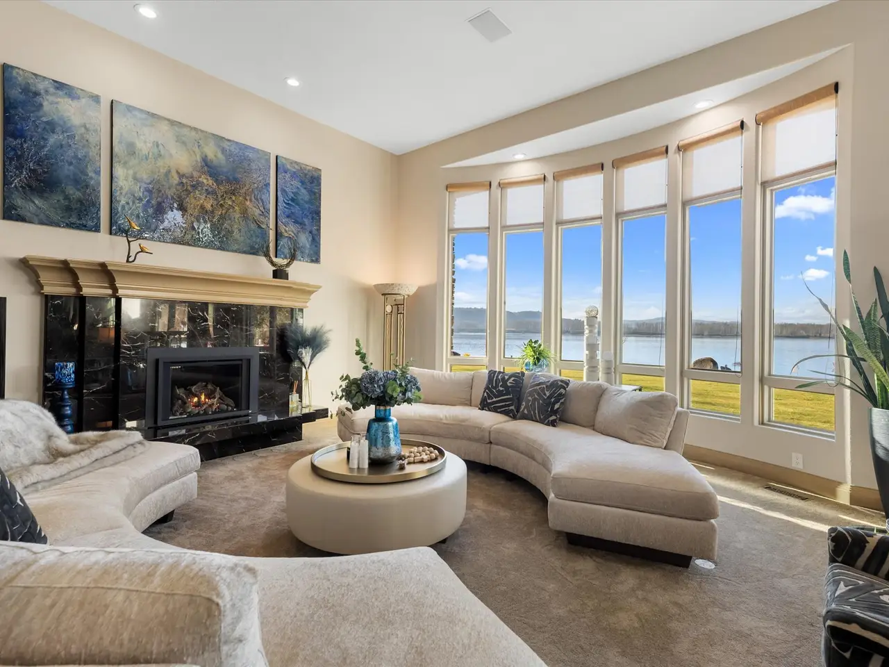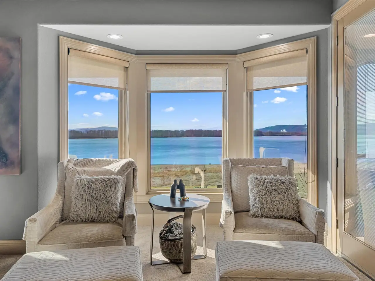 Stunning waterfront estate offers an unparalleled lifestyle, with 16 acres of privacy surrounded by water on three sides. Over 1,000 feet of sandy Columbia River beach and breathtaking views from nearly every room in the 7,280 sq ft home. Picturesque boardwalk leads to the 80-ft long boat dock, ideal for water adventures. Completely remodeled open kitchen is a chef’s dream with 3 ovens, quartz counters, and so much more. River front gazebo is perfect for hosting large gatherings with a full kitchen and the option to enclose-complete with playground, gas fire pit and more. 4 bedrooms, office, 2 versatile flex rooms and 5 bathrooms. Primary suite is an oasis of comfort you'll never want to leave. Garage parking for at least 10 cars and an RV.