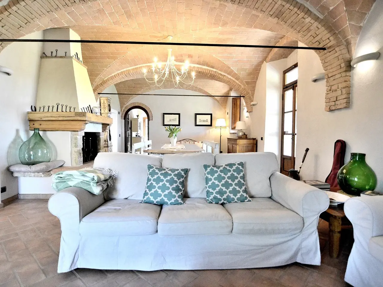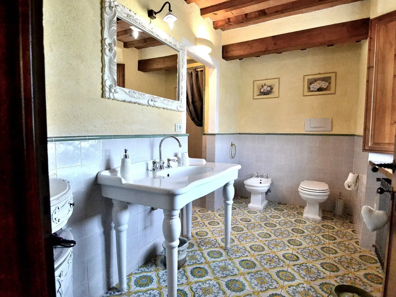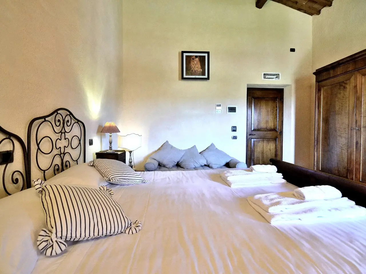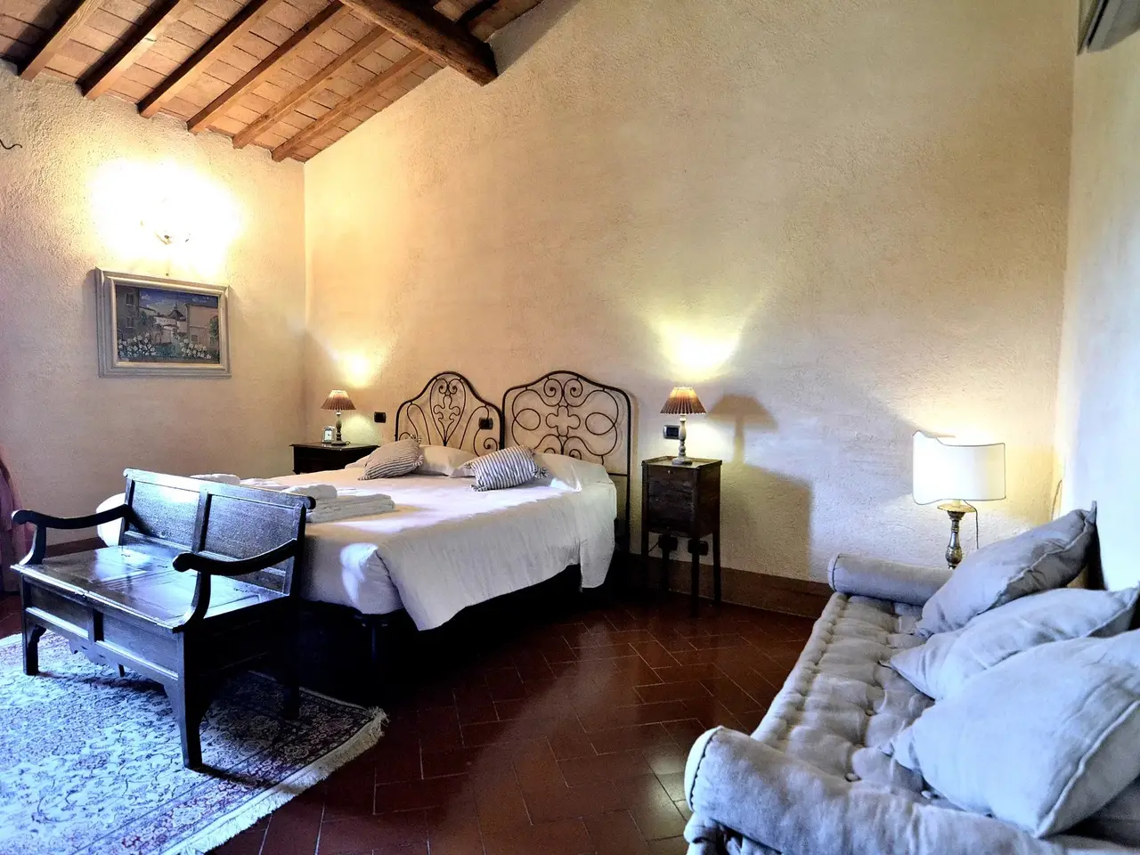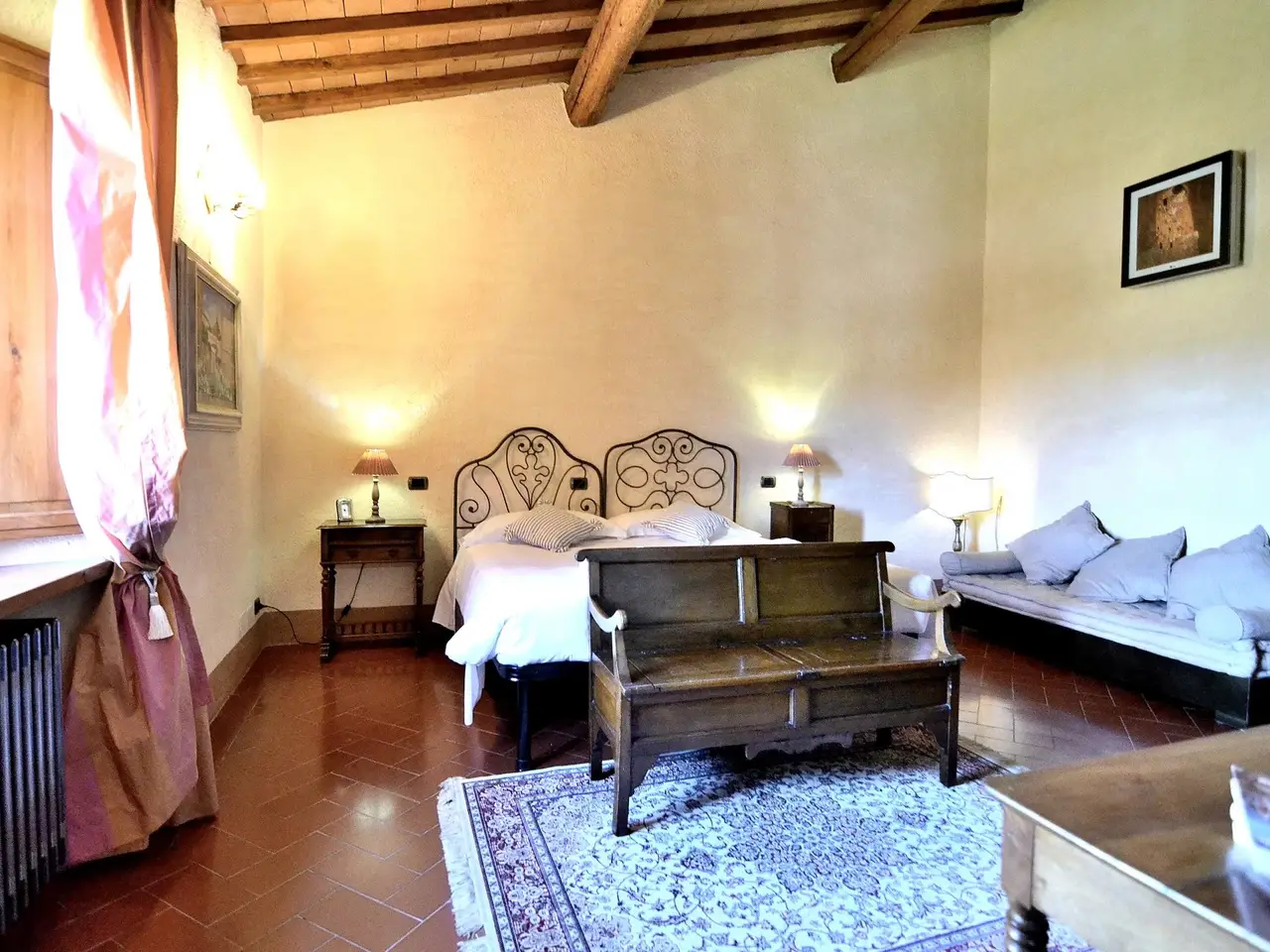 Exclusive villa completely renovated, in a panoramic position on all sides of the property. Large infinity pool equipped with sunbeds for all guests, umbrellas and a large gazebo with table and chairs. Veranda, large garden and parking area. The villa is ideal for up to 14 guests. 7 bedrooms and a total of 9 bathrooms. Air conditioning, Wifi, mosquito nets on the windows. Heated jacuzzi. 4 km from all services. Quiet and safe area, strategic for visiting all of Tuscany! Excellent and suggestive location on top of a small hill covered in vineyards and olive groves. 360 degree panoramic view. The sun sets almost in front of the veranda, furnished with a heated jacuzzi and sofas, and the swimming pool. The villa is located between Florence and Siena a few kilometers from medieval villages such as Certaldo, San Gimignano and Monteriggioni. Even the main villages of Chianti can be reached in a short time. Nearby there are also many wineries and farms where you can taste local wine and other typical products. Florence and Siena can both be reached in 30 minutes by car. You can also reach the center of Florence in 40 minutes by train from the small station of Certaldo (just 6 km from the villa, with free parking to leave your cars). The property has a large plot with a parking area inside the electronic gate. The villa is on two floors. On the ground floor you will find: - A Tuscan-style living room with sofas, fireplace, large satellite TV and table for 14 people. - A service bathroom with toilet and sink, accessible from the living room itself. - A large bedroom with comfortable queen size bed, sofa, wardrobe and private bathroom with shower, toilet, bidet, sink. The sofa located in this room can be transformed into a double bed if necessary. - A laundry room with washing machine, dryer, separate waste collection, etc. - The veranda, adjacent to the living room, is on a higher level than the pool area. Here you will find sofas to relax while enjoying the magnificent panorama and also a bathroom with shower, toilet, sink, also ideal for when you use the pool. Under the veranda we have recently (January 2022) installed a jacuzzi for up to 4 people. The roof of the veranda is waterproof, as is that of the gazebo located in front of the kitchen, on the side of the garden. - The swimming pool is 12 x 6 meters, infinity model. To reduce the amount of chlorine, the pool has a latest generation salt disinfestation system. In addition, a corner of the pool has a hydromassage (which can be activated by the special plug). The pool area is also bordered by a net that divides it from the rest of the garden, without impacting the aesthetic aspect, and is accessible via a small gate that can be closed in order to safeguard the safety of any children in your group. On the first floor: - 4 DOUBLE BEDROOMS each with large private bathroom inside. All rooms with large queen or king size bed, wardrobe, chairs or armchairs, mosquito nets on the windows, air conditioning. - 2 CONNECTING ROOMS (one double, the other twin): These two rooms are connected by a door that can be closed, since both rooms have a private door to the "common" corridor. The master bedroom also has a private bathroom, like all the others inside. The twin room, where you will find two single canopy beds, does not have a private bathroom inside. However, a large bathroom is located in the same corridor where the bedrooms are located, so twin guests can use the bathroom.