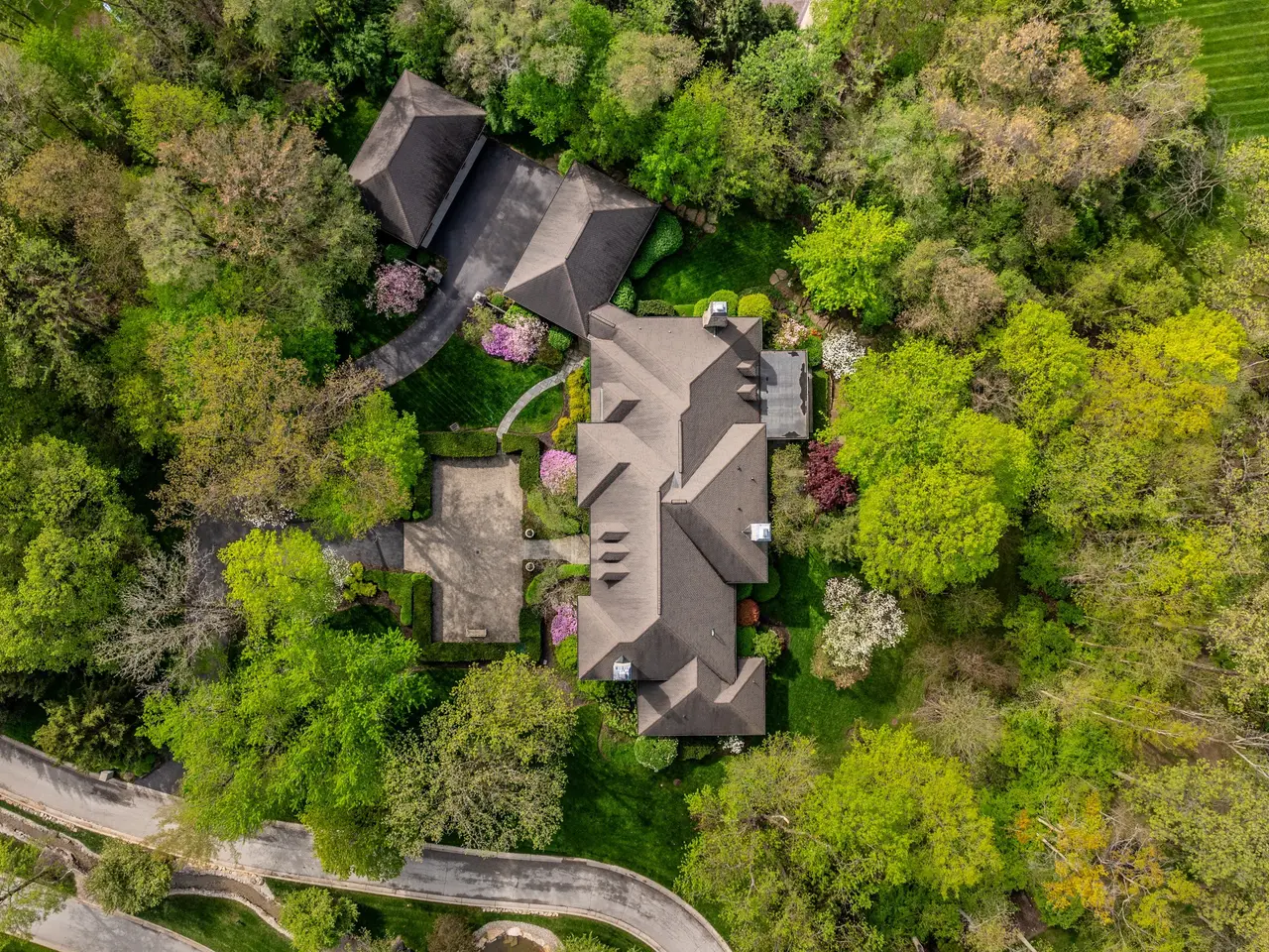 Exquisite custom-built estate on 1.84 acres of lushly landscaped grounds in the prestigious gated community of Springwood, overlooking the serene Nature Conservancy. This breathtaking home features both a 3-car attached garage and a 3-car detached garage. Inside, the grand great room welcomes you with a limestone fireplace and soaring windows that frame the park-like backyard. The formal dining room impresses with elaborate custom moldings and a hand-painted mural, while the main-level den offers a carved marble fireplace, custom built-ins, and TV niche. The main-floor primary suite is a private retreat, complete with a spa-inspired bath featuring a soaking tub, dual vanities, expansive walk-in shower, and an exceptional two-sided walk-in closet. The chef's kitchen, completely remodeled just two years ago, is a culinary masterpiece, boasting a butler's pantry, quartzite countertops, coffee bar, Wolf appliances, 6-burner gas range, built-in fridge/freezer, dual dishwashers, and additional refrigerator drawers. It flows seamlessly into the family room, featuring a limestone fireplace, custom seating, exposed truss ceiling, and stunning views of the backyard. The home also offers two washers and dryers, adding convenience to everyday living. Upstairs, discover four ensuite bedrooms, an office, and a playroom. The finished lower level offers a rec/theatre room, wine cellar, exercise room, and abundant storage. Additional highlights include an elevator and unmatched craftsmanship throughout. This one-of-a-kind estate is the epitome of sophisticated Carmel living, combining luxury, functionality, and timeless elegance.