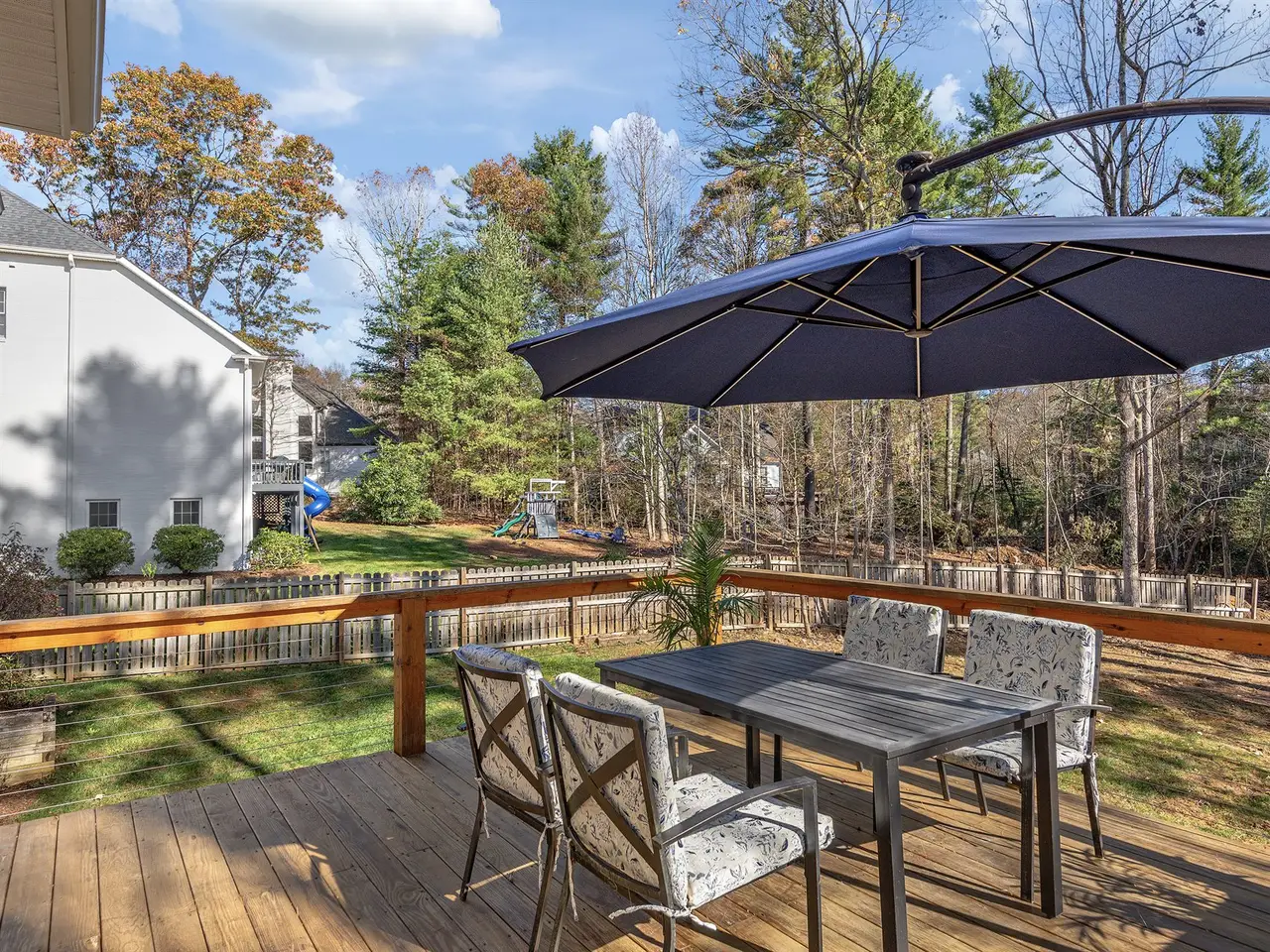 Simple pleasures await in this impressive Biltmore Park home! Whipping up delicious meals in the open kitchen, gathering for the holidays in the dining room or simply relaxing in the living room or cozy family room w/ gas fireplace. Hardwood floors and LVP throughout. Laundry room w/ sink. Finished walk-out basement w/ fam room, built-ins, media room and full bath. Step outside and you are greeted by a delightful open deck w/ cable railing overlooking the level fenced yard with direct access to the picturesque greenway that leads to TC Roberson K-12 schools and the ever popular community pool/clubhouse/playground. Nestled in the heart of south Asheville's premier neighborhood , this home offers four spacious bedrooms including a private owner's retreat with tiled bath & adjoining office/den. New roof ('15), furnaces ('18 & '22), gas stove & microwave ('22), water heater ('22), EV charger & upgraded fixtures make this a rare opportunity to move right in!