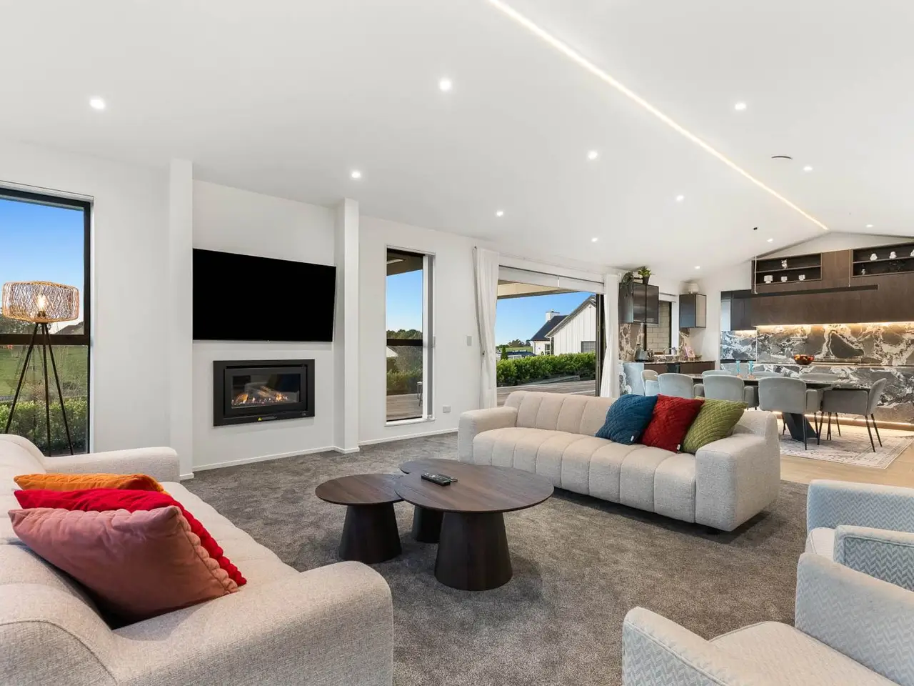 Sunlit open-plan family living/dining
