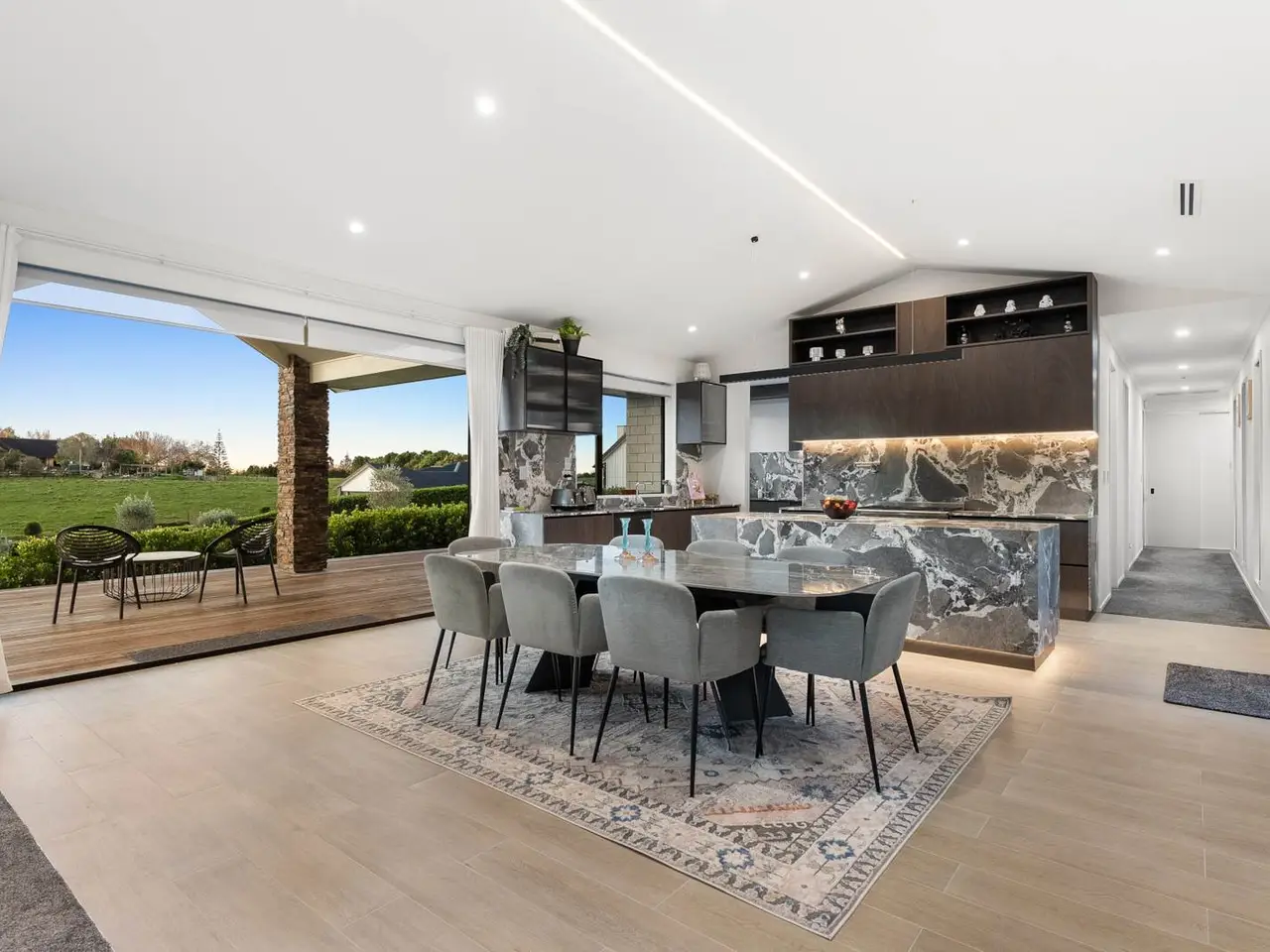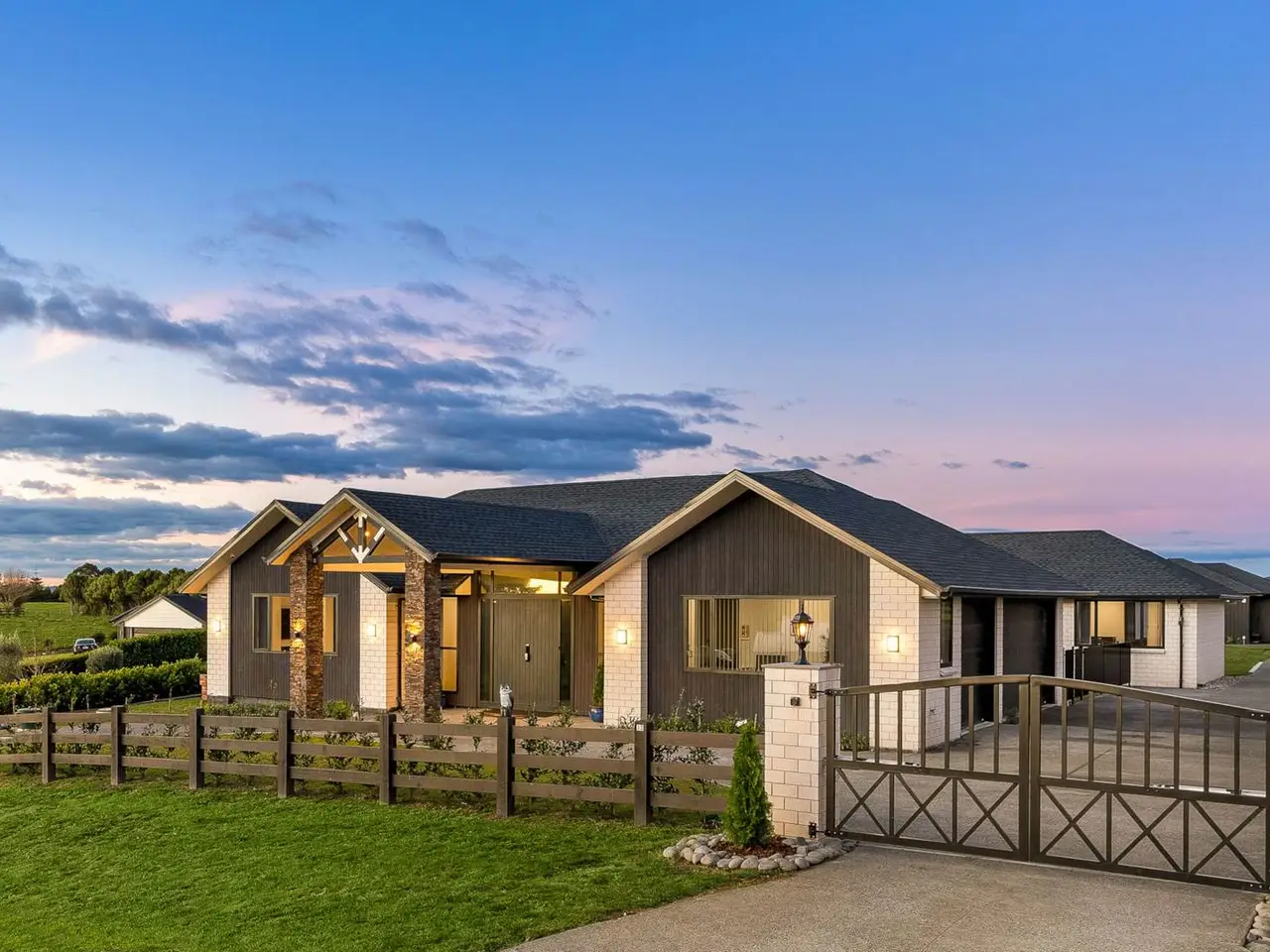 EXTENDED FAMILY, GUESTS OR RENTAL INCOME OPTION Two sets of electric gates and a drive-through portico herald arrival at this excellently designed, recently completed approx 355 square metre (over framing) residence and its secondary approx 65 square metre (over framing) 2 bedroom self-contained unit at the end of the continued concrete driveway. Residing on 2605 square metres with a desirable north-facing aspect, this single level, solid brick with shingle roof home, designed by HQ Designs, was constructed by Mika Builders Limited completed in 2025 (CCC date).Boasting 2.7 ceilings, raked in the expansive open plan living area, 2.4m doors, ducted air conditioning and ceiling fans, fibre optic internet, alarm and camera systems, sensor lighting in the hall and a smart vent system are all included here. Impressive double doors open to a welcoming foyer with resin chandelier and entry into the formal lounge and open plan family living. Both these areas spill out to separate decks and gardens via sliding and stacker doors. An abundance of windows floods the living area with light while a gas fire adds a cosy ambience and comfort. The adjoining dining room flows out to elegant covered outdoor entertaining and far-reaching views from the fabulous Kwila deck with Schist stone pillars. Sleek and shiny, the adjacent show-stopping kitchen demands a standing ovation with exquisite stone benchtops and matching exposed quartz splashback, stone sink, Blum cabinetry, Hansgrohe tapware, Fisher & Paykel 900mm stove with gas burners and butler’s pantry which cleverly incorporates induction hob and adjoining the laundry and opens out to a drying area. Off the hall on the way to the bedrooms, a media room is a welcome addition and the perfect place to relax and unwind. Complete with flame effect electric fireplace and sliding stacker doors to outdoors, the master bedroom boasts walk-in wardrobe, fully tiled double vanity ensuite with bath and separate shower with rain head. Bedrooms two and three both have built-in robes and are joined via a common study nook. They share a fully tiled bathroom. Alongside, the fourth bedroom features walk-in robe and its own fully tiled ensuite with rain head shower. The hallway incorporates generous storage provision. Accessed off the foyer, the multi-functional triple lock up garage has marine carpet, loft storage and separate work from home office space. Outdoors there’s flat lawn area – great play space for kids and plenty of room for the vegie garden and whatever else. Currently attracting $600 of rental income or ideal for extended family living, the ancillary unit with heat pump and HRV, 2.7 metre ceilings and separate power meter, comprises an open plan kitchen with induction cooktop, engineered stone bench and waterfall edge, an adjoining living and dining area, two bedrooms with built-in robes, a bathroom, and lovely rural views. This home is separate and spacious. Conveniently located less than 500 metres from Karaka Primary School and in close proximity to the motorway on-ramp and community services, this home effortlessly combines ultra-stylish family living with luxurious comfort and convenience. Inspection is sure to impress! Near new home completed in 2025 (CCC date)Stunning approx 355m2 (over framing) residence. Second approx 65m2 2 bedroom unit (over framing)2605m2 property. Single level home with north-facing aspect2 sets of entry gates & portico. Split driveway to ancillary unit. Impressive 2.7m ceilings, 2.4m tall doors. Sensor hall lighting. Ducted air conditioning + ceiling fans. Fibre optic internet. Alarm & camera systems. Smart vent system. Abundant storage provision. Feature lighting. Imposing double door entry to tiled foyer with resin chandelier. Formal lounge, sliding stacker doors to private deck. Media room/rumpus. Sunlit open-plan family living/dining. Sliding stackers to north deck. Scenic large covered Kwila decked. Elegant entertaining & leisure. Breathtaking large kitchen. State of the Art design & equipment+ matching butler’s pantry incorporating laundry. Outdoor access. Chic master bedroom, deluxe ensuite, walk-in robe, garden access. Bedrooms 2 & 3 built-in robes, shared study area & tiled bathroom. Bedroom 4 with walk-in robe & fully tiled ensuite. Linen presses. Triple lock-up garage. Marine carpet. Loft storage. Home office space. Ancillary unit with separate power meter. HRV & heat pump. Open plan kitchen, living & dining area. 2 bedrooms + built-in robes. Expansive grassy play area. 2 x 25,000 concrete tanks & filtration. Less than 500m to Karaka Primary School & ACG Strathallan bus routes8.5kms to Karaka shops & community facilities. 10kms to Pukekohe Township5.5kms to north & south motorway on-ramp. 33kms to Auckland Airport Auction: 177 King Street, Pukekohe (Branch Office) on Thursday 11 September 2025 at 2:00PM (unless sold prior)