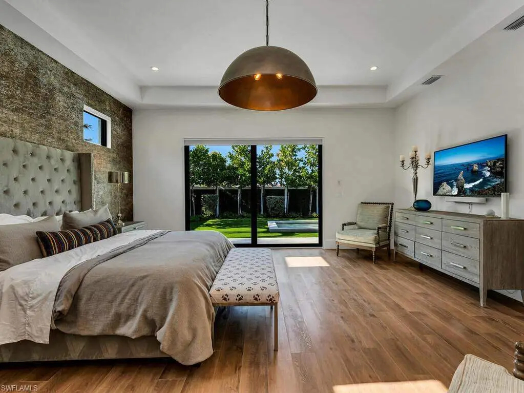 Crafted for Living. Designed for Legacy. This is more than a home-it's a lifestyle statement. Inspired by the sleek, high-desert estates of Scottsdale, Arizona, this architectural gem brings modern minimalism and luxurious livability to the heart of Naples, Florida. With 4,524 sq/ft under air and 7,312 sq/ft total-including 1,411 sq/ft of lanai and pool deck-this one-of-a-kind residence offers seamless indoor-outdoor living on a grand scale. At the heart of the home is a showstopping 15-foot island and a culinary suite that includes a 48" Z-Line gas range with dual electric ovens, dual 36" refrigerator/freezers, convection microwave, dual dishwashers, a hidden mixer station, and walk-in butler's pantry with additional sink, dishwasher, and refrigerator. Dual dedicated glassware rinsers add a chef's-kitchen flourish. The 14' x 32' covered lanai is an entertainer's dream-complete with built-in grill (infrared & rotisserie), undercounter refrigerator, gas fireplace, and a 75" TV. Motorized solar shades allow for total comfort and ambiance, whether you're dining alfresco or lounging by the spa-style pool with cascading waterfalls, artificial turf, and lush privacy landscaping. The primary suite offers serene views and spa-caliber amenities: wet room with steam shower, chroma-therapy lighting, freestanding soaking tub, dual vanities with storage towers, Toto bidet toilets, and a private outdoor shower surrounded by gardens. The custom walk-in closet is illuminated and designed like a luxury boutique. Four guest suites, each with en-suite baths and generous dimensions, are designed to accommodate king or dual queen beds. A private guest cabana, hidden behind a discreet entry, includes a full kitchen with Invis-a-Cook induction cooktop, LG Wash Tower, living area, private entrance, and parking. A flexible hallway can convert this into a two-bedroom, two-bath guest wing-ideal for extended stays or live-in staff. Additional highlights: 3-car garage with 12' ceilings (EV pre-wired), four-zone HVAC, three tankless propane water heaters, 1,000-gallon buried propane tank, Lutron Caseta lighting, insulated interior walls, Icynene foam attic insulation, under-cabinet lighting, freestanding ice maker, wine chiller, backlit Blue Cristallo Quartz stone accent panels, and a combination laundry/mudroom with two LG Wash Towers. Every finish. Every fixture. Every space-elevated! Live boldly. Entertain effortlessly. Rest luxuriously. This is more than a home-it's a statement in architecture, lifestyle, and design.