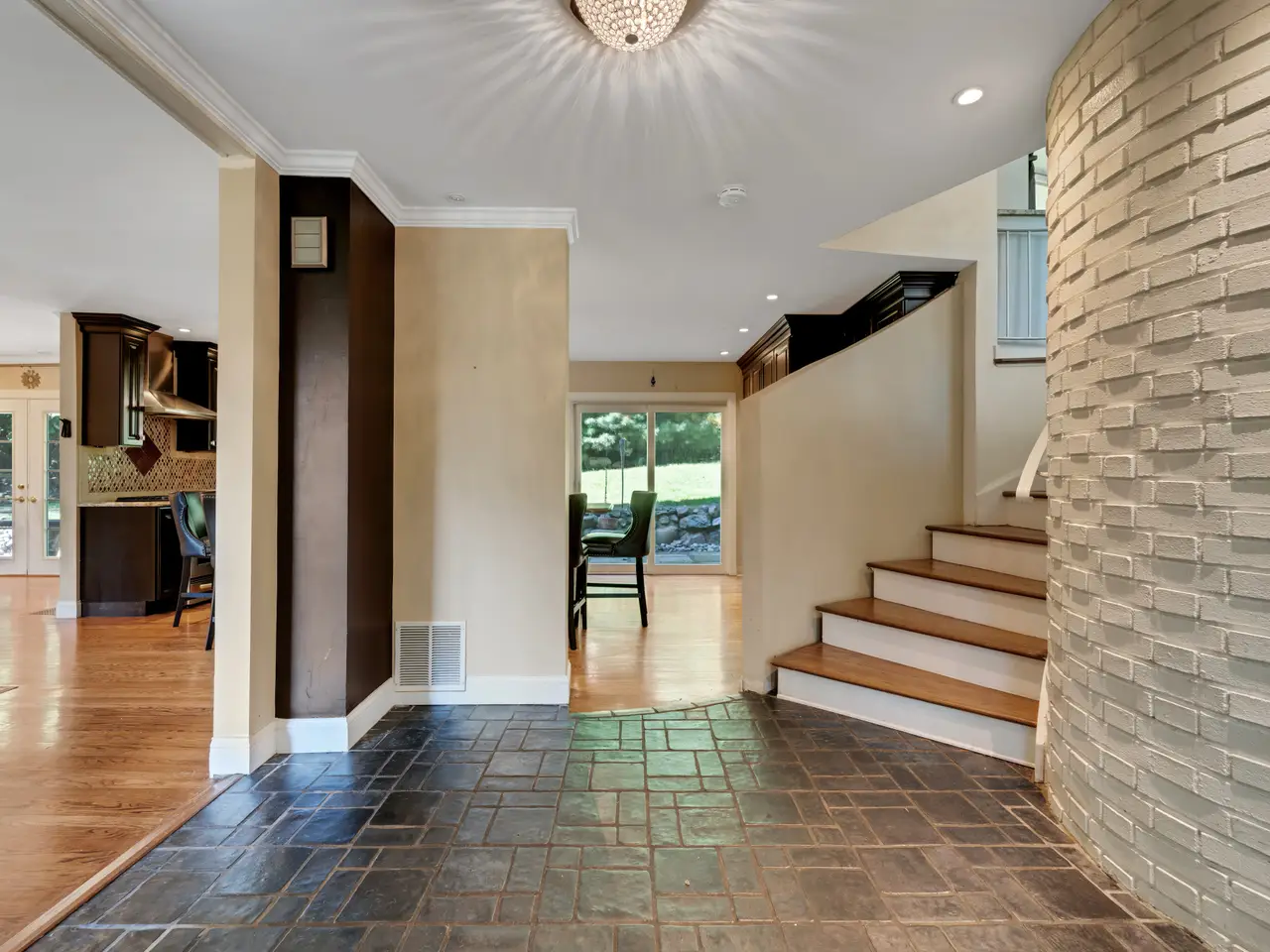 This exquisite four-bedroom, 2.5-bathroom split-level home, perched atop a hill in a peaceful cul-de-sac, offers the perfect blend of comfort and convenience. Abundant natural light floods the main level through large windows, creating a welcoming ambiance. The spacious kitchen boasts a large island seating six people, complete with an attached microwave for added functionality. A focal point of the home is the large white brick wood-burning fireplace, perfect for cozy gatherings. One of the standout features of this home is its proximity to New York City and the Palisades Parkway, making commuting a breeze. Additionally, the property boasts a wine closet and a small studio space in the basement, offering versatility and functionality to suit your lifestyle. Surrounded by lush trees, the property provides a serene backdrop. With a two-car garage and a generous driveway, parking is a breeze. Don't miss out on this gorgeous property!!