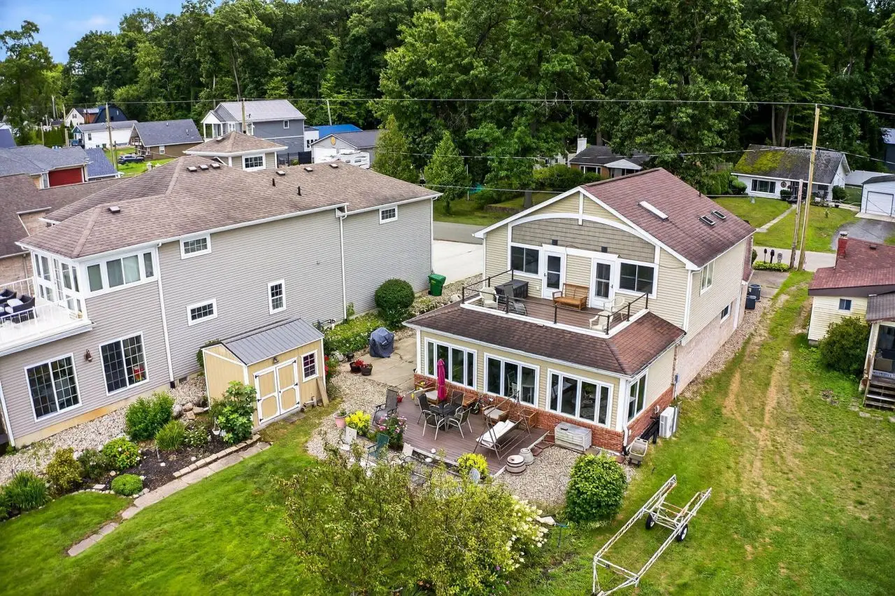 EXPERIENCE ELEVATED LAKESIDE LIVING ON EAGLE LAKE. This exceptional 6-bedroom retreat offers 50 feet of PRIME FRONTAGE on the sparkling shores of Eagle Lake, your private gateway to year-round luxury. From the moment you enter, a sun-drenched foyer with skylights and sleek tile flooring sets a sophisticated tone. Entertain with ease in the CHEFS KITCHEN featuring stainless steel appliances, an elevated dining room, and a breathtaking FOUR SEASON room showcasing panoramic lake views. Flexible den spaces and a second dining area provide versatility for guests or gatherings. A spacious MAIN LEVEL PRIMARY BEDROOM and full bath offer comfort and convenience. Upstairs, the SECOND PRIMARY SUITE opens to a PRIVATE UPPER DECK with maintenance-free synthetic flooring and modern wire railings?perfect for taking in unobstructed lake views. Two additional bedrooms with vaulted ceilings, skylights, and lake vistas complete the upper level. Step outside to enjoy a beautifully landscaped yard, private patio, flagpole, storage shed, and a pier that invites peaceful mornings and starlit evenings. Whether youre seeking a serene escape or an entertainer’s paradise, this Eagle Lake home delivers timeless style, exceptional space, and unparalleled lakefront living AND ONLY 2 HOURS FROM CHICAGO-15 MINUTES TO GRANGER and ONLY 25 MINUTES to NOTRE DAME.