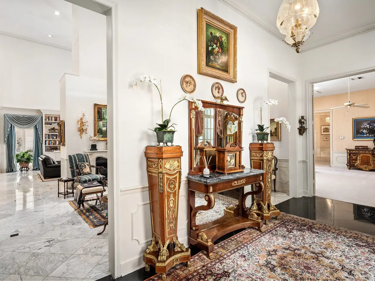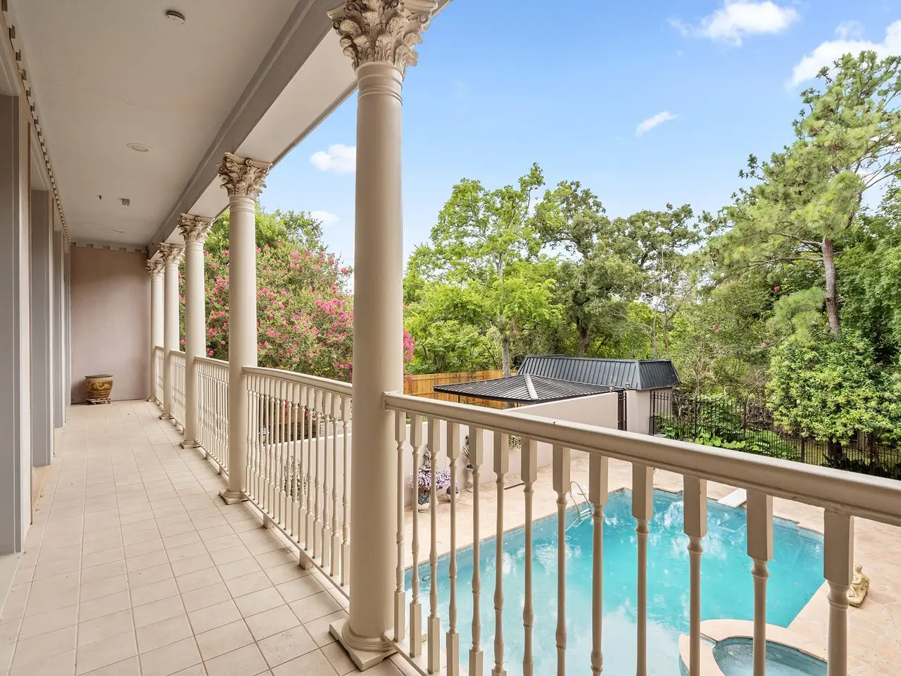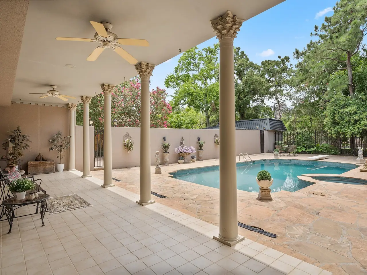 Stately, two story traditional home on a large 26,350 sqft(per HCAD) lot, ready for transformation. Expansive primary bedroom down with dual bathroom and closets. Formals, den, wet bar/butler's pantry, wine room with storage closet. Kitchen area has a large walk-in pantry, utility room, desk area and room for a dining table. Two staircases. Three bedrooms up, all with ensuite baths. Large game room(4th bedroom) up. Extra room up, could be home office/study. Swimming pool. Two driveways, enter and exit on Rocky River or Sage Rd. Parking court, 2 car garage, 2 car carport, extra parking. Private courtyards. Being sold in present condition. No repairs will be done. This is an opportunity to customize or create your dream home. All info per seller