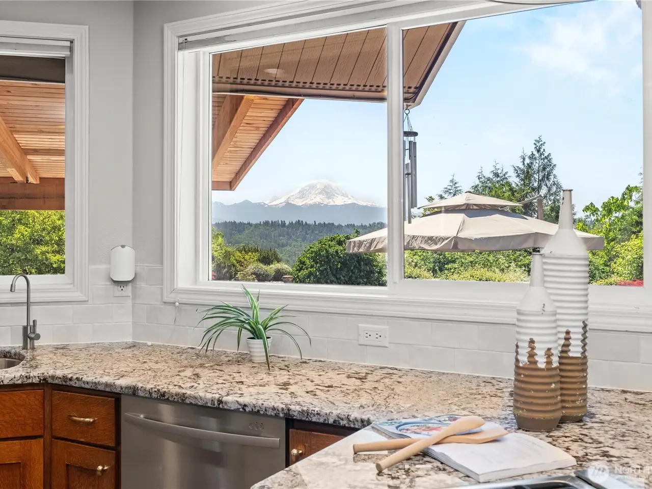 Incredible custom 4-bed, 2.75 bath home on 4.6 serene acres! From breathtaking views of Mt. Rainier to the thoughtful design, every detail has been crafted for comfort & enjoyment. The primary bedroom is a retreat of its own w/spacious 5-piece en suite & large walk-in closet. The home offers dual living spaces, giving everyone room to relax or entertain w/ease. The expansive kitchen will inspire culinary creativity w/its double ovens, wine fridge, & ample space for preparing & hosting. Don't forget the dedicated office, ideal for WFH or pursuing your passions. Step outside to your oversized backyard w/outdoor kitchen where you can take in uninterrupted views of Mt. Rainier then head to your 36x40 detached shop! Pre Inspected. Generator. A/C