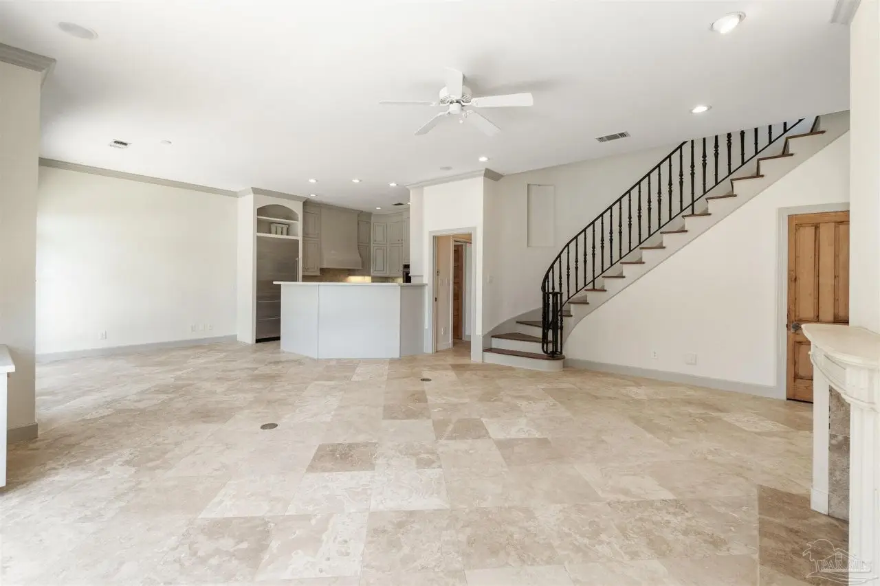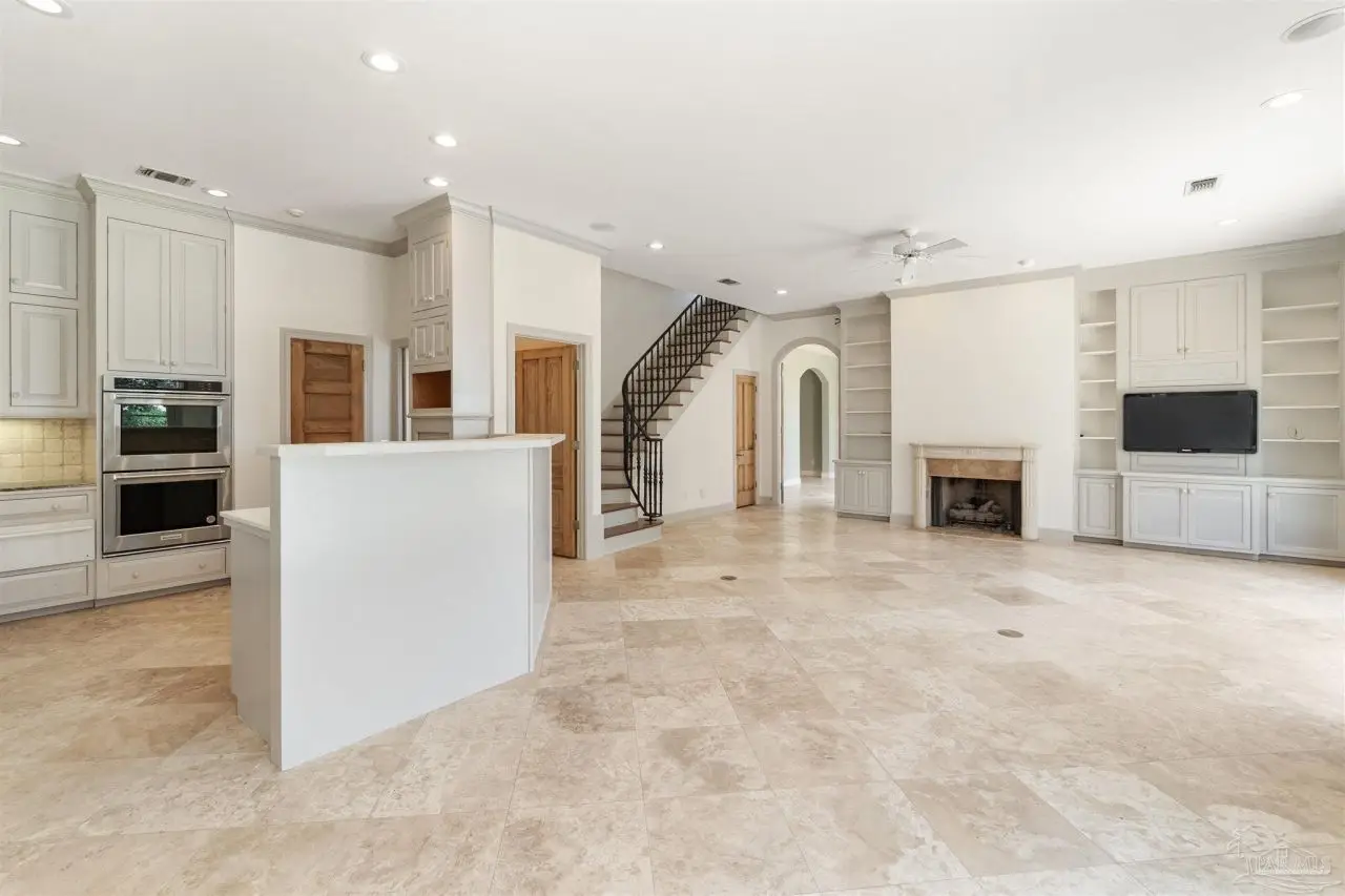 Perched on a high-elevation lot with panoramic views of Bayou Texar and Pensacola Bay, this custom-built estate blends French charm with modern Gulf Coast living. Set on a beautifully landscaped 0.67-acre lot, the home includes a private dock just minutes from open water. Built with insulated concrete forms (ICF), the property offers exceptional storm resistance and energy efficiency. Upgrades include a synthetic slate roof, Tesla charging station, whole-house water filtration, generator, and a natural well-fed irrigation system. Inside, 10' ceilings, travertine, and hardwood floors complement the spacious layout. The main level features a formal living room with wood-burning fireplace and bay views, a grand dining room, cozy family room with gas fireplace, and a chef's kitchen with ample workspace and natural light. The downstairs primary suite offers a gas fireplace, large picture window with water views, spa-style bath, and walk-in closet. Upstairs includes three bedrooms, two full baths, a sitting area, and an additional office space and walk in attic storage. Unique to this property are the multiple studio and office spaces-a professional photography studio, full gym, and workshop-designed for creative living and working from home. The outdoor living space features lush gardens shaded by mature oaks, a sparkling gunite pool surrounded by peacock pavers, and a guest house with a full bedroom and bathroom-perfect for extended stays or visiting guests. A wooden boardwalk leads through the natural landscape to a peaceful deck and dock in a protected no-wake zone-ideal for boating, paddleboarding, or simply enjoying the sunset. Located in the heart of East Hill and minutes from downtown Pensacola, beaches and area hospitals, this rare waterfront estate offers elegance, privacy, and unmatched lifestyle amenities.