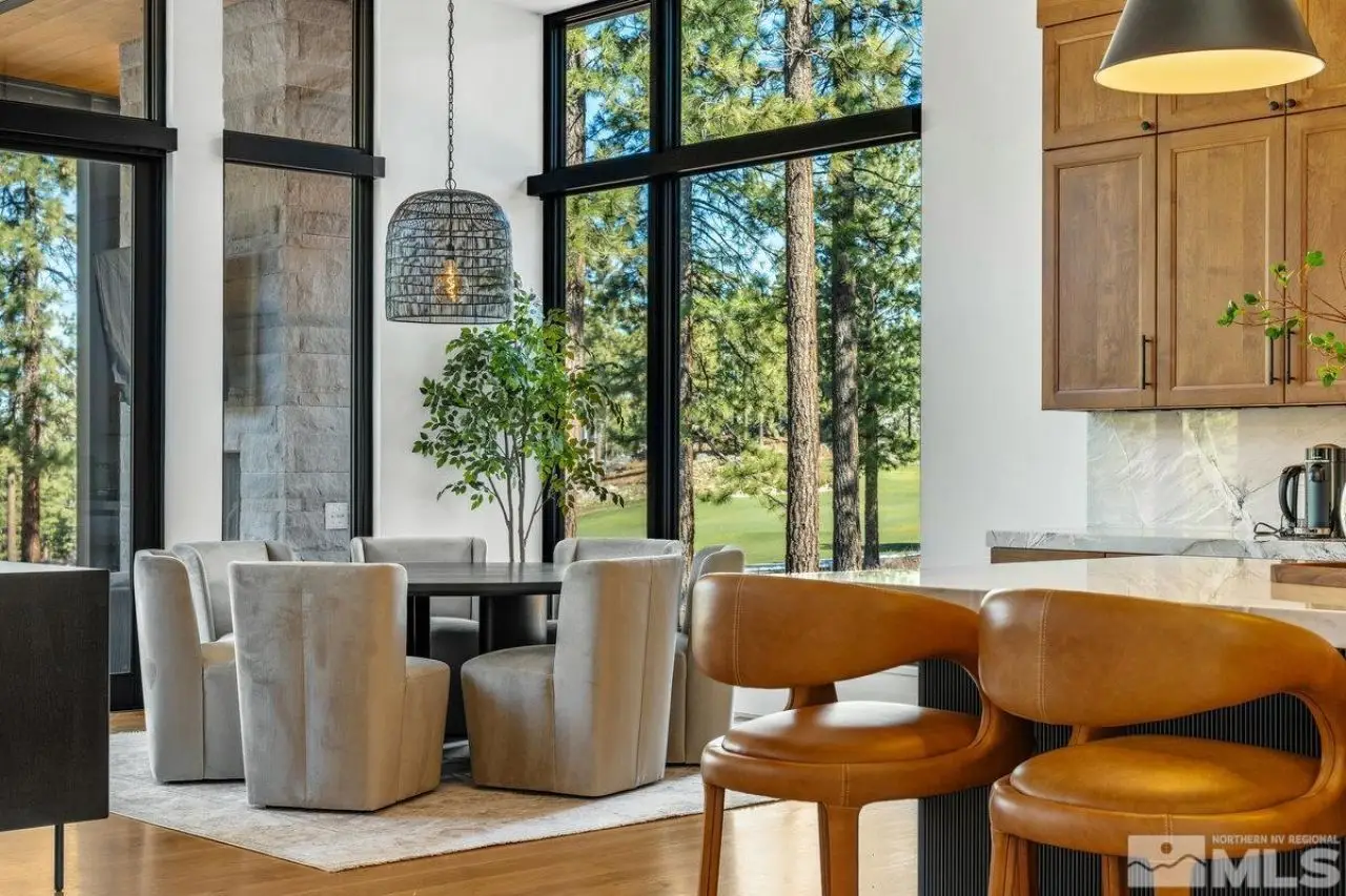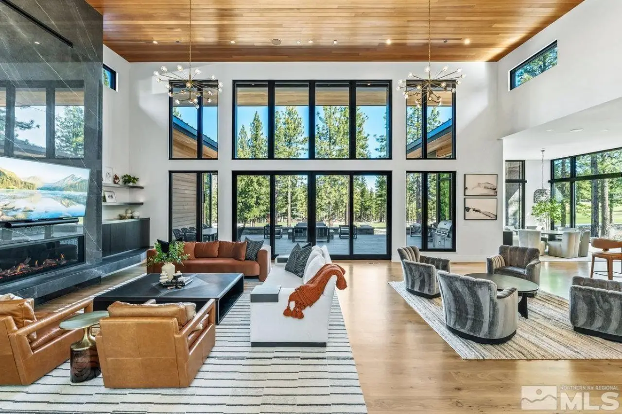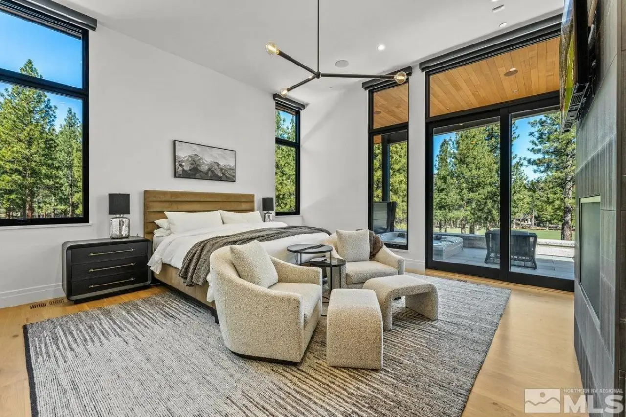 Modern luxury, nestled in mountain serenity. Imagine waking up to crisp mountain air, with the Sierra Mountain range stretching across the horizon and the Clear Creek Tahoe Golf Course just outside your windows. This isn't just a home; it's a lifestyle. Nestled in the private gated community of Clear Creek Tahoe, this Mountain Modern estate invites you to embrace nature's serenity and beauty. Set on over 1.5 acres of land, the home is surrounded by towering pines, offering seclusion and immersion in the outdoors. Inside, the spacious, open-plan design blends modern sophistication with mountain charm. Large, towering windows flood the rooms with light, creating an airy space perfect for relaxing or entertaining. Whether you're unwinding in the living room, preparing a meal in the gourmet kitchen, or hosting a dinner party, sweeping views of the lush greenery and Clear Creek Tahoe Golf Course's 7th fairway surround you. For outdoor enthusiasts, the private gym and sauna provide the perfect spot to recharge after hiking, skiing, or biking. The expansive backyard offers a fire pit, outdoor fireplace, and spa?ideal for enjoying the mountains under the stars or reflecting in peaceful solitude. The home's thoughtful design includes a cozy den and office, ideal for remote work or quiet moments. Every detail reflects a perfect balance of luxury and nature, offering the ideal backdrop for an active, elegant life. Here, each day invites you to explore, unwind, and live in harmony with the mountains. Clear Creek Tahoe is more than a community?it's a lifestyle. Anchored by Nevada's #1 ranked residential golf course, it offers an unparalleled blend of mountain and lake amenities. The private Lake & Ski House provides 180 feet of sandy beach, water sports, and shuttle service to Heavenly Ski Resort. Summit Camp is a hub for recreation with a pool, water slide, hot tub, tennis, pickleball, and bocce. At the heart of it all, the spacious Clubhouse features a year-round wellness and fitness center, ensuring adventure and relaxation in every season.