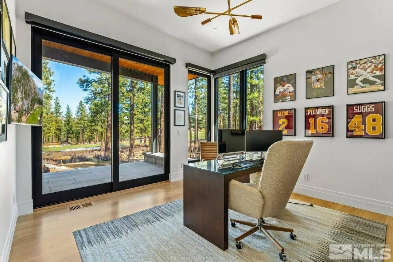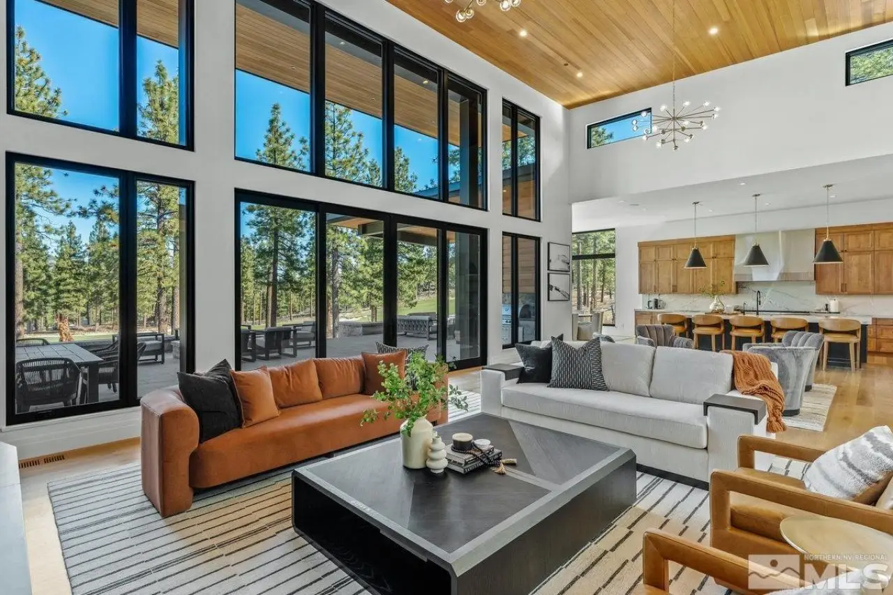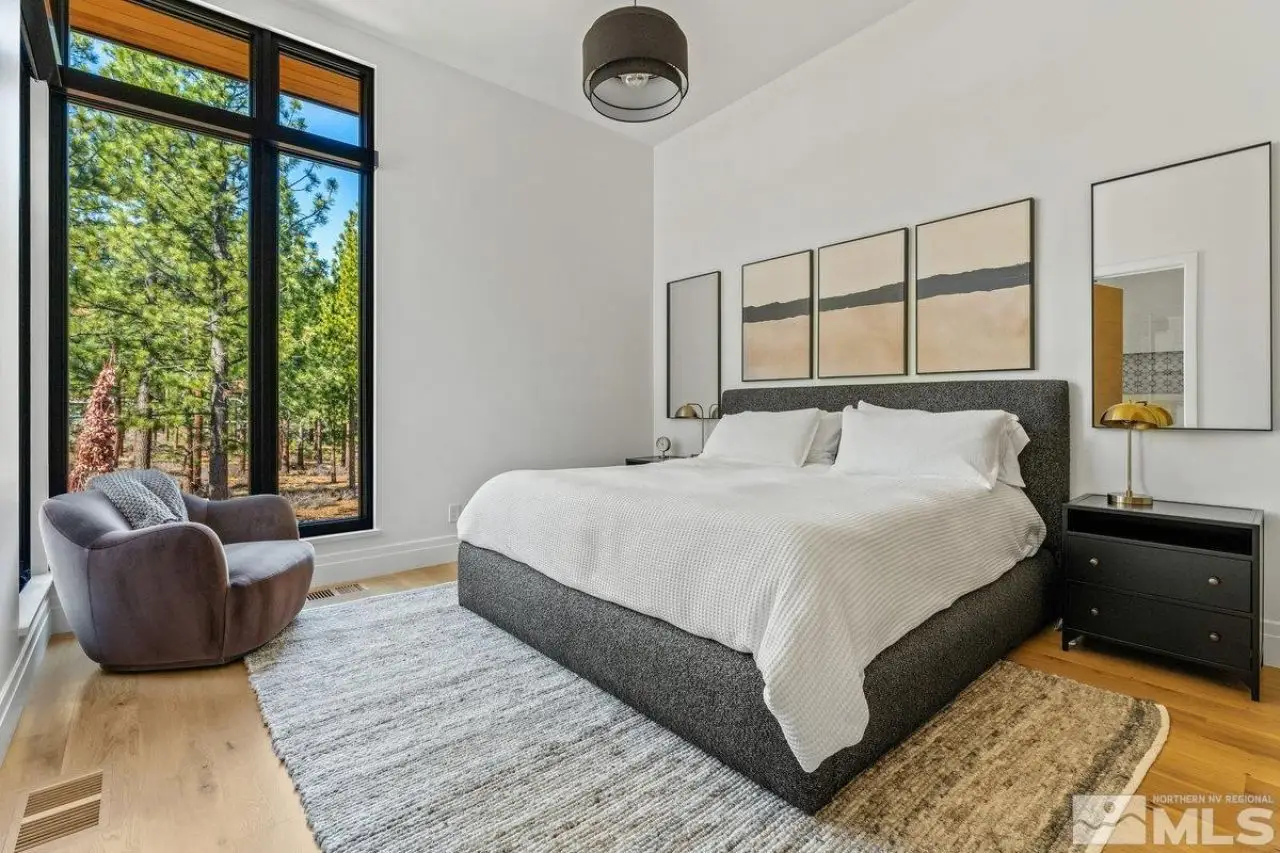 Modern luxury, nestled in mountain serenity. Imagine waking up to crisp mountain air, with the Sierra Mountain range stretching across the horizon and the Clear Creek Tahoe Golf Course just outside your windows. This isn't just a home; it's a lifestyle. Nestled in the private gated community of Clear Creek Tahoe, this Mountain Modern estate invites you to embrace nature's serenity and beauty. Set on over 1.5 acres of land, the home is surrounded by towering pines, offering seclusion and immersion in the outdoors. Inside, the spacious, open-plan design blends modern sophistication with mountain charm. Large, towering windows flood the rooms with light, creating an airy space perfect for relaxing or entertaining. Whether you're unwinding in the living room, preparing a meal in the gourmet kitchen, or hosting a dinner party, sweeping views of the lush greenery and Clear Creek Tahoe Golf Course's 7th fairway surround you. For outdoor enthusiasts, the private gym and sauna provide the perfect spot to recharge after hiking, skiing, or biking. The expansive backyard offers a fire pit, outdoor fireplace, and spa?ideal for enjoying the mountains under the stars or reflecting in peaceful solitude. The home's thoughtful design includes a cozy den and office, ideal for remote work or quiet moments. Every detail reflects a perfect balance of luxury and nature, offering the ideal backdrop for an active, elegant life. Here, each day invites you to explore, unwind, and live in harmony with the mountains. Clear Creek Tahoe is more than a community?it's a lifestyle. Anchored by Nevada's #1 ranked residential golf course, it offers an unparalleled blend of mountain and lake amenities. The private Lake & Ski House provides 180 feet of sandy beach, water sports, and shuttle service to Heavenly Ski Resort. Summit Camp is a hub for recreation with a pool, water slide, hot tub, tennis, pickleball, and bocce. At the heart of it all, the spacious Clubhouse features a year-round wellness and fitness center, ensuring adventure and relaxation in every season.