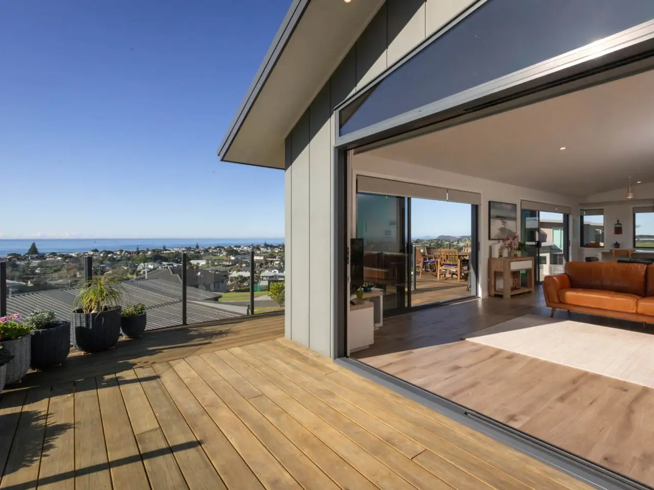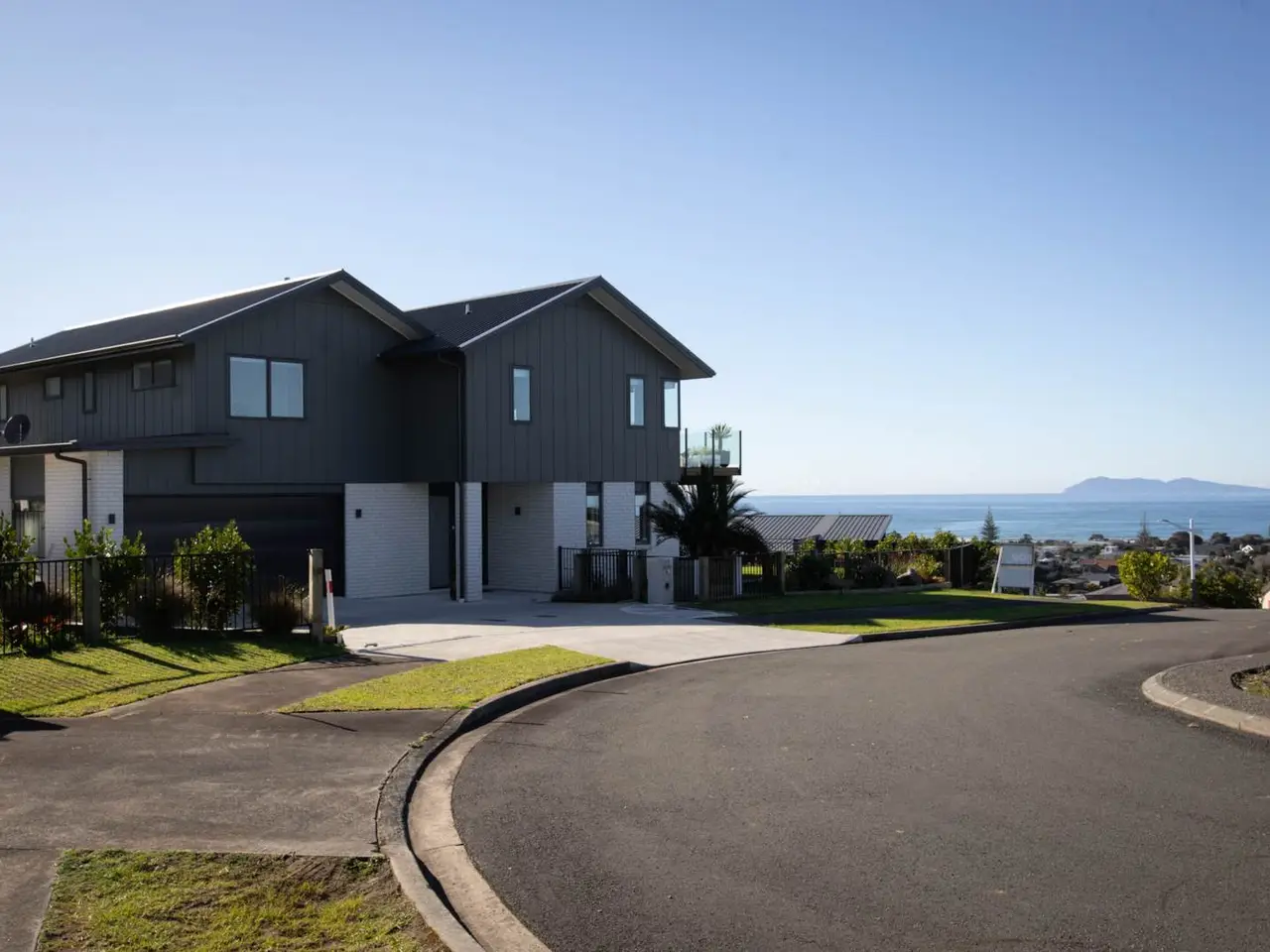 Perched high on the crown of prestigious Tohora View, this intelligently designed home offers the perfect fusion of location, lifestyle, and possibly the best ocean views at Waihi Beach. This two-year-old build has been nominated for the prestigious House of the Year Award! From the moment you enter, you're greeted by light, space, and seamless flow over two levels. An internal lift, providing effortless access from the main level to the top floor — a thoughtful addition that brings both convenience and futureproofing. The home also provides a striking American Ash timber staircase, blending natural beauty with architectural elegance.On the upper level: an expansive open-plan living area, anchored by a sleek, modern kitchen with a scullery, connects effortlessly to a generous dining and living hub. High-stud ceilings enhance the sense of scale, while stacker doors lead to a substantial wraparound deck. The stand-out feature is the panoramic ocean views that sweep from The Mount to Waihi Beaches north end and the hills beyond. Accommodation on this level includes a private master suite with its own en-suite with a luxurious bath and an oversized walk-in wardrobe, plus a second bedroom or office space and the convenience of a powder room. Every detail throughout the home — from premium fittings to considered finishes — reflects a commitment to style, comfort, and enduring quality.On the lower level: An internal access double garage allows for security and convenience while two large bedrooms and a generous second living area are perfect for accommodating teenagers or extra guests. Servicing the lower level is a fully tiled bathroom with a separate WC and dedicated laundry. Access the exterior spaces through several portals to a well-equipped second entertaining space with an outdoor oven to make those summer evenings even more enjoyable.Outside, landscaped gardens frame the home with lush greenery and seasonal colour, offering both privacy and a peaceful connection to nature. Plenty of parking for the boat and motor home too!Call us today for your private viewing