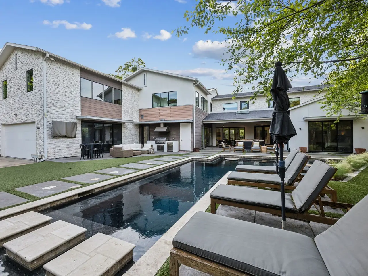 On over half an acre in Preston Hollow, this Green Built smart custom home blends luxury, efficiency, and style with a floor plan designed for functional living. The living area flows seamlessly into the kitchen, which features an expansive island, butler's pantry, and a glass-enclosed, climate-controlled wine room. The first level also includes a private office, media room, and spacious primary suite. Upstairs, you'll find three en-suite bedrooms, a large playroom, gym, craft room, walk-in attic, and additional space ready to finish as a fifth bedroom. The main living areas feature oversized windows that flood the home with natural light and offer seamless access to the backyard, complete with a pool and spa, spacious covered patio, and beautifully landscaped grounds - perfect for entertaining. Additional amenities include full smart home integration, reverse osmosis water filtration system, built-in storm shelter, and a three-car garage. Enjoy a prime location, custom details throughout, and a truly special place to call home.