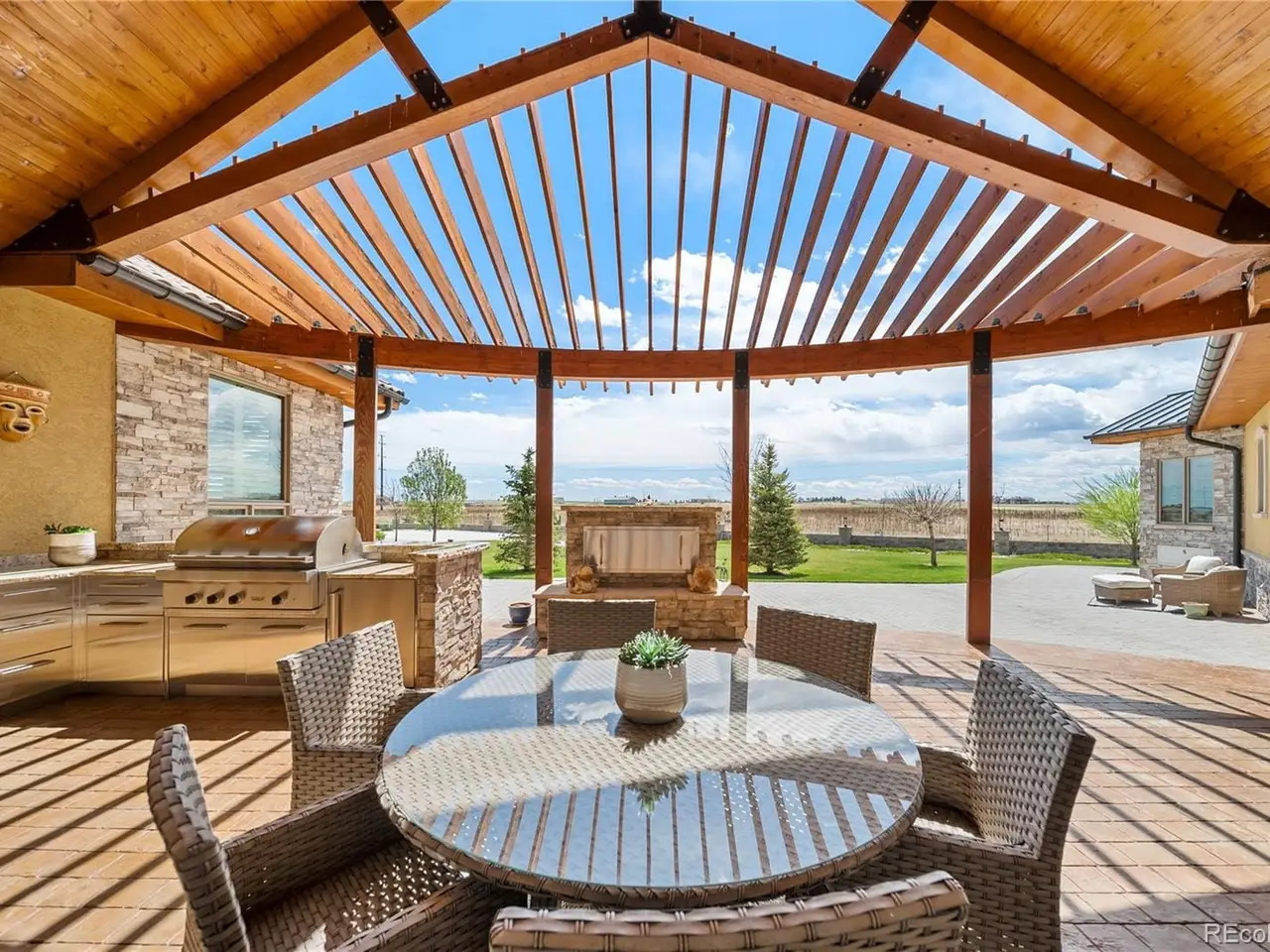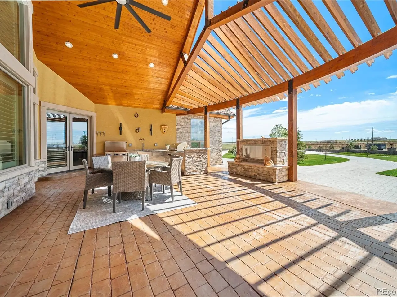 Introducing Picadilly a crown jewel among Colorados most distinguished estates. Set on 35 private acres with sweeping views of the mountains and Barr Lake. This custom-built sanctuary blends refined luxury, peaceful seclusion, world-class custom finishes, all just minutes from DIA and Downtown Denver. This residence is a masterclass in craftsmanship and scale. A grand entrance opens to soaring light-filled living spaces, where fine finishes, custom millwork and thoughtful design converge to create an atmosphere of effortless sophistication. The main level is anchored by a gourmet chefs kitchen with high-end appliances and custom cabinetry, flowing into a formal dining room and an expansive great room. Two lavish primary suites offer luxurious comfort, while a spectacular office complete with a spiral staircase ascending to a private turret, adds a touch of architectural wonder. Both levels encompass three additional en-suite bedrooms, each with direct outdoor access to its own private patio, a rare feature that offers guests connection to the surrounding landscape. Descend via elevator to a private lower-level oasis designed for wellness and entertainment. Enjoy your gorgeous indoor pool that boasts bifold doors that open to your view of the Rockies. Hot tub, steam room, dry sauna, home theater, gym, wine cellar, billiards lounge, pool bar, and kitchen, all perfectly designed for both relaxation and hosting. A Lutron smart-home system ensures seamless control over lighting and entertainment throughout the home. For car collectors and hobbyists, the heated attached garage includes four bays and a 50-ft RV bay, while the detached garage/workshop offers even more space, complete with a beautifully finished apartment above for guests or extended stays. Just 2 miles from Barr Lake State Park and preserved open space, wildlife, horseback trails and boating. Picadilly is more than a home, its a private retreat, an entertainers dream, and a haven for equestrian life.