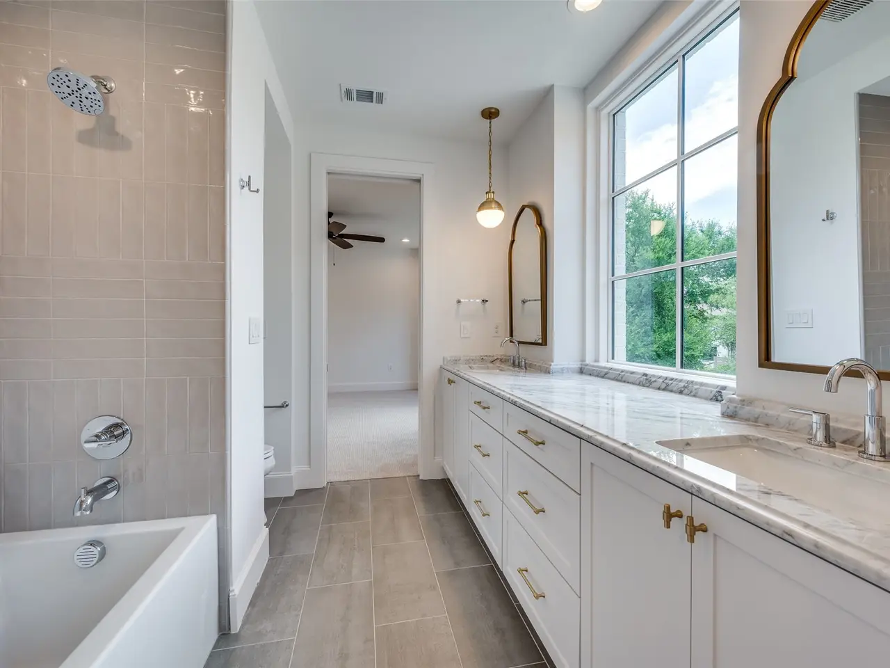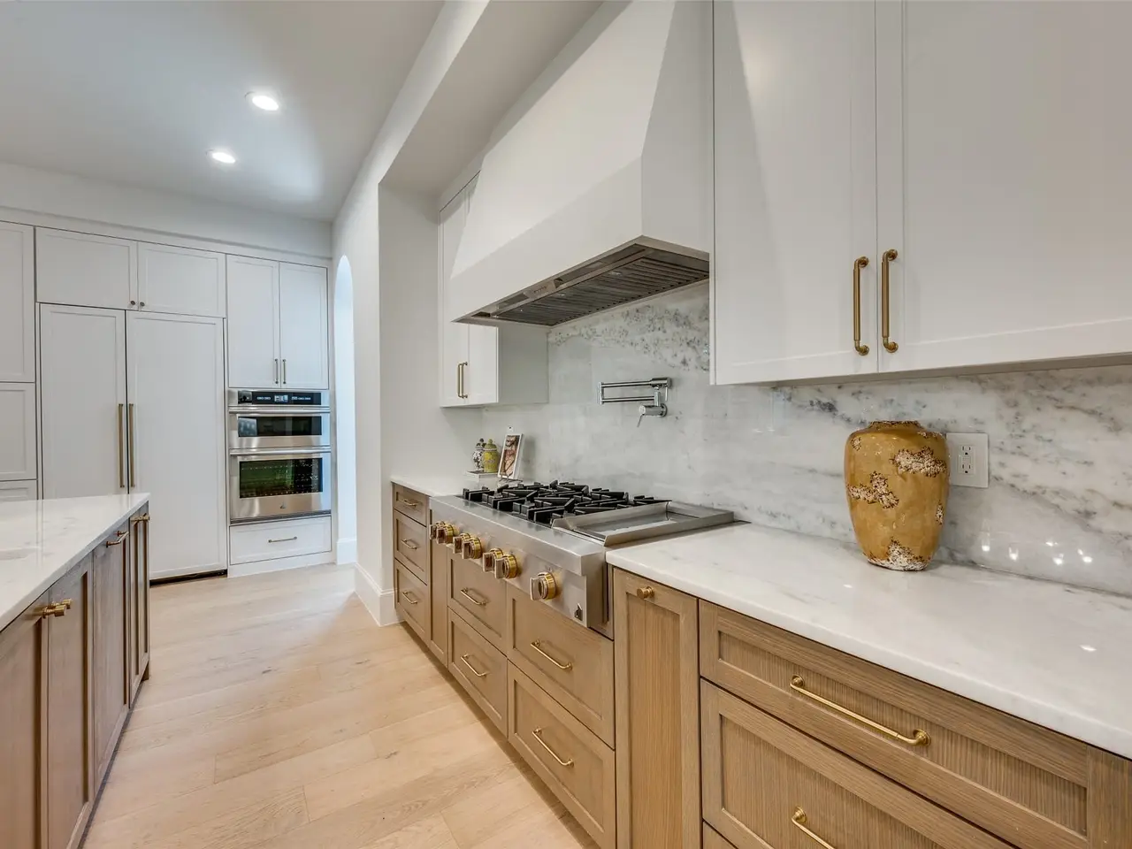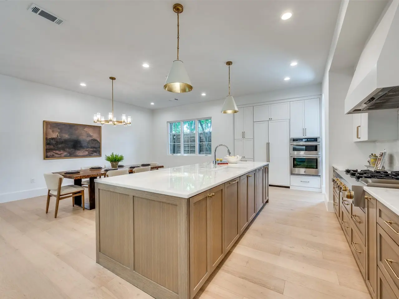 This beautiful new build offers 5 bedrooms, 4.5 baths, and 4,800 square feet of modern living with timeless style. Clean lines, black-framed windows, and wide-plank oak floors create a refined, sophisticated feel throughout. The family room features a vaulted ceiling, marble fireplace, and oversized glass doors opening to a covered patio with a second fireplace and a pool-ready landscaped backyard designed for privacy - perfect for seamless indoor-outdoor living. The chef’s kitchen includes a large marble island, custom cabinetry, and a tucked-away butler’s pantry with wine fridge, built-in cabinetry, and prep sink. The first-floor primary suite is a private retreat with a spa-style bath, dual vanities, a walk-through marble shower, and soaking tub. Upstairs are three ensuite bedrooms and a spacious flex room. Designer lighting, curated stone and tile, and custom millwork elevate every space. Located in sought-after Midway Hollow, one of Dallas most desirable neighborhoods, this residence offers thoughtful design, quality craftsmanship, and proximity to the city’s premier private schools, dining, and shopping.