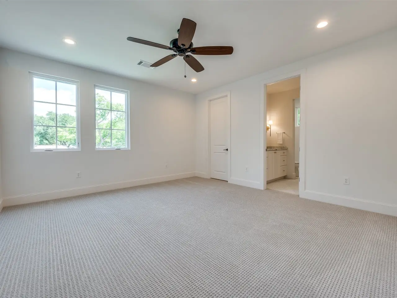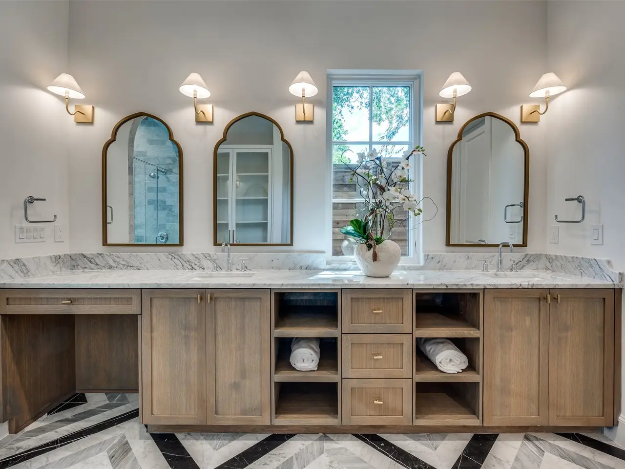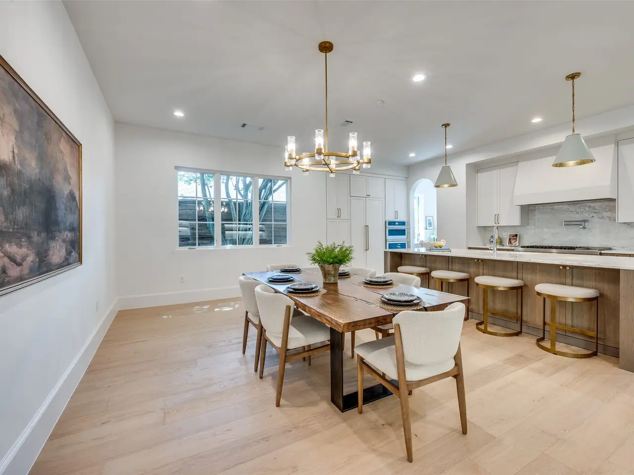 This beautiful new build offers 5 bedrooms, 4.5 baths, and 4,800 square feet of modern living with timeless style. Clean lines, black-framed windows, and wide-plank oak floors create a refined, sophisticated feel throughout. The family room features a vaulted ceiling, marble fireplace, and oversized glass doors opening to a covered patio with a second fireplace and a pool-ready landscaped backyard designed for privacy - perfect for seamless indoor-outdoor living. The chef’s kitchen includes a large marble island, custom cabinetry, and a tucked-away butler’s pantry with wine fridge, built-in cabinetry, and prep sink. The first-floor primary suite is a private retreat with a spa-style bath, dual vanities, a walk-through marble shower, and soaking tub. Upstairs are three ensuite bedrooms and a spacious flex room. Designer lighting, curated stone and tile, and custom millwork elevate every space. Located in sought-after Midway Hollow, one of Dallas most desirable neighborhoods, this residence offers thoughtful design, quality craftsmanship, and proximity to the city’s premier private schools, dining, and shopping.