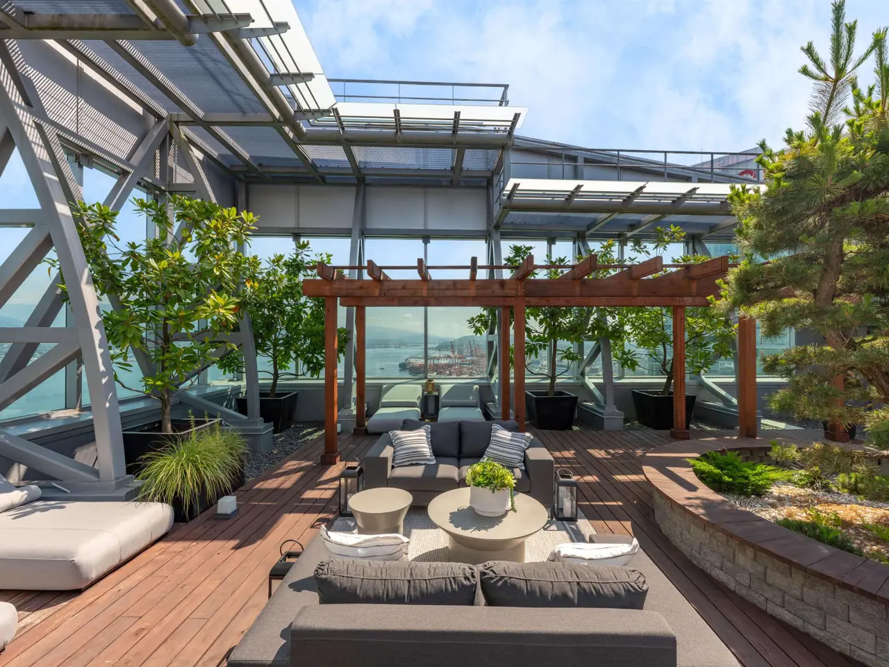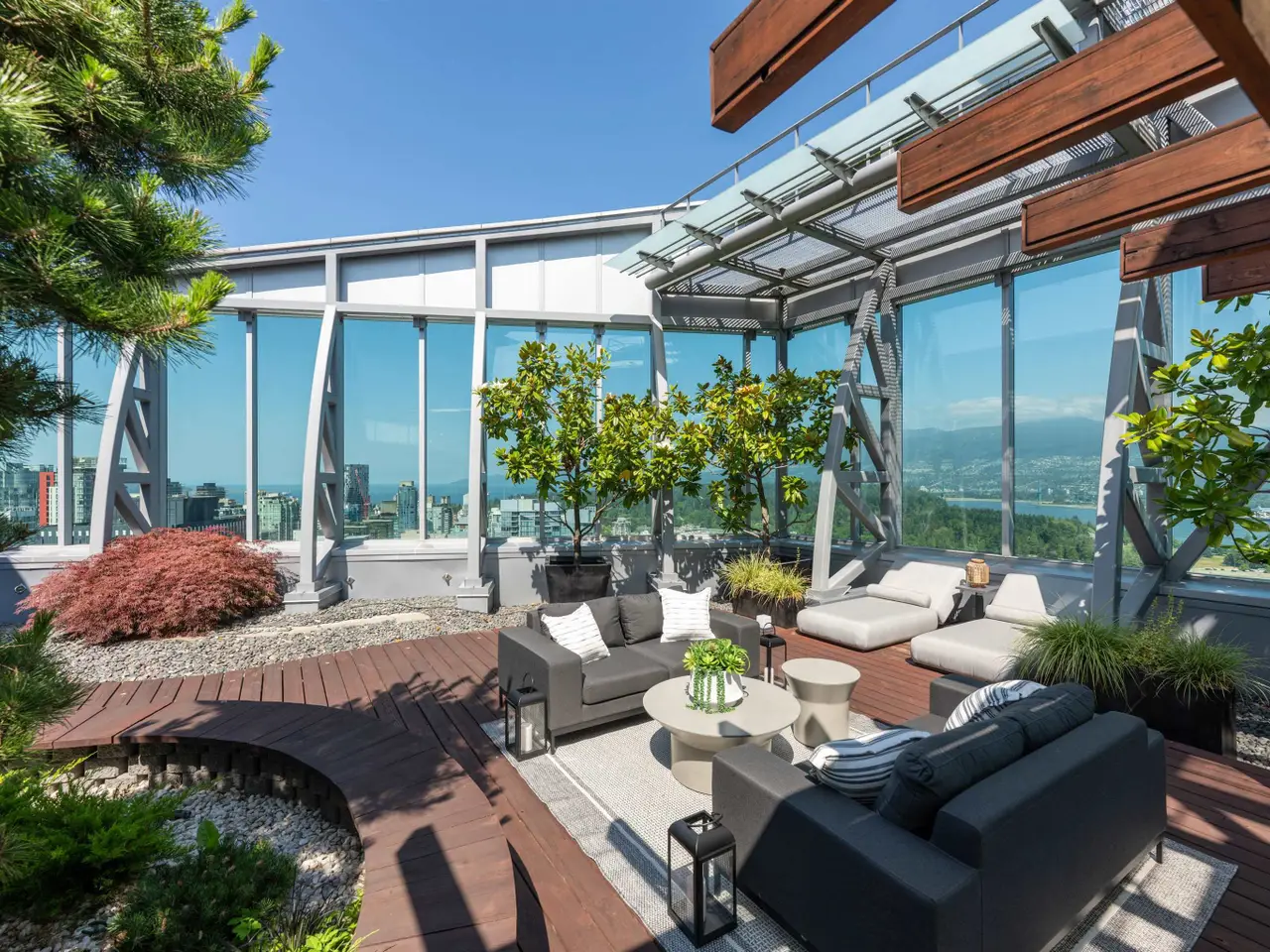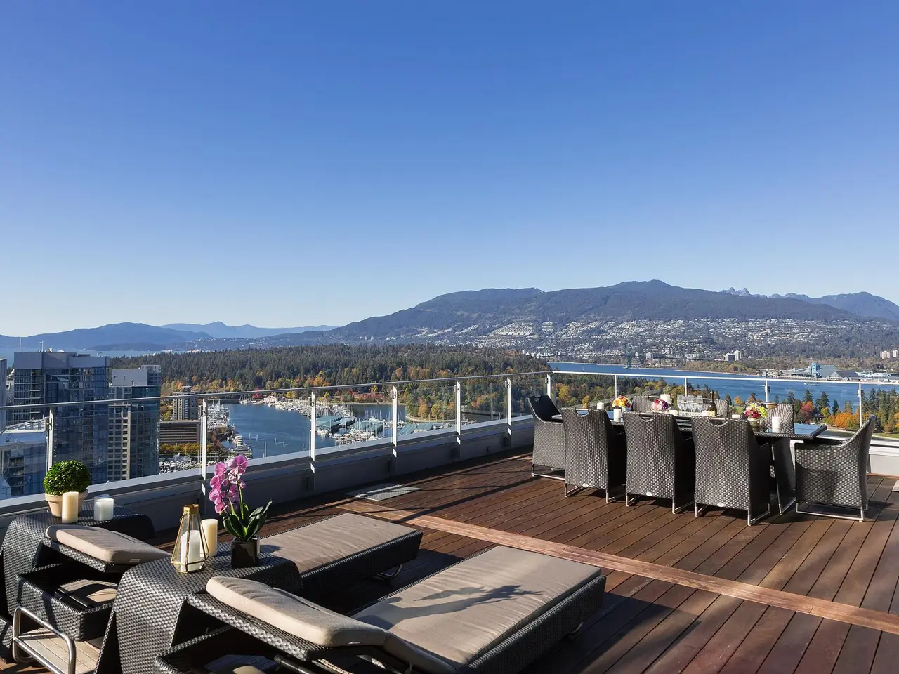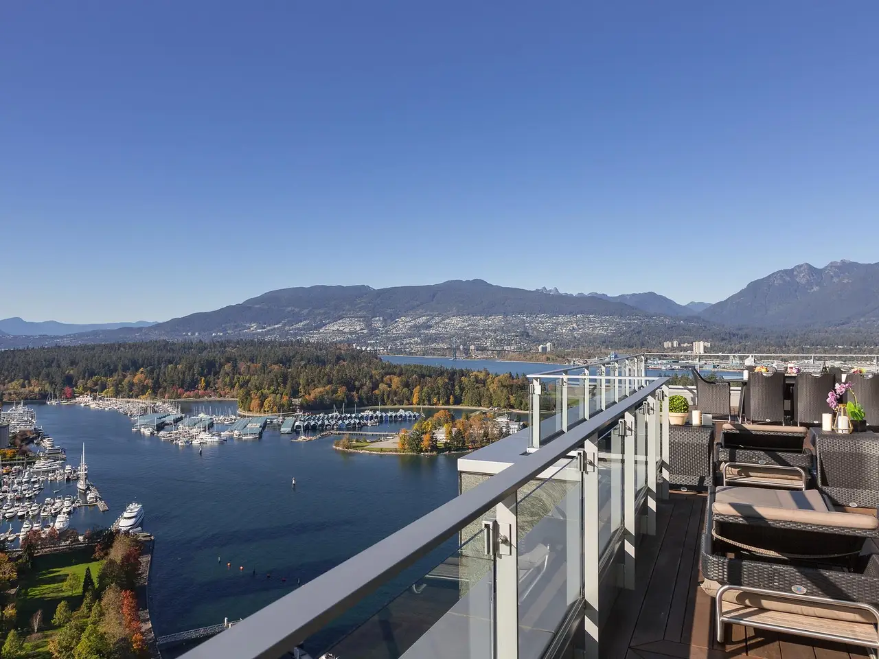 Canada's most prestigious oceanfront penthouse at Three Harbour Green—an entire full-floor residence spanning nearly 13,000 sf of combined living space, perched atop the city's most exclusive & private, 100% residential tower with just 79 suites. W/ 8,009 sf indoors & 4,840 sf outdoor space, incl a 2,500-sf Zen garden & a 2,000 sf patio w Brazilian cedar floors - this home is a masterpiece. Entirely redesigned & upgraded in 2016 by renowned House of Bohn, this unparalleled residence pays tribute to the surrounding vistas, mirroring the landscape w/ understated West Coast flair: 20' ceilings, 360° ocean, mountain & city views, custom millwork, luxurious European finishes. 7-car private garage+3 storage rms. Resort-style amenities: 24/7 concierge, 25' pool, squash court, guest suite & more.