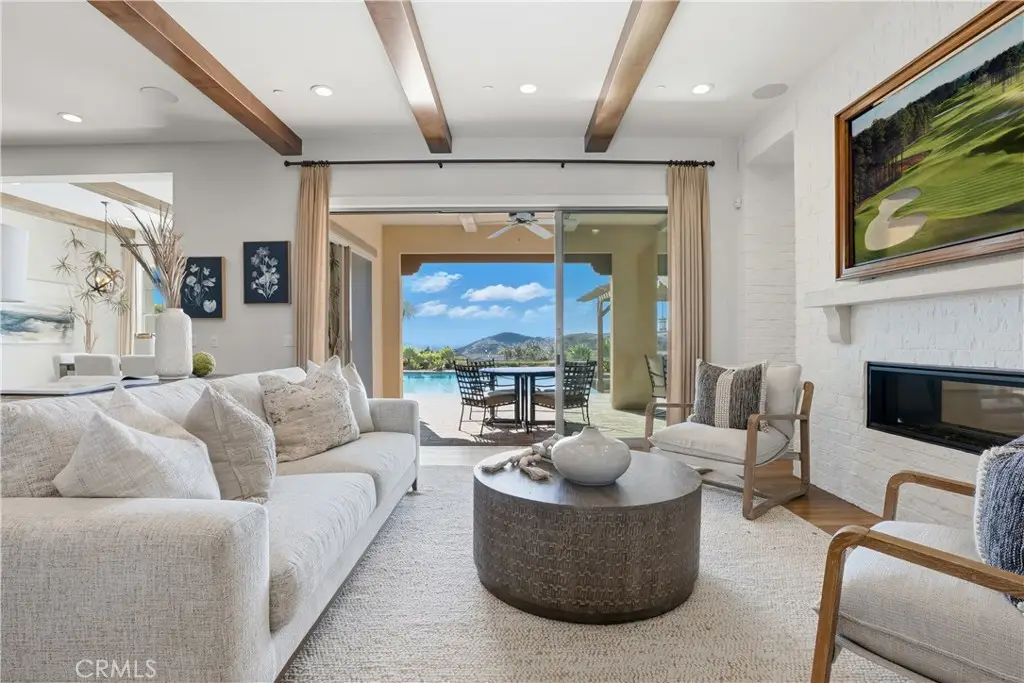 Looking for a pool VIEW home in Aubergine, right here in the award-winning community of Rancho Mission Viejo? This one's a gem, tucked on one of the quietest view streets in RMV, where ocean breezes roll in every afternoon. It's the kind of spot that reminds you why life in RMV feels like a staycation every day. This former MODEL HOME defines resort style living at its finest and is set on an 8,379 sq ft ideal lot. This professionally designed Adobe Ranch style model home showcases high-end craftsmanship and resort-style living in the heart of Rancho Mission Viejo. Featuring 4 bedrooms, 4.5 baths, a private office, and an upstairs loft, this residence blends sophistication with everyday comfort. Step inside to a grand entry with a sweeping iron staircase that sets the tone for elegance throughout. The chef's kitchen impresses with a large kitchen island, walk-in pantry, custom maple shaker cabinetry, stainless steel appliances, upgraded quartz countertops, and a designer tile backsplash. The kitchen flows seamlessly into the spacious great room with fireplace and formal dining area, creating the perfect space for hosting and gathering. Upstairs, each bedroom features its own en-suite bath, while the primary suite offers a true retreat complete with a spa-inspired bath, expansive walk-in closet, and a private balcony overlooking ocean-facing sunsets toward Dana Point. Designed for the ultimate indoor-outdoor lifestyle, stacking glass doors open to an expansive California Room with fireplace and TV, extending to a private backyard oasis featuring a great size pool, sunken fire pit lounge, and panoramic quiet views. Every inch of this Tri Pointe model home is enhanced with designer upgrades, thoughtful details, and curated finishes offering a rare opportunity to own one of Rancho Mission Viejo's most coveted showcase properties. The interior of the home was just painted as well as new carpet upstairs. Exclusive to Rancho Mission Viejo residents are all amenities in the Villages of Sendero, Esencia, Rienda, and future Villages. There are community amenities for all from breath-taking resort-style pools and spas, Esencia school K-8, community farms, fitness centers, guest house, putting green, bocce ball courts, tennis and pickle ball courts, playgrounds, coffee shop, fire pits, an arcade and so much more!