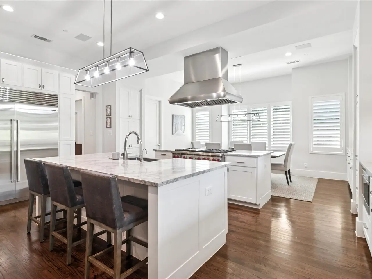 Experience modern living in this contemporary residence, tucked inside one of North Dallas' few private gated communities. Perfectly situated off Forest Lane between Hillcrest and Preston Road, 11825 Green Knoll Dr. offers sleek architectural lines, a timeless neutral palette, and a thoughtful floor plan that blends beauty with functionality. The inviting, low-maintenance outdoor space is designed for year-round enjoyment with a covered patio, fireplace, motorized retractable screens, and seamless indoor-outdoor flow. Inside, the gourmet chefs kitchen impresses with dual islands, a Wolf 6-burner gas cooktop, Sub-Zero built-in refrigerator, designer marble countertops, and abundant custom cabinetry. A spacious butler's pantry expands the possibilities with additional storage, serving space and room for a custom coffee bar. The open-concept living area features a wet bar, wine cooler, beverage fridge and a 2025 nugget ice machineperfect for entertaining. A flexible formal dining room or office, currently used as a music room, is enhanced with custom sliding privacy doors. The luxurious primary suite overlooks the backyard oasis and includes a spa-inspired bath with a soaking tub, expansive shower, and dual vanities. A second ensuite bedroom downstairs provides comfort for guests, while two additional upstairs bedrooms with ensuites flank a large game room for versatile living. Notable upgrades include: whole-home generator, plantation shutters and professionally designed $100,000 AV system with Sonos multi-zone audio, ceiling speakers, dual TV feeds, security cameras, backup time-controlled interior lights, and high-performance internet firewall. All just minutes from NorthPark Center, The Galleria, and Dallass top private schools, this residence delivers the perfect blend of lifestyle, location, and community.