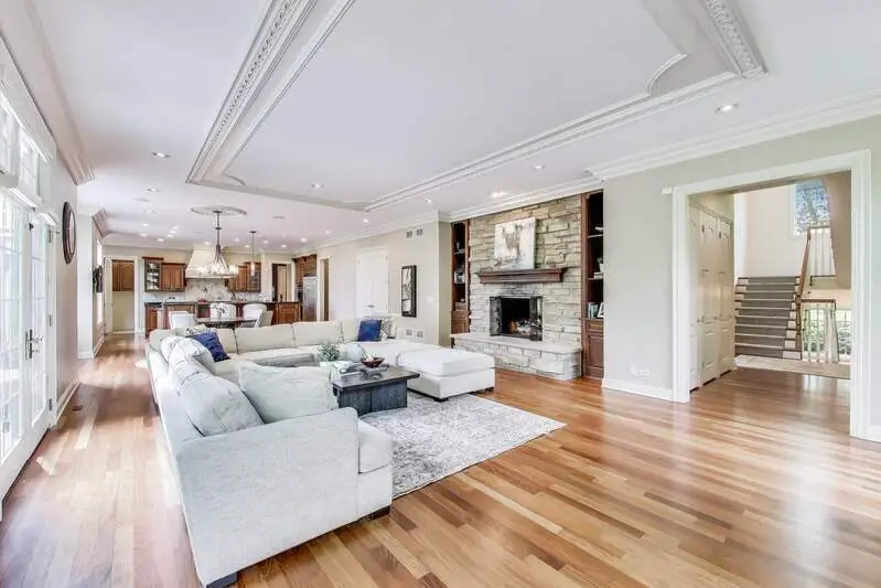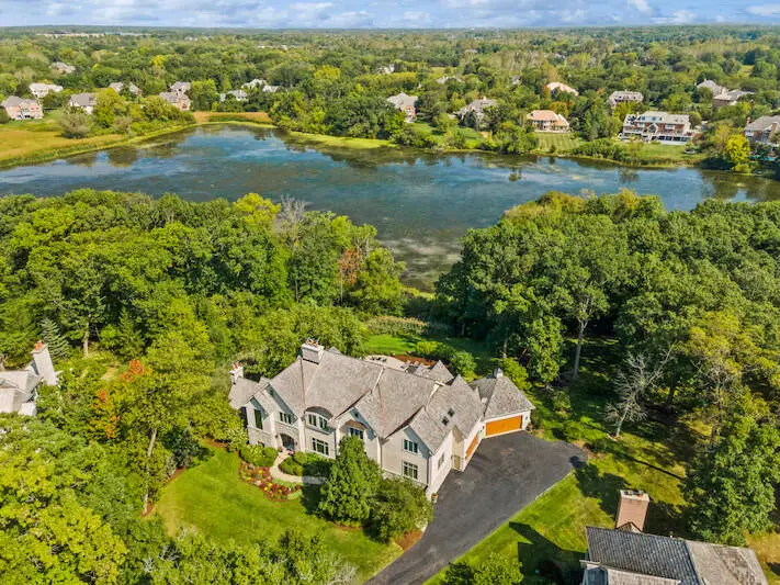 Nestled within the prestigious Tall Oaks Of Kildeer community, this exquisite home graces one of its most breathtaking lots, spanning 1.3 acres on a quite cul-de-sac, boasting captivating views of the 35-acre lake. Crafted with meticulous attention to detail, this custom residence exudes elegance and sophistication, sure to captivate even the most discerning buyers. Step through the grand foyer, where a double-sided stone fireplace sets the tone for luxurious living. The seamless flow leads to inviting spaces for both formal gatherings and casual entertainment, including a sitting area and a formal dining space complemented by a convenient butler's pantry. The heart of the home unfolds into an expansive kitchen and family room area, offering views of the lake and mature trees. A chef's delight, the gourmet kitchen features stainless-steel appliances, dual sinks, a generous island space, breakfast bar, and a spacious walk-in pantry. Adjacent, the inviting family room invites relaxation with its cozy fireplace and seamless access to the outdoor area, complete with new Trex decking and exterior lighting. The main level further boasts a screened-in porch, a wood-paneled office with a fireplace, a versatile craft room, a mud/laundry room, back staircase, and 1.5 baths. Retreat to the second level, adorned with all-new flooring, the primary suite features a private balcony, his-and-her walk-in closets, and a spa-like bath featuring double sinks, a Jacuzzi tub, separate shower, and heated floors. Four additional bedrooms, two with en-suites and two sharing a Jack & Jill bathroom. The walk-out basement, with all-new flooring, presents the perfect setting for indoor-outdoor living, boasting a recreation room with fireplace, wet bar, workout room, theater room, bedroom, and 1.5 baths. Outside, the stunning backyard is a entertainer's paradise, featuring an in-ground pool with spa, sun-filled deck, and shaded patio, all overlooking picturesque views. Completing this exceptional residence is an oversized 4.5-car garage, catering to all your storage needs. With numerous updates including new HVAC systems, water filtration system, decking, flooring, and more. Ideally located close to Deer Park and historic downtown Long Grove. Easy access to shopping, dining, major highways, A+ schools, and Stevenson High School.