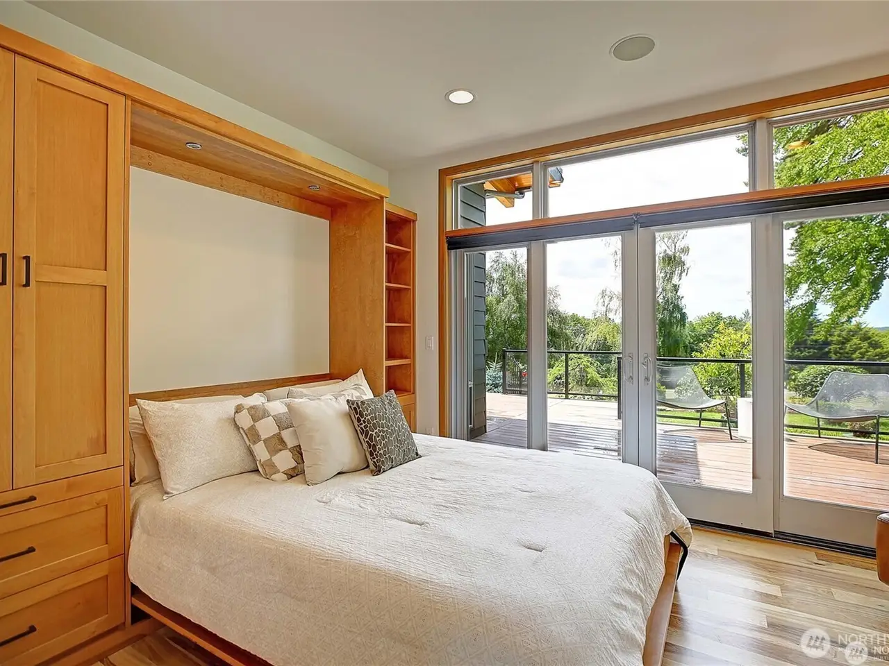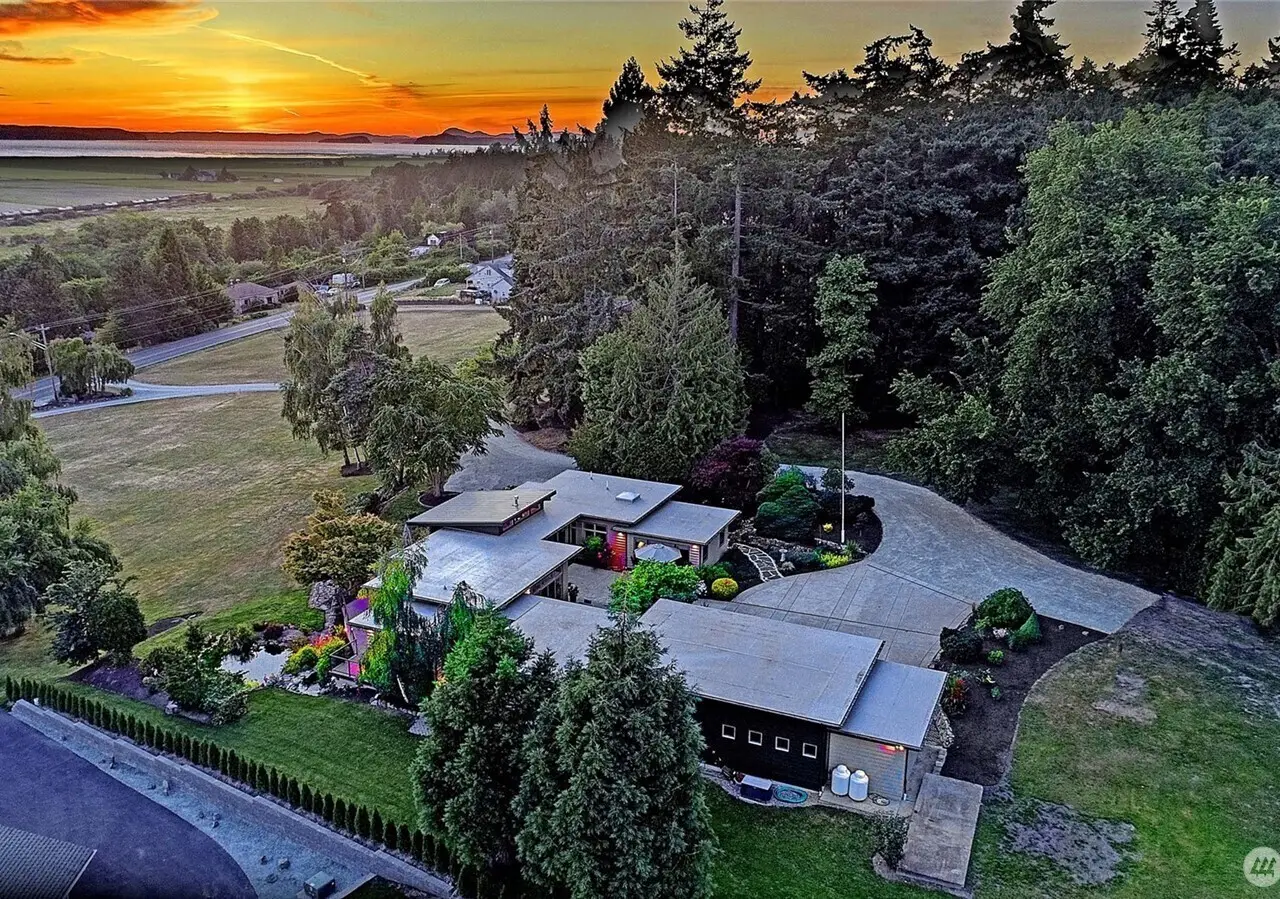 Exquisite Mid-Century style home on 6.4 beautiful acres with evergreens and trails throughout. Views of the Olympics, Sound, City, Sunsets, and Valley. Six parcels within the city limits. Drive up to your finished four-car garage and walk through a gorgeous courtyard into your own piece of paradise. Beautiful open kitchen with large island. Stainless high-end appliances. Adjoining is your dining area with lots of built-ins. TV room, with adjoining office. Huge deck the width of the house. Large living room with steel fireplace. Secondary bedroom, 3/4 bath, machine room and guest closet are steps away. Spacious primary suite with updated bath and walk-in closet. Detached studio guest room with beautiful granite counters and 3/4 bath. Green Built!