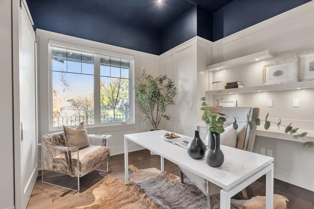 A rare offering on Britannia Drive, this exquisite estate captures the essence of modern luxury with over 4,600 square feet above grade of thoughtfully designed living space. Every element has been curated with precision—from its statement steel entry door to the seamless flow of sun-filled interiors overlooking the south backyard. The main level blends warmth and sophistication through its open design and natural textures. Expansive windows flood the home with light, highlighting brushed cashmere hardwood floors, exposed timber accents, and rich custom millwork. The kitchen is a showpiece in both style and function, featuring professional-grade appliances, Caesarstone countertops, an oversized island, and a butler’s pantry with stand-up freezer. The adjoining dining and great room, framed by a gas fireplace, invite effortless entertaining and relaxed everyday living. A well-appointed main-floor office with built-ins provides privacy and focus. The second level is dedicated to rest and retreat. The primary suite features dual walk-in closets, a spa-inspired ensuite with steam shower and freestanding tub, and a private balcony that welcomes morning light. Two additional bedrooms—each with ensuite baths and custom walk-in closets—offer comfort and independence. A bonus room with a gas fireplace opens to a front balcony with downtown views, while an additional flex space adapts perfectly to a home office, playroom, or study nook. The third floor is an adaptable hideaway ideal for guests, teens, or a media lounge, complete with a built-in bar and Murphy bed desk. The fully developed lower level enhances the home’s entertaining appeal, offering heated concrete floors, a glass-enclosed wine cellar, a wet bar, and an expansive recreation area. A self-contained suite with kitchen, laundry, and full bath provides private accommodation for a nanny, extended family, or guests. Outdoors, the south-facing backyard is designed for easy enjoyment with multi-level decks and newly added turf—perfect for low-maintenance living. Car enthusiasts will appreciate the heated, oversized triple garage with capacity for up to five vehicles when equipped with lifts, offering ample space for storage and collection. Additional features include three fireplaces, concrete stair treads, 9- and 10-ft ceilings, a hidden loft above the laundry room, and exceptional built-ins throughout. Perfectly positioned near the Elbow River pathways, The Glencoe Club, Calgary Golf & Country Club, top schools, and downtown’s finest amenities, this Britannia Drive residence offers an extraordinary lifestyle in one of Calgary’s most distinguished settings.