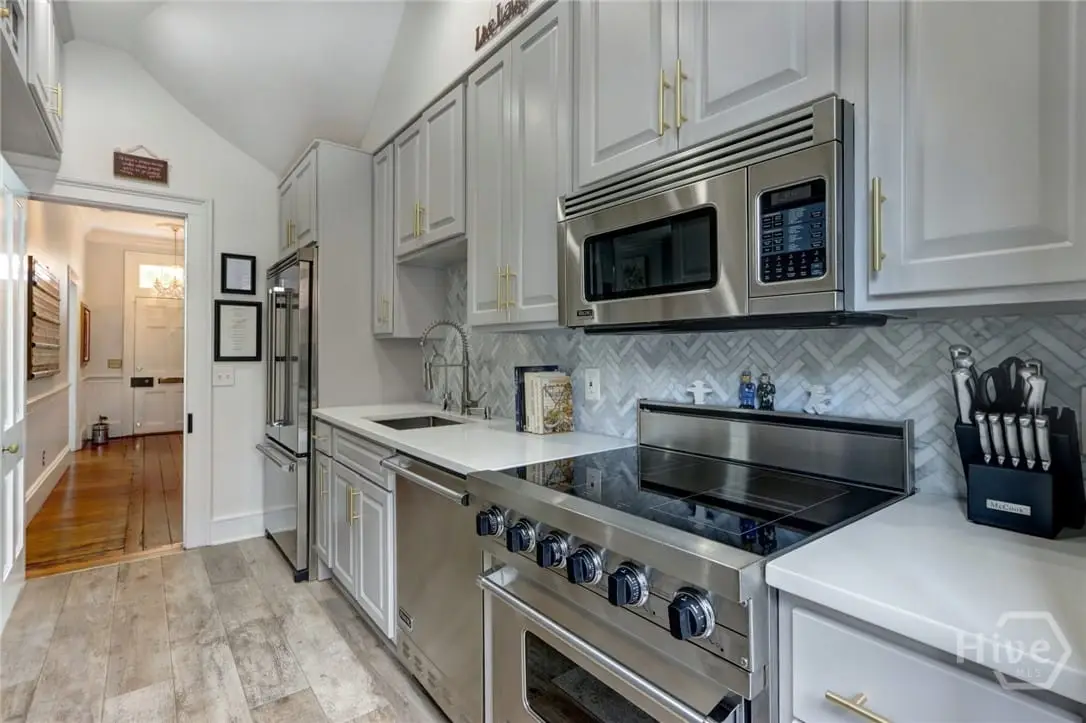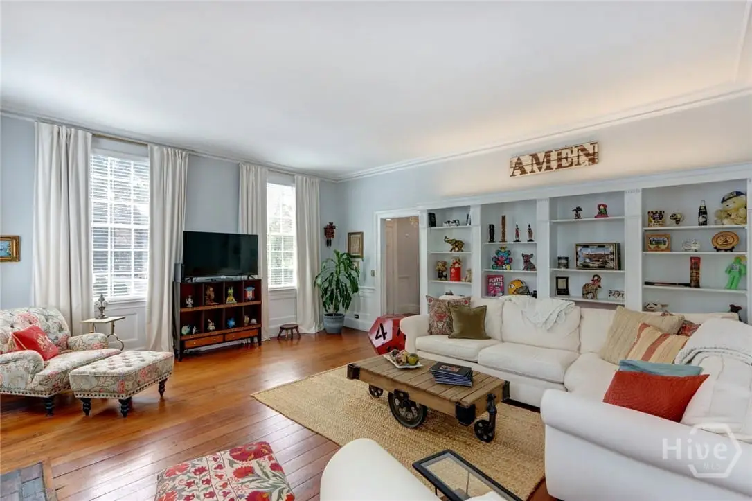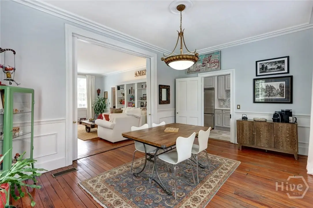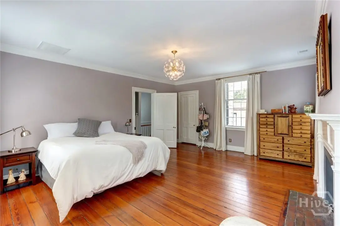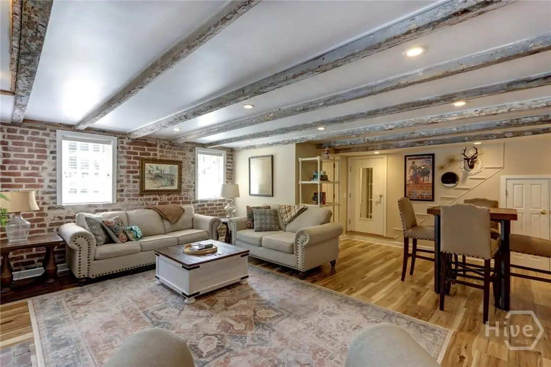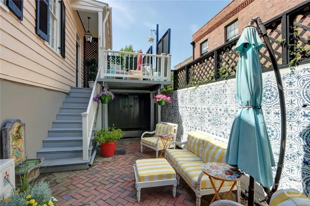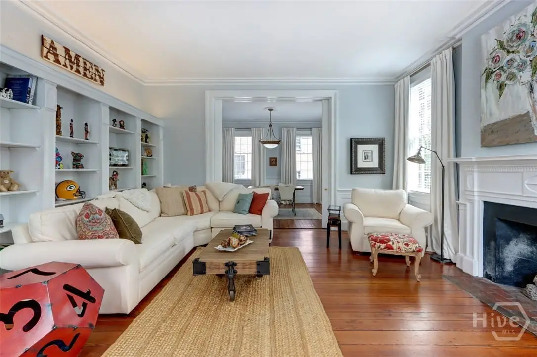 Experience Savannah charm at its finest in this meticulously maintained c.1806 historic home overlooking iconic Warren Square. Located in the heart of the Landmark Historic District, this residence seamlessly blends early 19th-century craftsmanship with refined modern updates. Soaring ceilings, abundant natural light, and original heart pine floors set the tone for gracious living, while the beautifully renovated chef's kitchen boasts premium appliances, custom cabinetry, and elegant stone countertops. Enjoy flexible living with a fully equipped garden-level apartment featuring a private entranceideal for guests or use as a licensed Short-Term Vacation Rental. Step outside to a serene, walled courtyard -- your own private retreat in the city. Stunning unparalleled views of Warren Square, walkability to shopping, dining, and River Street are a treat! Don't miss the chance to own a piece of Savannah's history with all the luxuries of modern living.