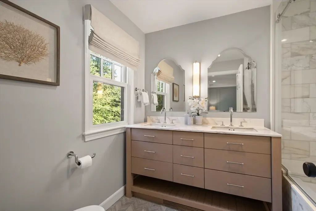 Don't mistake this home for a "Classic Colonial"; this property has been completely transformed inside and out through a meticulous and custom renovation. The result is a stunning residence featuring warm woods, crisp whites, and coastal hues. The entire property feels like a Shangri-La, set in a peaceful and welcoming neighborhood. Key features include a one-acre parcel, four-bay garage with EV charger, 5 bedrooms on the upper level, along with a guest suite on the first floor that includes a full bath and a walk-in closet. YouÆll also find 2 laundry rooms, 2 walk-in pantries, 2 dishwashers, and a large mudroom, among many other incredible amenities. Entertain friends and family in your own paradise, complete with an inground heated swimming pool, hot tub, fire pit, outdoor kitchen plumbed with a 36" gas grill and a built-in Big Green Egg! Plus, you'll have plenty of space for outdoor activities in your expansive yard! There's nothing to do here but move right in. A remarkable home!