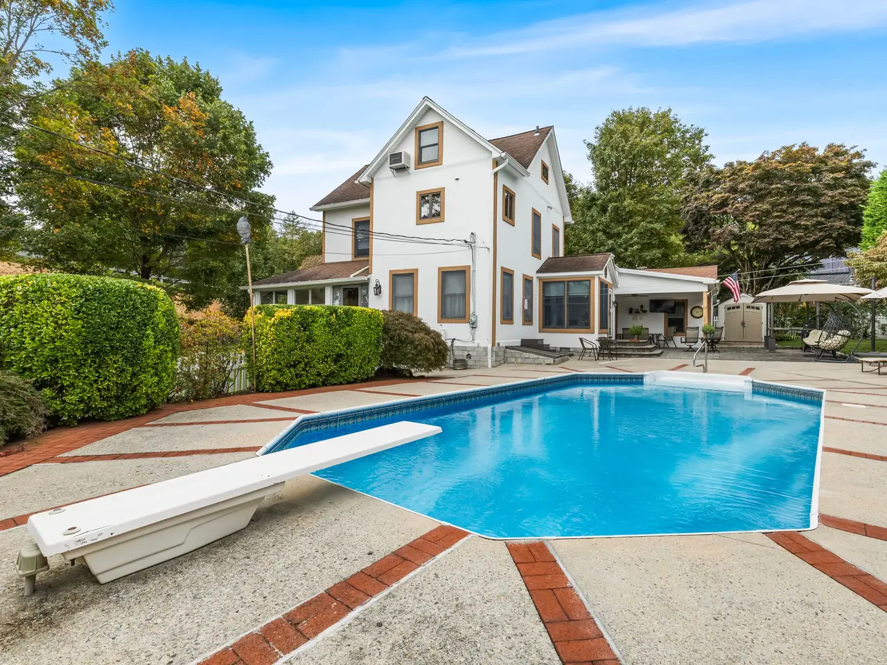 Set on a beautifully landscaped .34-acre property, this gracious three bedroom, two-and-a-half bath Colonial offers the perfect balance of classic design, modern comfort, and exceptional outdoor living. Ideally located in the sought after Rivertown of Hastings-on-Hudson, this move in ready residence invites effortless living just 35-minutes north of New York City via Metro North. Inside, light-filled interiors flow harmoniously from one space to the next. The eat-in Kitchen provides an inviting setting for daily meals, while the formal Dining Room sets the stage for memorable gatherings. A sun-drenched enclosed porch off of the expansive Living Room opens to the homes private outdoor oasis complete with a beautiful in-ground pool, covered patio with outdoor TV area, and multiple seating areas for lounging and entertaining. The second level features two spacious Bedrooms, a full Bathroom with a large vanity and dedicated make-up area. The top level is dedicated to the expansive Primary Bedroom suite, offering the perfect opportunity to create a serene, personalized retreat. The suite boasts an en-suite Bathroom, a generously sized sleeping area that easily accommodates a king sized bed, a separate sitting or work space, vaulted ceilings with skylights throughout and ample closet space. Additional highlights include a separate two-car Garage, well-proportioned living spaces, and beautifully maintained grounds that enhance the homes sense of calm and privacy. Enjoy the best of Rivertown living with top-rated Hastings-on-Hudson schools, vibrant local culture, and the Hudson Rivers natural beauty, all just moments from your doorstep. A rare offering where timeless design and modern comfort come together in one of Westchesters most coveted communities!