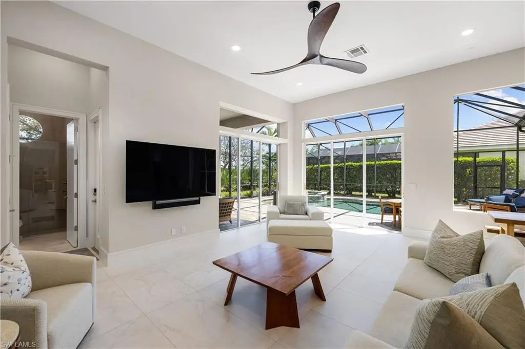 This fully renovated custom residence presents a rare combination of timeless design, modern technology, and a strategic layout where each space has been optimized for flow, function, and everyday ease of use. From the moment you enter, you are greeted by a light-filled open concept floor plan that is perfect for entertaining friends and loved ones. Italian porcelain tile, solid wood doors, LED lighting with Lutron CasTta smart switches, and a stunning selection of high-end finishes set the tone for a home that blends elegance with efficiency. At the heart of the home, the natural gas chefÆs kitchen showcases a floor to ceiling design with a five-foot Galley workstation and dual Brizo SmartTouch faucets with instant hot and filtered water dispensers. Monogram appliances throughout include a 48-inch professional series gas cooktop with six burners, griddle and wall mounted pot filler, double French door convection ovens, a 48-inch paneled refrigerator, wine cooler, and drawer microwave. A Bosch SuperSilence dishwasher, Blum hardware, Silestone Calacatta Gold quartz, and a striking waterfall island elevate the space, while a beverage station with Kraus sink and Brizo Kitchen Bar faucet and a built-in pet feeding station with Brizo wall mounted pot filler make this the ultimate dream kitchen for your and your fur family. The spacious ownerÆs suite is a private retreat with dual custom closets, Caesarstone mitered edge countertops, Sietto cabinet hardware, a waterfall shower with niche, LED lit mirrors, storage pull outs with hidden outlets, and a soaking tub. The two guest ensuite bedrooms, including a flex room with Murphy beds, are finished with floating vanities, quartz and quartzite counters, custom lighting, and new cabinets and tile. The laundry and office have also been enhanced with quartz counters, under cabinet LED lighting, engineered hardwood flooring, and plantation shutters. Outdoor living includes an extended lanai with summer kitchen, natural gas TEC infrared grill, outdoor shower, and a saltwater pool with Hayward Aqualogic automation, and a spa-inspired pool bath. The three car garage features epoxy floors, Premier cabinetry, and overhead storage. Enjoy peace of mind with a discounted TRANSFERABLE FLOOD POLICY, brand-new tile roof installed in 2024, thirty-five solar panels with Enphase microinverters, a Navien tankless natural gas water heater, new IPEX plumbing and CAT 6 wiring, and a private irrigation well for landscaping. West Bay Club provides an amenity rich lifestyle for all residents including a newly built Gulf front Beach Club with restaurant and towel service, the renovated Bay House with resort style pool and state of the art fitness center, a River Park with boat launch, fishing pier and kayaks, six pickleball courts, eight Har-Tru tennis courts, bocce, two dog parks, and optional membership in a private Troon« managed championship 18 hole Pete Dye golf course.