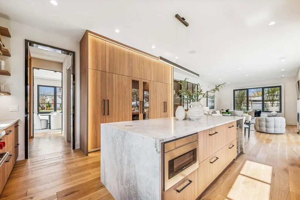 In Elmhurst's coveted Cherry Farm enclave, where tree-lined streets meet architectural artistry, a new chapter of luxury living unfolds at 377 S. Prairie Avenue. This 5,700-square-foot custom home by Bloomfield Development was designed for those who value beauty, substance, and connection-a residence where every detail feels intentional and every space invites you to live effortlessly. With seven bedrooms and six-and-a-half baths, it's a home that blends modern elegance with timeless warmth, crafted for gatherings that flow as easily as quiet mornings in the sunlight. Bathed in natural light from charcoal-framed European casement windows, the interior reveals 5-inch white oak flooring, glass-and-metal staircase dividers, and layers of custom millwork that speak to Bloomfield's meticulous craftsmanship. At the heart of the home, the chef's kitchen pairs Taj Mahal quartz countertops with waterfall edges and custom Bloomfield-designed walnut cabinetry with a Sub-Zero, Wolf, and Cove appliance suite. A striking matte-black range hood trimmed in polished gold creates a sculptural focal point, while the butler's pantry with wet bar adds hidden functionality for seamless entertaining. The kitchen flows effortlessly into the formal dining room and a living area centered on a custom stone fireplace-spaces designed for both celebration and calm. A private main-level bedroom suite offers flexibility as a guest retreat or home office, blending convenience with privacy-a thoughtful touch that adapts beautifully to changing needs. A powder room nearby serves guests during gatherings, adding convenience without interrupting the home's flow. The second level offers five spacious bedrooms, each with ensuite baths and walk-in closets, creating a rare sense of harmony and privacy throughout. The primary suite is a true sanctuary, showcasing a paneled accent wall, two expansive walk-in closets, and a spa-inspired bath with heated floors. A second-floor laundry room adds practical ease to daily life without compromising the home's refined rhythm. Downstairs, the radiant-heated lower level expands the living experience with a recreation lounge, exercise studio, and sleek wet bar with a modern wine cellar. A bedroom with a large walk-in closet completes the space-perfect for an additional guest suite, media room, or creative retreat. Every square foot was intentionally designed to deliver both comfort and versatility. Outside, bluestone pathways and professional landscaping frame a large fenced yard, ideal for outdoor entertaining or relaxed evenings under the stars. A heated three-car garage, whole-home audio pre-wiring, and energy-efficient mechanical systems complete the home's blend of innovation and timeless design. Recognized by Architectural Digest, Luxe Magazine, and Bravo TV, Bloomfield Development is celebrated for creating homes that combine enduring quality with striking beauty-a reputation built on over two decades of craftsmanship and integrity. Every detail at 377 S. Prairie Avenue was imagined for those who expect more-more light, more luxury, more connection. A custom home that's as functional as it is beautiful, ready to welcome its first chapter of modern Elmhurst living.