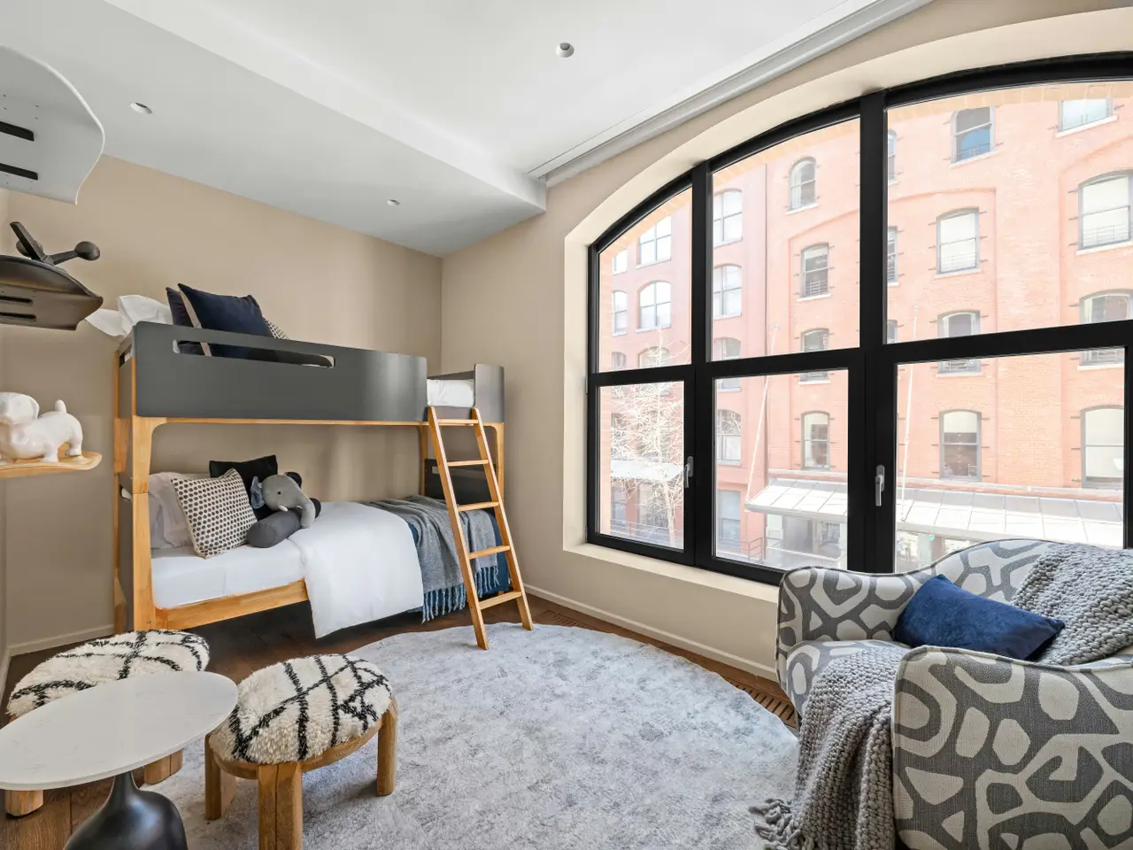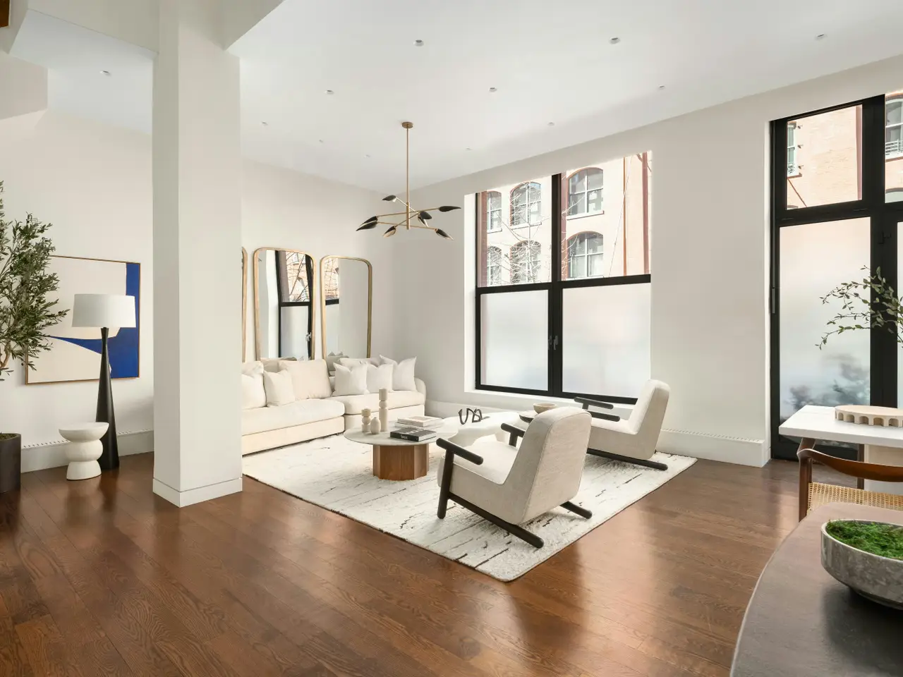 This expansive 3,300 SF townhouse offers a rare blend of privacy, space, and modern luxury in the heart of North Tribeca. With five bedrooms, five bathrooms, and a private 630 SF patio, the home is thoughtfully designed across three levels. Enter through a private Washington Street entrance or the 24-hour attended condo lobby. The main level features a dramatic 41-foot-long great room with soaring ceilings, ideal for entertaining and displaying art. The open-concept kitchen is equipped with premium appliances and generous storage. Two well-proportioned bedrooms overlooking the private garden, and two full baths complete this floor. Upstairs, the secluded primary suite offers a peaceful retreat with a spa-like en-suite bath and a windowed walk-in closet. The lower level serves as a versatile media room or guest suite, featuring a Murphy bed, full bath, built-in wine storage, and direct access to the landscaped two-level terrace. Designed for seamless indoor-outdoor living, the terrace includes a gazebo, lush plantings, and outdoor furnishings, including a built-in banquet and a dining table for ten. Set on a quiet cobblestone street, The Fairchild is a boutique condominium with a full-time doorman, private storage, and bike storage. Just one block from Hudson River Park and moments from top restaurants and the Fouquet Hotel, this home offers the best of townhouse-style living with the convenience of a full-service building.
