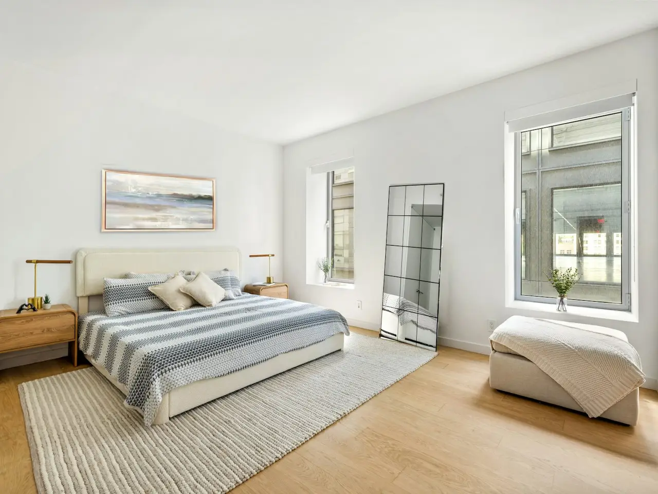 Welcome to One York, seamlessly located at the crossroads of Tribeca, Soho and Hudson Square! Your 1530sf well-proportioned 2 bedroom, 2 bathroom home, with 9'6" ceilings is flooded with natural light and await ing its " new owners! Enter into an extra wide foyer with ample closet space for coats and storage. Continue down a gallery-worthy hall to your corner living/dining room boasting 6 oversized North and West facing widows illuminating wide open city and sky views! A large inviting kitchen anchors the room providing luxury features including sleek white Valcucine Vitrum full glass kitchen cabinetry and a top appliance package with Miele, Bosch and Sub-Zero. A glass-topped center Island with loads of additional storage will undoubtedly be where everyone gathers. The expansive primary bedroom offers enough room for a king bed with side tables and an additional siting/lounging area or home office, 2 California closets (one a walk-in) and an XL 5-piece bathroom complete with Calacatta Gold marble floors and teak double sink vanity. The large second bedroom can also fit a king bed and has plenty of open space to add additional pieces of furniture/seating/desk if needed. The second bathroom with glass-enclosed step-in shower, clear glass tiles and grey stone floors sits just across the hall from the second bedroom with ease of access for guests as well. Mafi Austrian wide plank oak floors, a washer dryer and a 50sf private temperature-controlled storage unit wrap up this stunning home into a perfect offering. Designed by renowned architect Enrique Norten, One York is a timeless and beautifully amenitized boutique CONDO has only 33 units. Full-time doorman, 24-hour onsite concierge, full-time resident manager and porter are there to assist in the day to day conveniences. A 28" outdoor heated POOL, 2,200sf of sundeck with outdoor shower and a private health club and fully automated Swiss-engineered garage provide for a well-rounded and super comfortable living experience. Close to every subway line along Canal street and easily accessible to TONS of incredible dining and shopping opportunities. This is the one you've been waiting for!