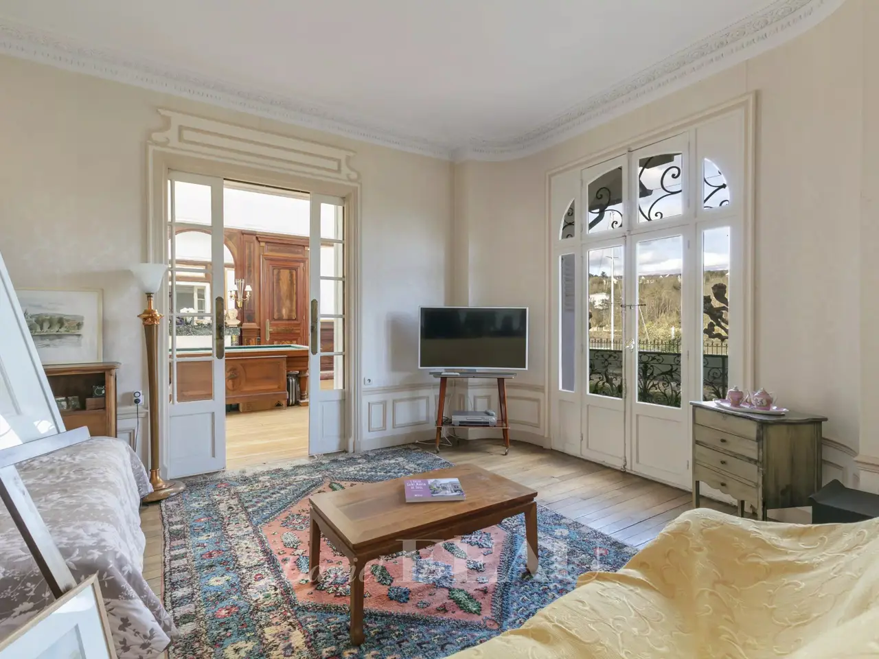 This elegant early 20th century villa with annexes is set in about 1.5 hectares of grounds. The main house includes a living/reception room and dining room with a fireplace, a kitchen, and a magnificent near 44 sqm billiard room featuring 5-metre high ceilings and mahogany panelling opening onto a terrace with a pergola. Upstairs are three bedrooms including a master, a bathroom and a separate wc. Three further bedrooms, a dressing room and a wc are on the 2nd floor. With a convertible attic. On a total basement with a good ceiling height. The caretaker’s lodge includes a living room, a kitchen/dining room, a bedroom with a fireplace, and a shower room/wc. A garage with a workshop includes a 2-room apartment to renovate and an attic. In a prime location enjoying a view of the Seine, the property oozes with period charm and features a tiled façade, wrought iron, mosaic floor tiles, parquet flooring, marble fireplaces, mouldings and stained glass. It is accessed by means of a peaceful cul-de-sac on the riverside. A 12-minute walk from the station, close to the schools including renowned Notre-Dame Les Oiseaux High School, 5 minutes from the nearest shops, and benefiting from easy motorway access.