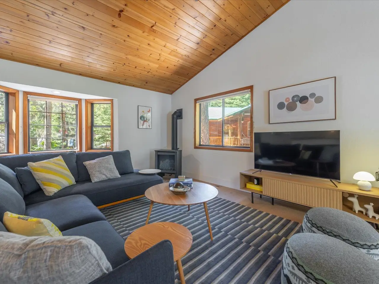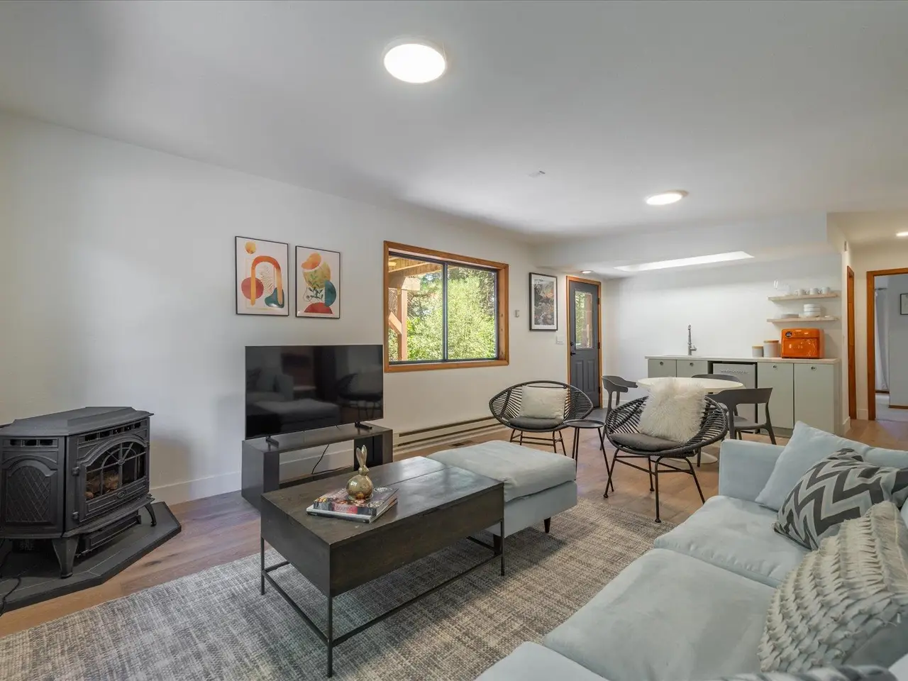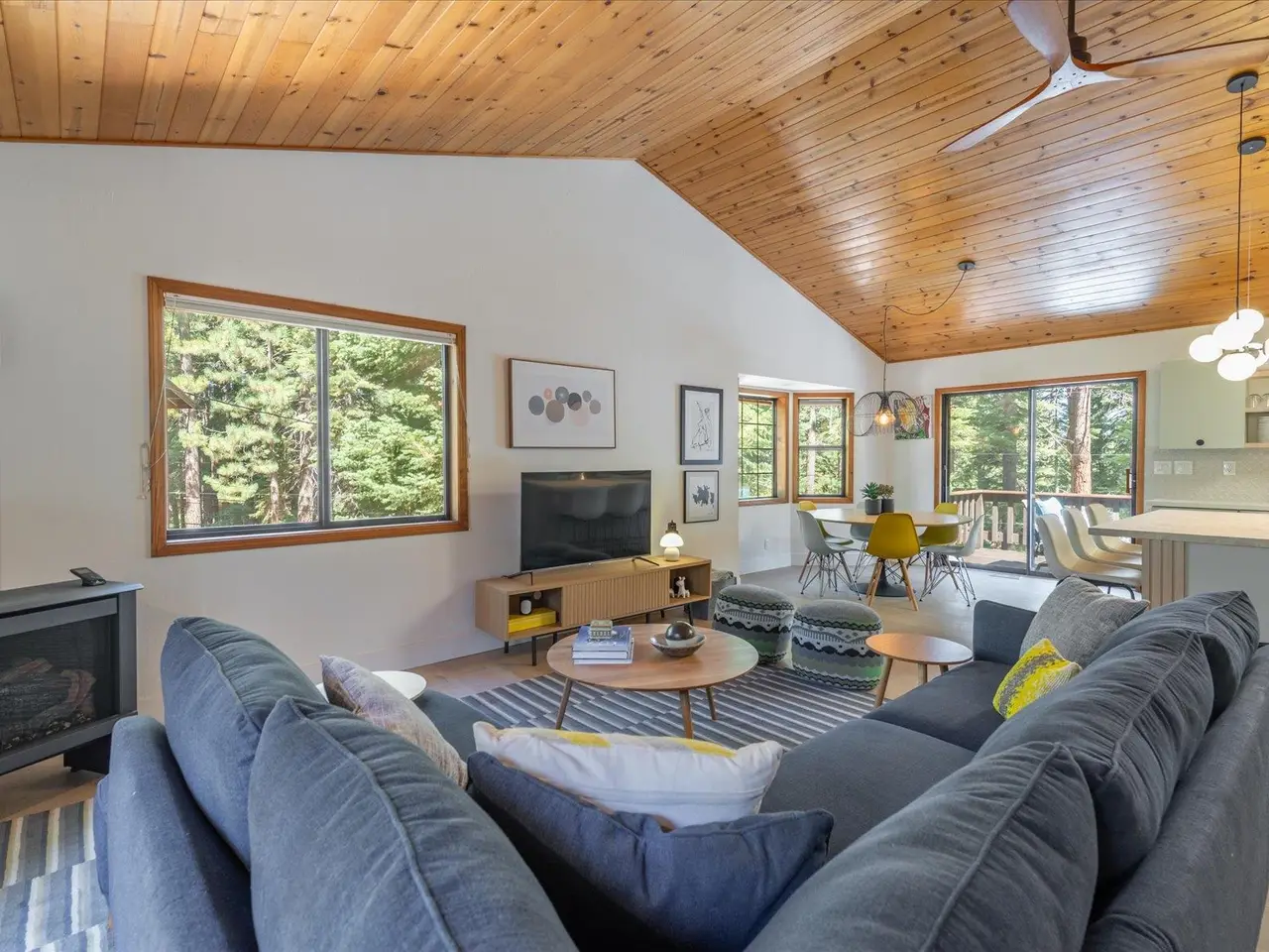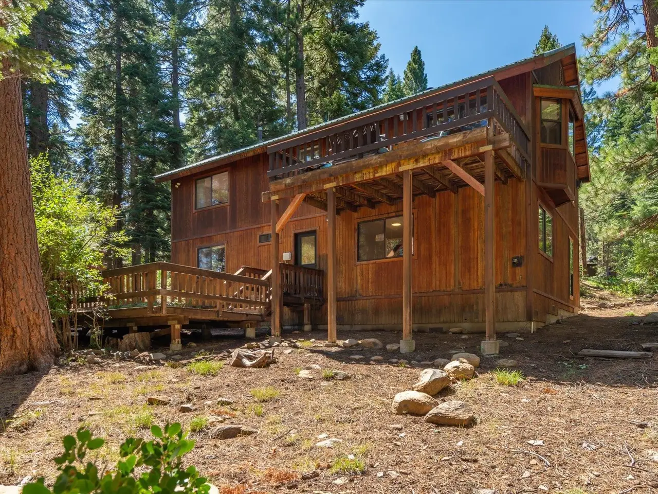 Nestled on a quiet cul-de-sac in the desirable Prosser Lakeview Estates, this beautiful 3-bedroom, 3-bath home with a two-car garage offers warmth, charm, and functionality. The south-facing driveway provides easy year-round access, while thoughtful design delivers both comfort and versatility with two inviting family rooms plus a bonus room, ideal for gatherings, work, or play. The main level showcases vaulted ceilings, bay windows, and an open flow to expansive decks, perfect for soaking in the sunshine or entertaining. Here you’ll also find the primary suite, a guest bedroom, and a second bath. The lower-level retreat includes a flexible family room with wet bar, an office/bonus room, and an additional guest bedroom and bathroom. Featuring new hardwood floors, modern kitchen and baths, newer appliances, furnace, and water heater, this home is move-in ready. With easy access to Prosser Reservoir, endless miles of trails, and the historic charm of downtown Truckee, this property is the perfect balance of recreation, relaxation, and community.