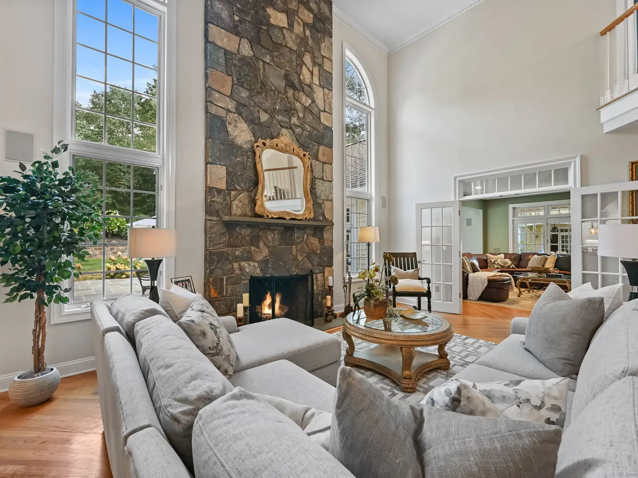 A showpiece Colonial in Trumbull's Prestigious Hidden Pond Estates conveniently located in the extremely sought after Nichols section of town, close to schools, parks, shopping, restaurants, and highways. Set on 2.33 acres at the end of a cul-de-sac, this 14-rm, 6 bdrm, 7.5 bath residence offers 7,092 sq. ft. of finely crafted living that includes rounded walls & soaring ceilings. A 2-story foyer leads to formal living & dining rms w/custom millwork, bay windows, walls of glass, & French doors. The gourmet kitchen features quartz counters & backsplashes, Sub-Zero & high end appls, & a W/I pantry, while multiple family rooms showcase soaring ceilings, cherry built-ins, wet bar, & a dramatic 2-story wood burning natural stone FP. Complementing this centerpiece are 2 striking freestanding half-wall ambient fireplaces that anchor the LR & the master suite, blending modern design w/ luxurious ambiance. The renovated side entrance opens into a mudroom w/ custom built in hall trees & a laundry/dog spa w/a LG tower washer/dryer & pet shower. Each bath is prof designed w/ high-end tile, faucets, vanities, & stone counters. Lower level adds an addl 2000 sq ft of prof fin living space that includes a recreational room, gym, movie theater, billiards rm, & full ba/steam shower. Outside, enjoy a 19'x42' in ground heated pool, w/ a custom built pool house offering a kitchenette & a full bath, dressing room & storage, outdoor stone FP, 3000 square feet of bluestone patios, & specimen gardens Hidden Pond Estates is one of Trumbull's most Distinguished neighborhoods - a private enclave of just 21 homes thoughtfully designed w/ underground utilities & deed restrictions that preserved its elegance & character. Nestled on a quiet cul-de-sac in the extremely sought after Nichols section of town. From the bluestone walkway & covered front entry, guests step into a breathtaking 2-story foyer w/ sweeping staircase, custom designer tile, rounded walls, & crown moldings. The main level blends elegance & warmth w/ formal living & DR's, each graced w/ bay windows, custom millwork, & French doors leading to expansive patios & pool. The gourmet kit is a chef's delight w/ quartz counters & backsplashes, custom cabs, oversized island w/ prep sink, a Sub-Zero, pot filler, beverage chiller, warming drawer, & walk-in pantry. A wet bar-equipped FR w/ cherry built-ins & a sun-splashed 2-story great room anchored by a soaring natural stone FP. The renovated side entrance leads into a functional yet stylish mudroom, designed w/ 2 custom built in hall trees, decorative clapboard, butcher block seating, & cubbies. The laundry/mudroom doubles as a doggie salon - complete w/ a state-of-the-art LG W/D tower, porcelain sink, & a dedicated pet shower stall w/ handheld sprayer, a must for pet owners. Upstairs, the primary suite impresses w/ cathedral ceiling, & exquisite design. Through the French doors, the spa-like bath features a whirlpool tub w/wooded views, oversized walk-in shower, dual vanities, & makeup table. A private office & 2 walk-in closets, one being cedar w/custom built-ins, A 2nd laundry rm w/ granite counters & cabinetry adds convenience and completes this retreat. Addl bdrms include a guest suite w/ private ba, spacious Jack & Jill suites, & the 3rd-fl has 2 bdrms & a full bath. If the over 7092 sq. ft. upstairs wasn't enough we have the fin lower level offering over 2,000 sq. ft. of recreation including a movie theater, billiards, gym w/ designer-grade rubber flooring & a steam shower ba. Outdoors is a private Shangri-La over 3,000 sq. ft. of bluestone patios, a heated 19'x42' pool, pool house with full bath, handcrafted stone fireplace with double wood holder, extensive stone walls, & specimen plantings including magnificent Japanese maples. W/ 5-zone hydro heating, 4-zone C/A, C/V & a 3 car gar, this residence is as functional as it is elegant.