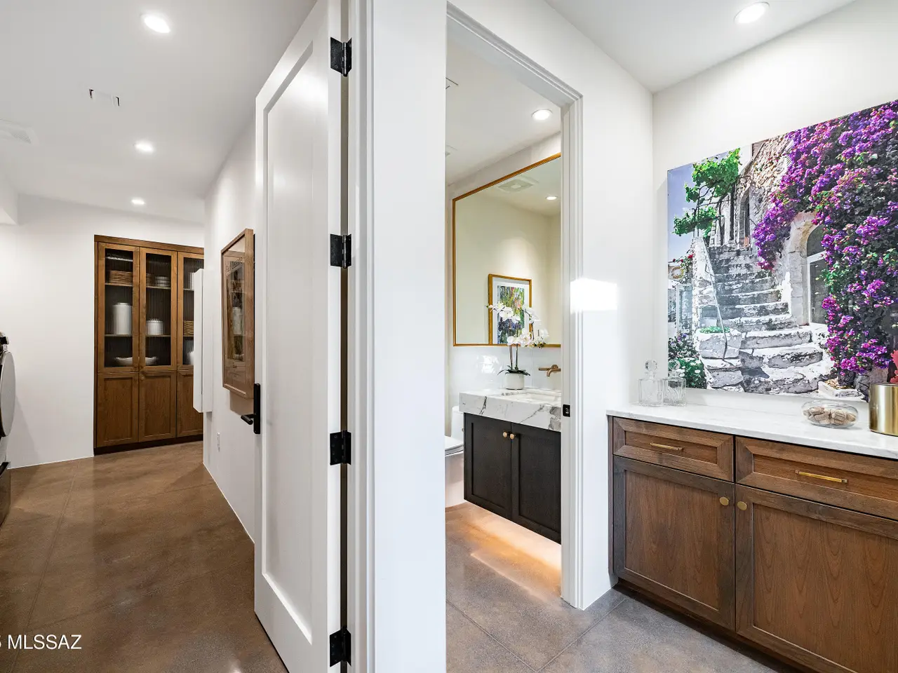 Quintana in the Catalina Foothills, Tucson's newest luxury, gated community is in the heart of the Catalina Foothills, located on the last premium 20 acre parcel in the central foothills with superior city and mountain views. Built with solid masonry perimeter wall construction and brick, designed by architect Michael Franks and La Quinta Building Company. This 3,421 sq ft , 3 bedroom, 3 1/2 bath Cassia Model home on .88 acres will be completed and ready for occupancy early to mid 2025 and includes paver driveway, lush brick front courtyard entry, hand forged wrought iron entry gate and patio railings, exterior hardscape, landscape and lighting, steel doors and windows with high efficiency dual glazed windowpanes, beamed ceiling, polished colored concrete floors throughout, smooth finishes.