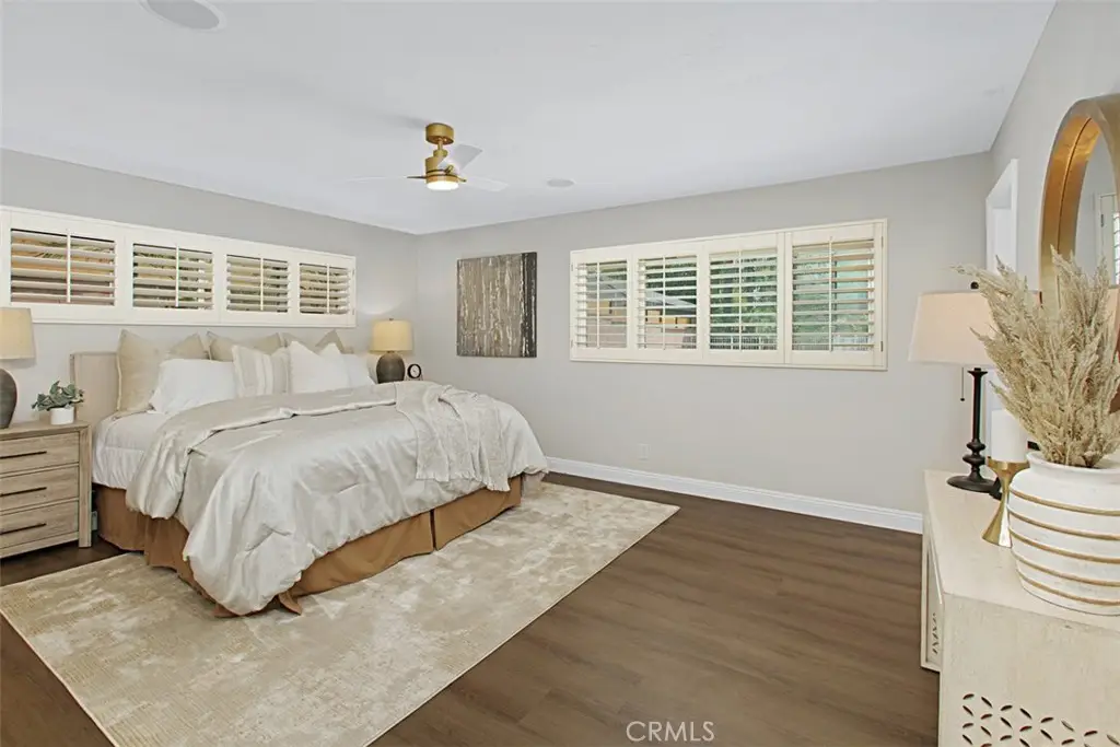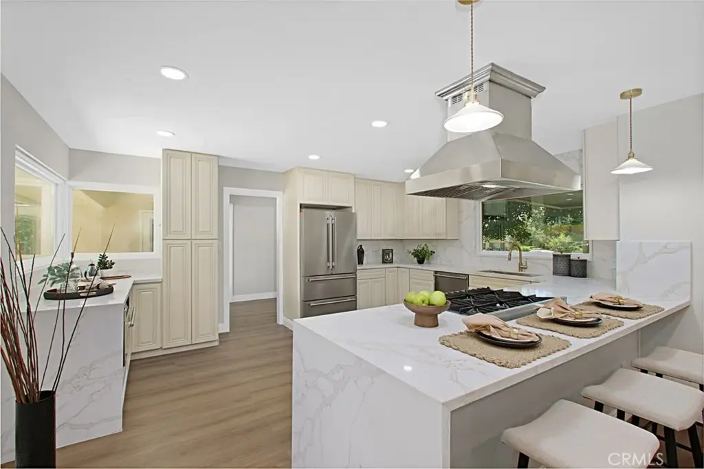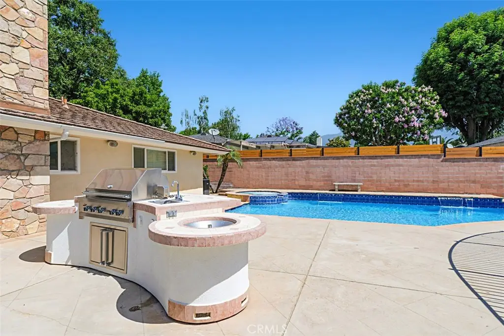 Must See! Fully Remodeled Pool Home -- Experience modern luxury in this stunning single-story estate, perfectly situated on a sprawling corner lot of over half an acre in one of Upland's most coveted neighborhoods. Behind a private gated entrance, this Turnkey residence offers 3 spacious bedrooms, 3 designer bathrooms, and 2,549 sq ft of impeccably curated living space--plus a 200 sq ft bonus room ideal for a home office, gym, or guest suite. Designed for effortless living and entertaining, the open-concept layout features a striking great room and separate living room both with elegant fireplaces, and a show-stopping HUGE chef's kitchen featuring custom cabinetry, soft-close drawers, bold waterfall-edge quartz countertops with large island, complete with bar seating area, flowing backsplash, statement pendant lighting, and high-end Formo appliances. Additional highlights include new water heater, A/C and Heater only 1 year old, and 5 year warranty on the roof. The primary suite is a true retreat, complete with dual His-and-Hers walk-in closets and a spa-inspired ensuite bath featuring a massive walk-in shower, dual-sink vanities, a soaking tub, and serene designer finishes. Generously sized secondary bedrooms include modern ceiling fans, while the guest bathroom offers its own walk-in shower, soaking tub, and dual vanity. Throughout the home, enjoy wide-plank luxury flooring, new baseboards, designer recessed lighting, dual-pane windows, and timeless plantation shutters. A premium surround sound system extends from the living spaces to the backyard, creating a seamless indoor-outdoor ambiance. Step outside to your private resort-style paradise--featuring a sparkling pool and spa, a built-in Viking BBQ area, and a tree lined walk way that leads the way to a stylish cabana lounge with ceiling fan for year round comfort. There is also a convenient poolside mudroom with a bathroom which has a walk-in shower and floating vanity. The finished three-car garage includes epoxy floors and ample built-in storage. The extended driveway offers space for multiple vehicles and even the potential for future RV parking. Every inch of this home has been thoughtfully reimagined to offer unmatched comfort, style, and sophistication in the heart of Upland. The interior stuns from the moment you walk in and the outdoor space is an entertainers dream perfect for creating memories with friends and family or quietly enjoying the private paradise.This home will go fast!