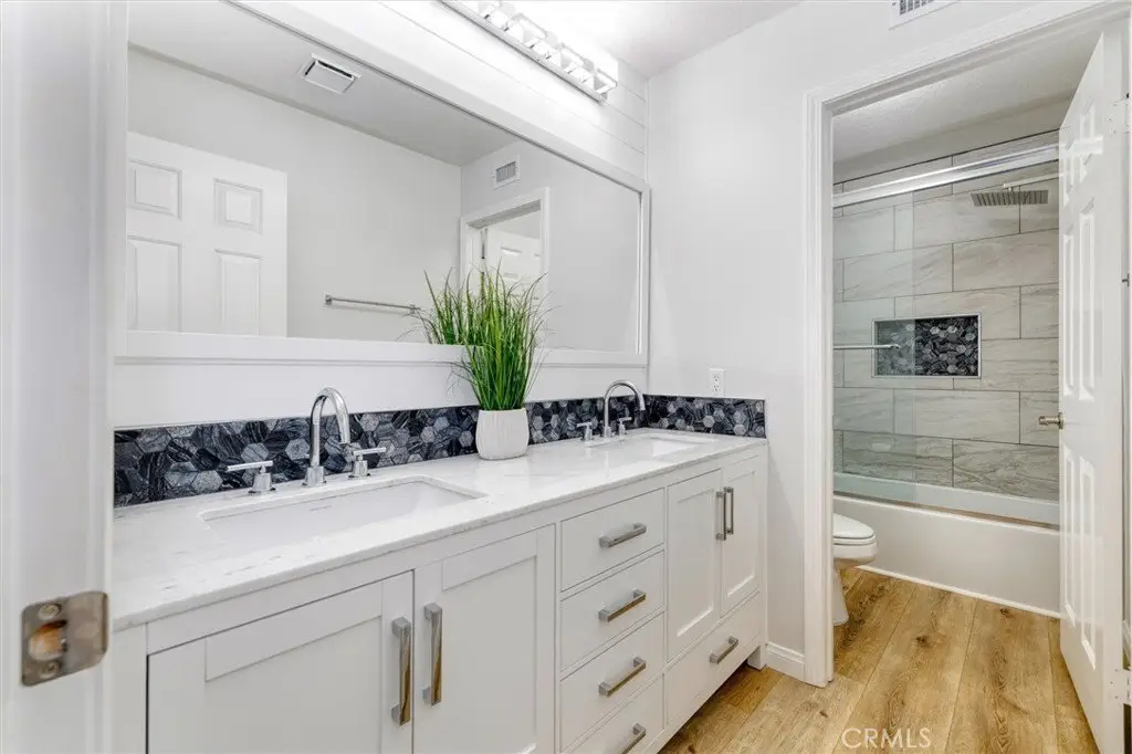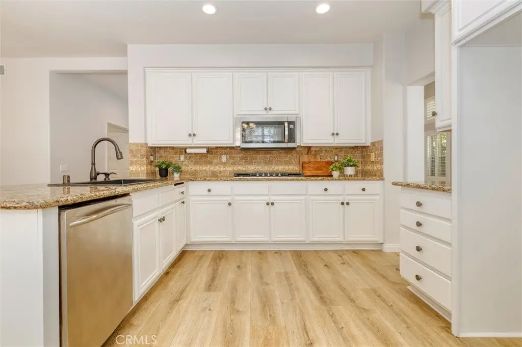 Step into this stunningly remodeled Warmington Plan I with 4 bedrooms, 2.3/4 bathrooms and a bonus room off the primary bedroom, perfect for a baby nursery or home office. Located in the highly sought after area of Valencia Northbridge, on a quiet cul-de-sac with quick access to the beautiful paseos leading to the community pools and tennis courts, Helmer’s Park and award winning Charles Helmers Elementary. Relax in your low maintenance backyard which was designed for entertaining with a built-in bar, BBQ, refrigerator, fire pit and lighting. In addition to palm trees, there is an apricot and apple tree for you to harvest fruit from each year. The backyard is also pre-wired for a hot tub. Sellers have recently updated the home with modern finishes including fresh paint inside and out, new flooring, updated bathrooms, new stove top, microwave and water heater. The large three car garage has a new opener and offers an over abundance of storage with custom cabinetry, built-in shelving and a loft for larger items. This beautiful home is move-in ready and waiting for you to enjoy all of the recent upgrades and wonderful community amenities. Welcome home to 23609 Wilmington Court!